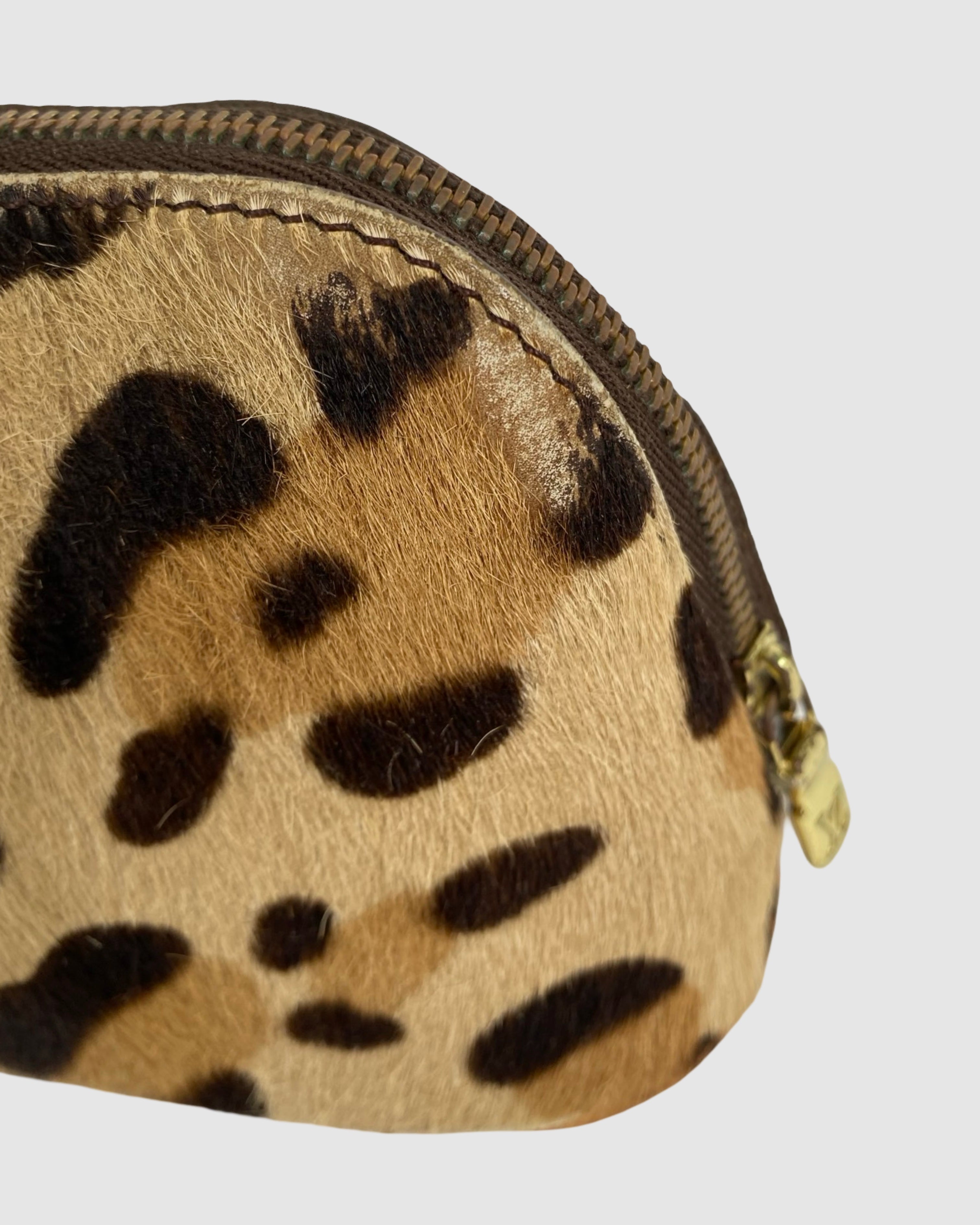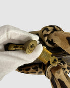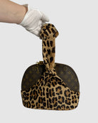 Discover this rare Louis Vuitton Alma Azzedine x Alaia collaboration from December 1995, a coveted vintage piece crafted in France. The bag showcases the signature monogram canvas in warm brown leopard tones, complemented by supple calfskin leather, pony-style and lustrous gold-tone hardware. Complete with original padlock, two keys, and accompanying accessories. A collector's treasure with exceptional provenance and condition.