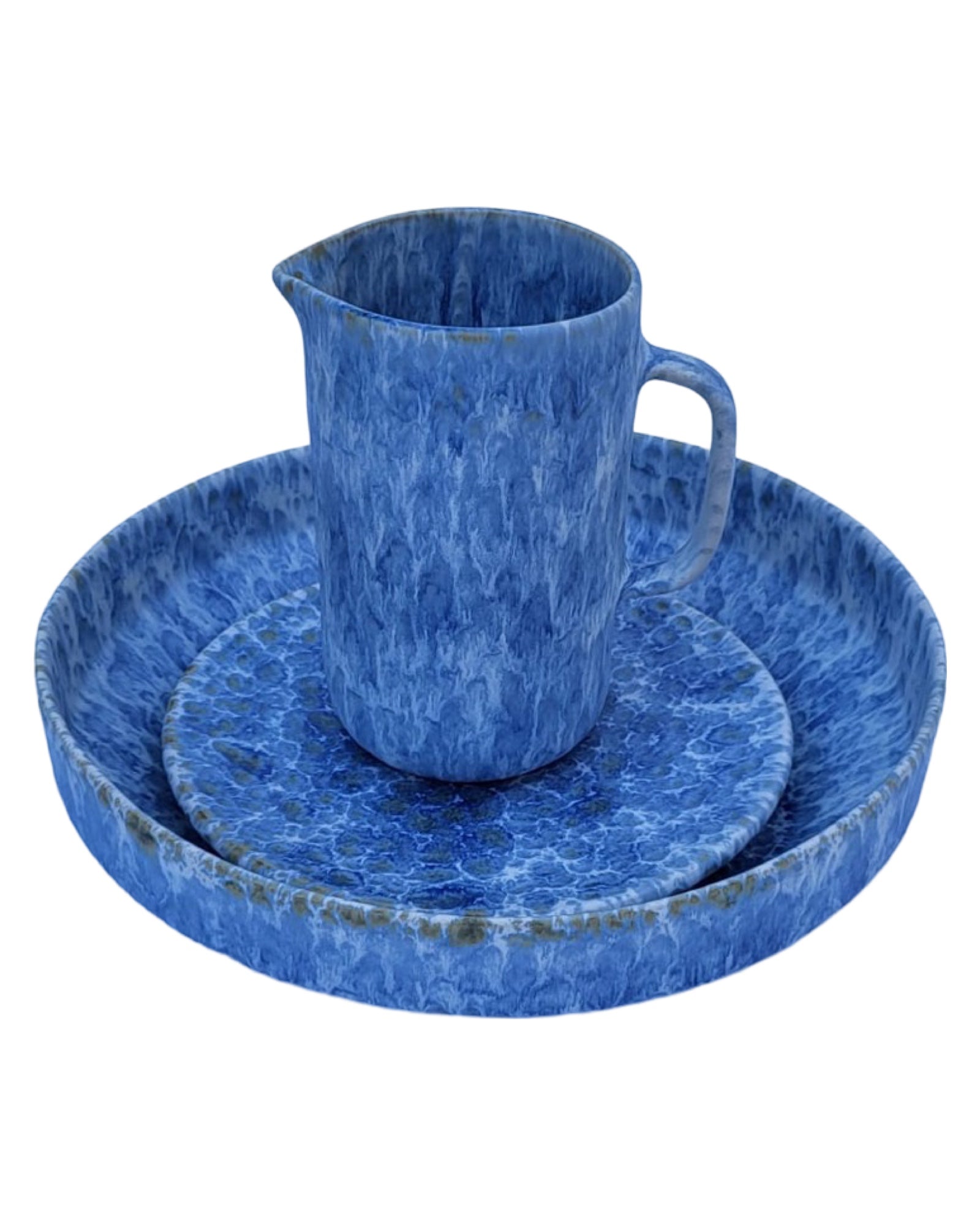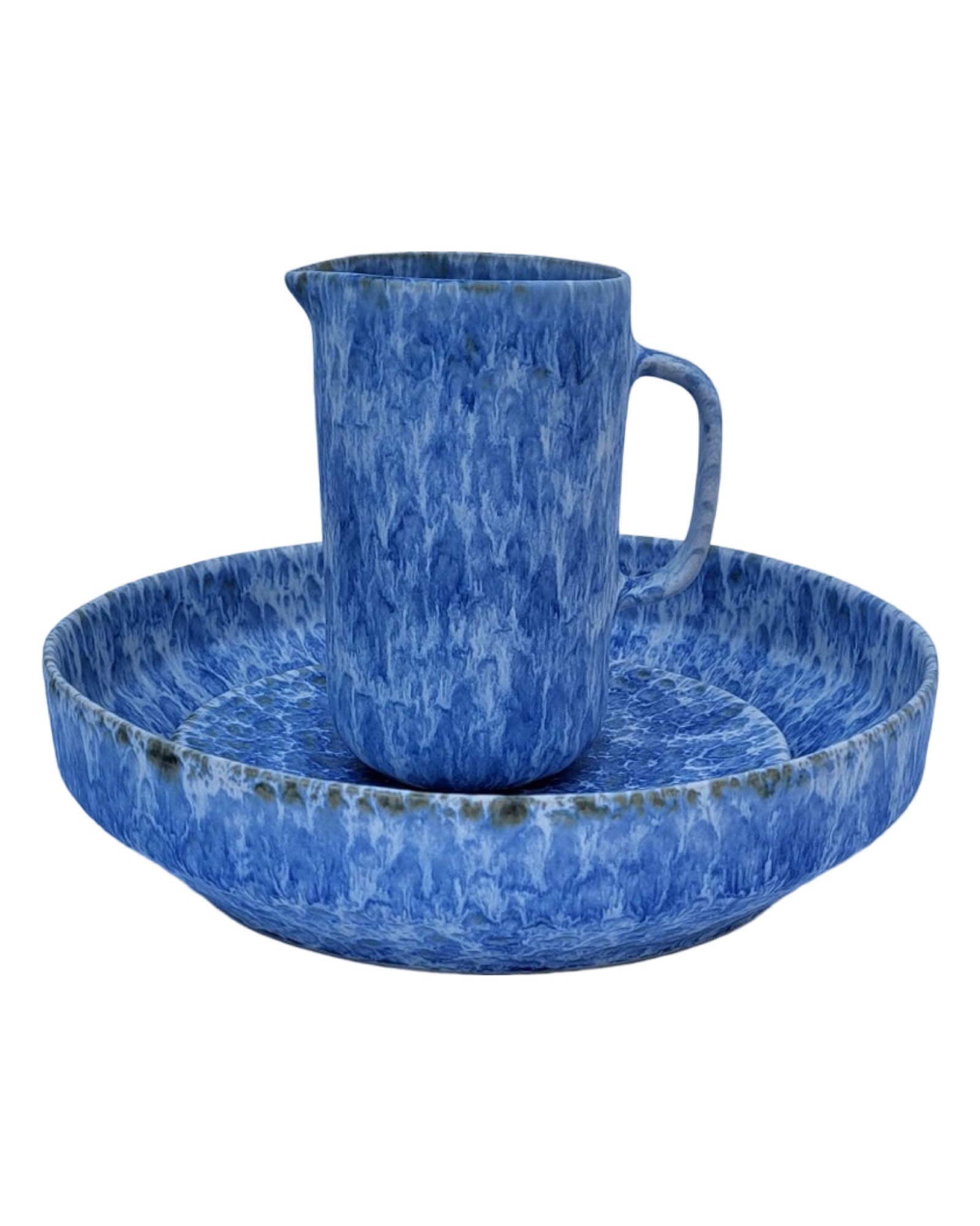 Blue bowl with jug and saucer