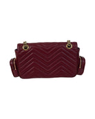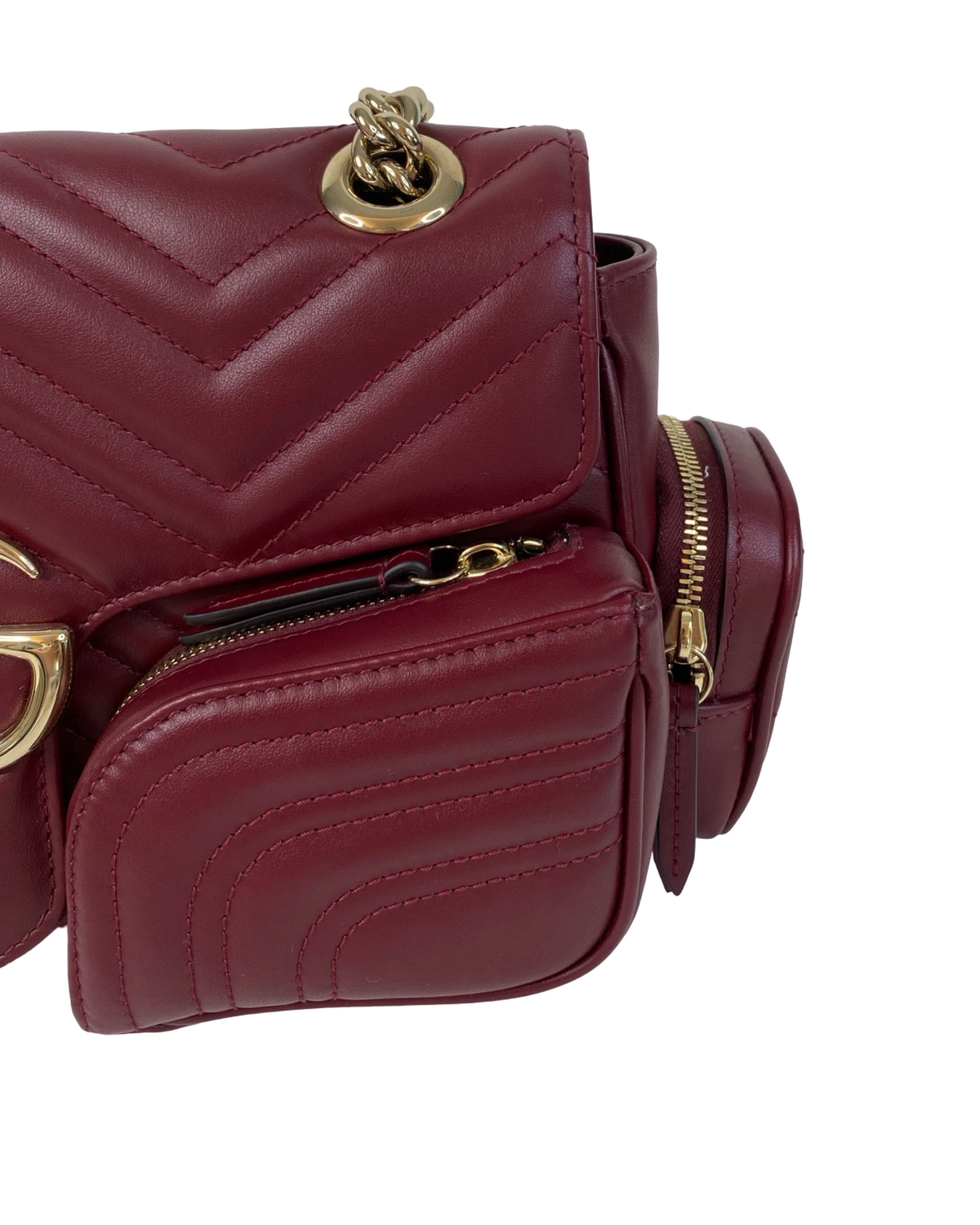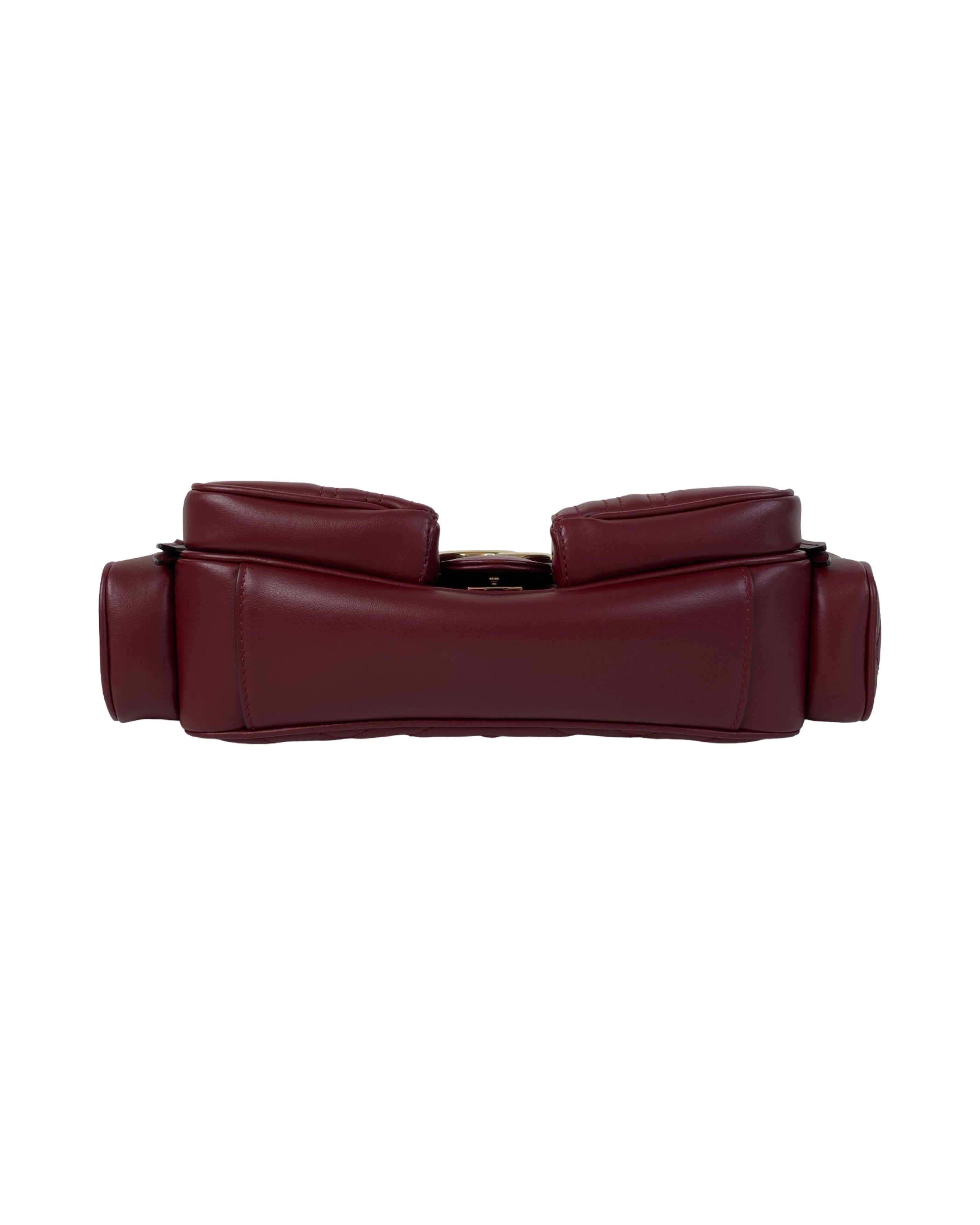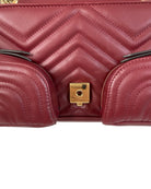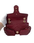 Gucci GG Marmont Small Multi-Pocket Bag is a bold yet elegant statement in rich burgundy red matelassé chevron leather. Featuring the iconic Double G hardware, this shoulder bag combines timeless design with modern functionality, offering multiple pockets for effortless organization. The structured silhouette is balanced by soft quilting, while the antique gold-tone accents add a touch of vintage charm. Designed to be worn from day to night, this versatile piece brings together luxury, practicality, and unmistakable Gucci style.