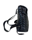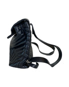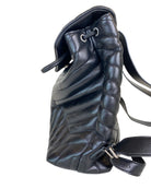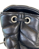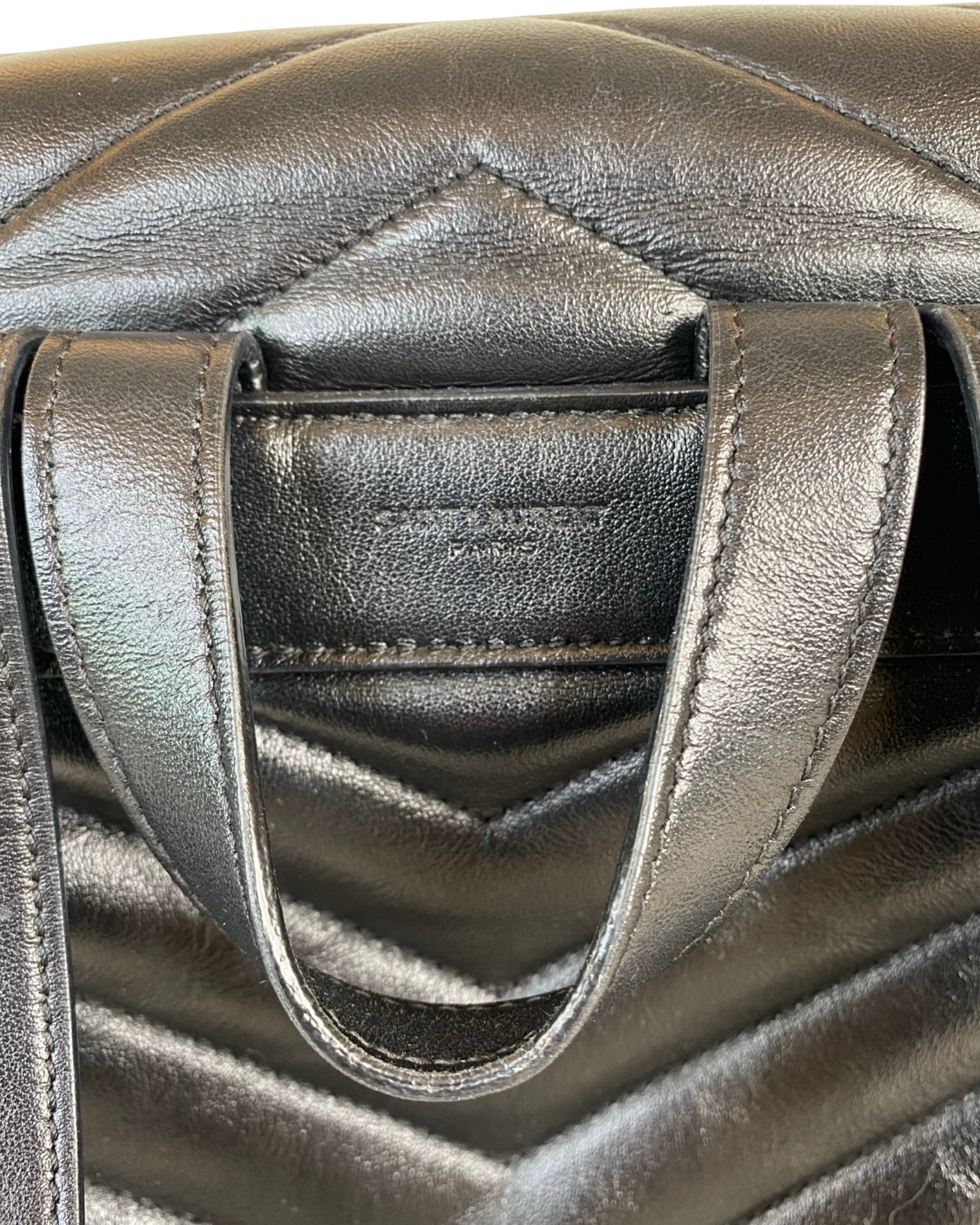 The Saint Laurent Loulou Backpack in black quilted leather is a timeless blend of Parisian elegance and modern practicality. Crafted from supple matelassé calfskin, it features the iconic chevron stitching that defines the Loulou line, while sleek black leather is accented by gleaming gold-tone YSL hardware for a refined touch of sophistication. Designed with both style and function in mind, it offers a magnetic flap and drawstring closure for security, adjustable leather shoulder straps for comfort, and a top handle for versatile carrying. The interior provides ample space for daily essentials, including a zip pocket for organization. Whether paired with casual looks or elevated city wear, this backpack embodies effortless Saint Laurent luxury—understated, structured, and undeniably chic, measuring 30 cm in width, 30 cm in height, and 13 cm in depth.