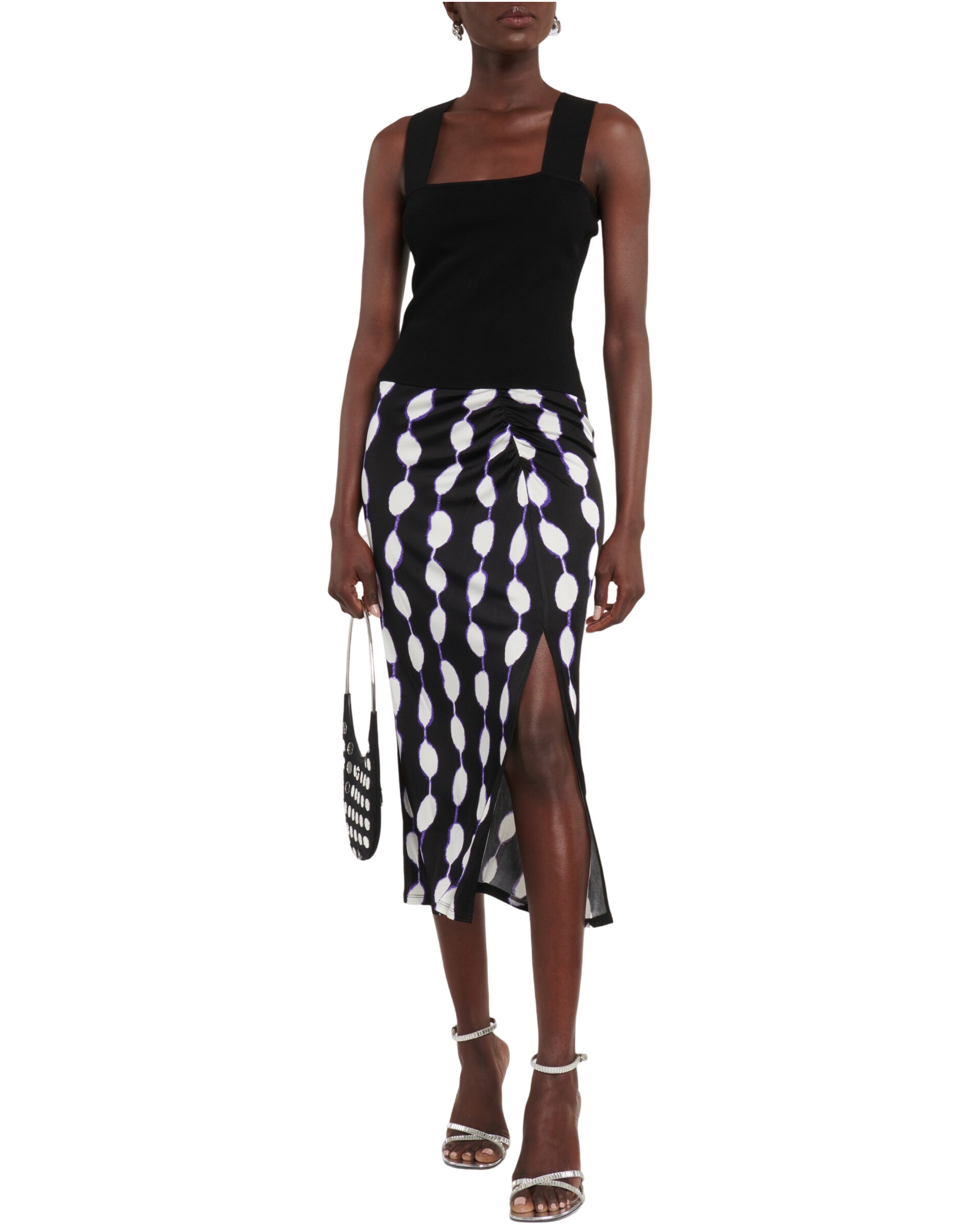 Bring out your playful and sophisticated side with the Diane von Furstenberg Garcel midi skirt. Made from soft viscose, this polka-dot skirt boasts the brand's iconic faux wrap design and a flattering tulip hem. Perfect for any occasion, available in XS.