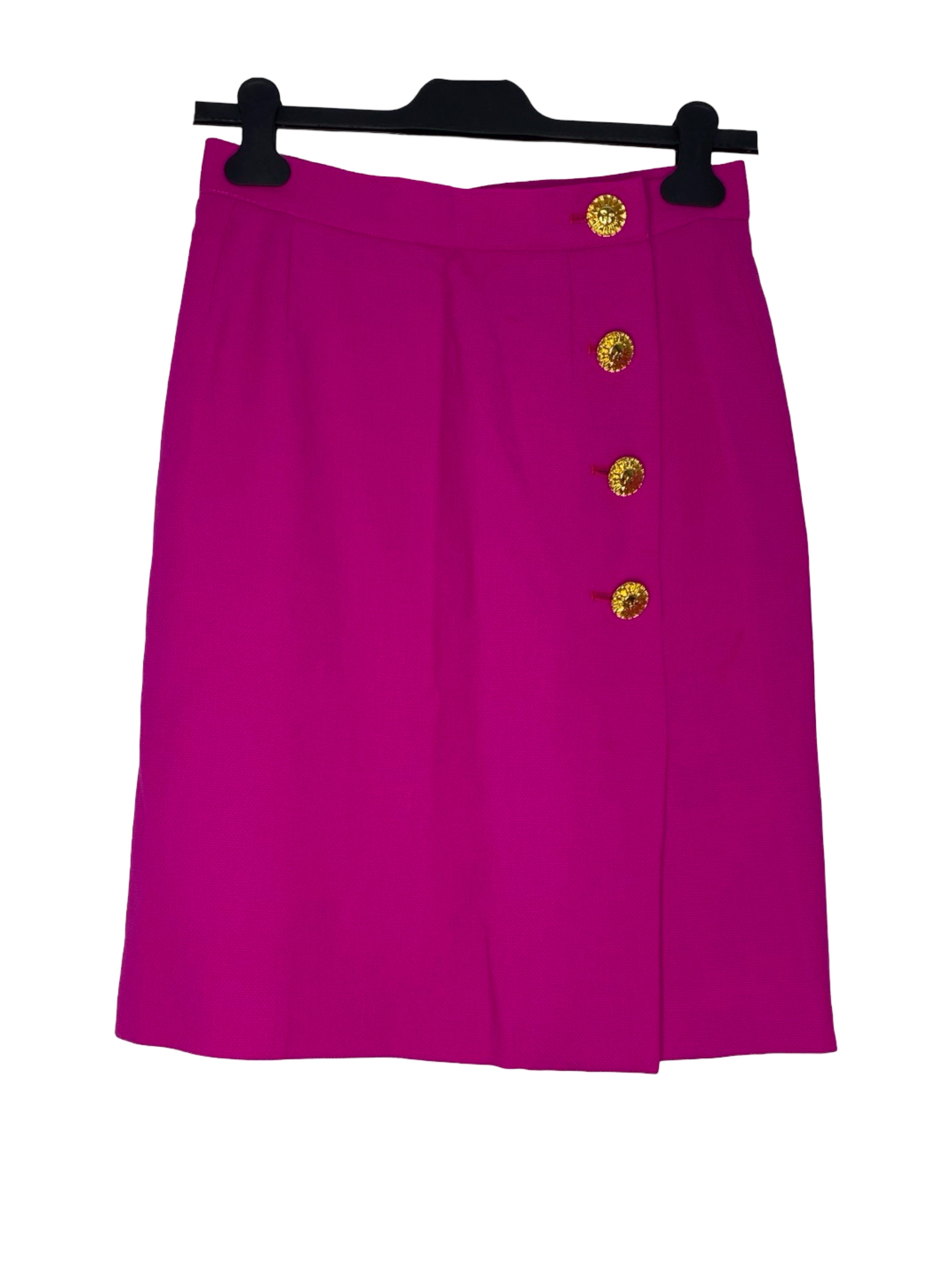 Transform your appearance with the glamorous gold buttons and stunning magenta pink color of this Saint Laurent skirt. Made from top-quality viscose and cotton, this skirt is sure to elevate your style.