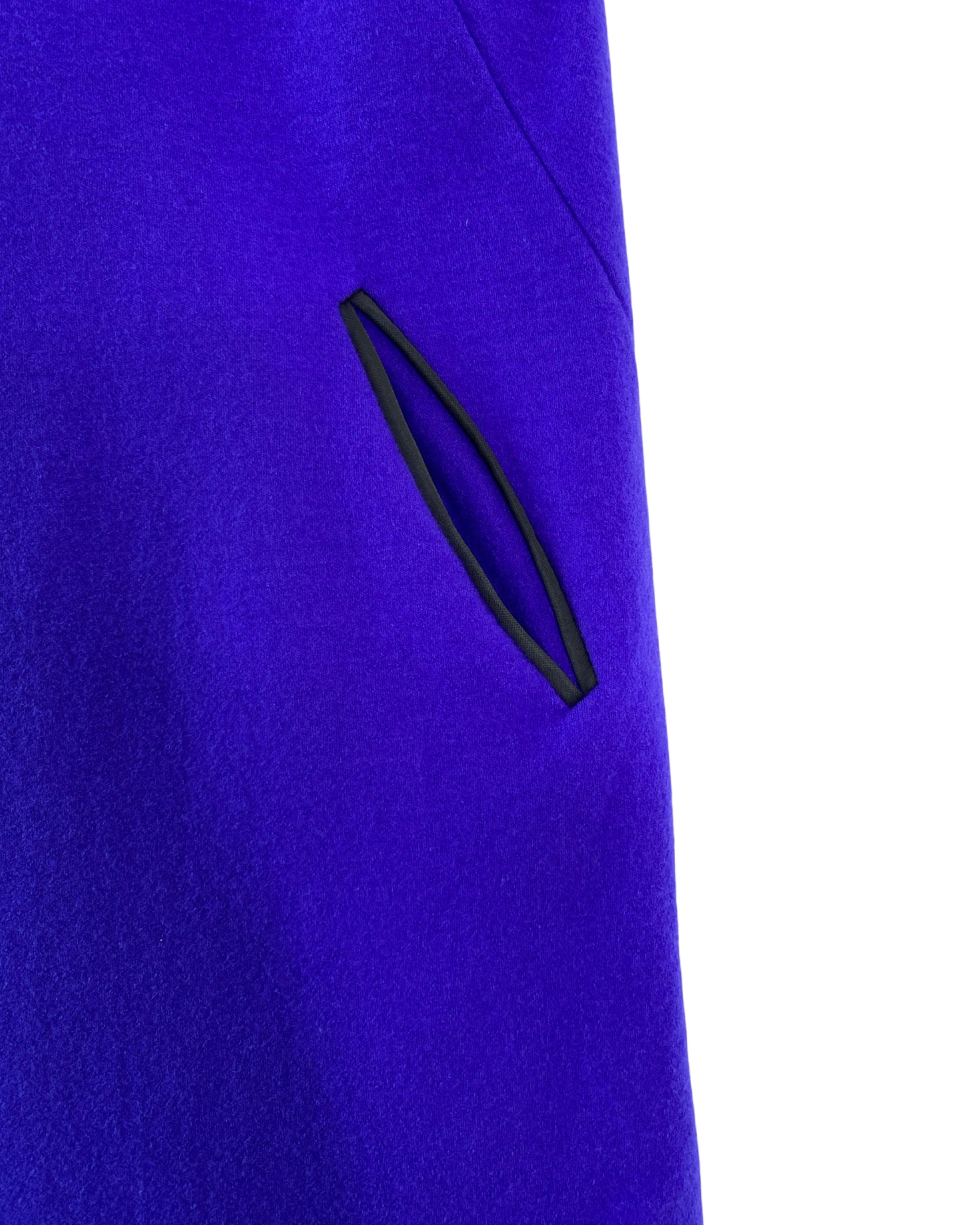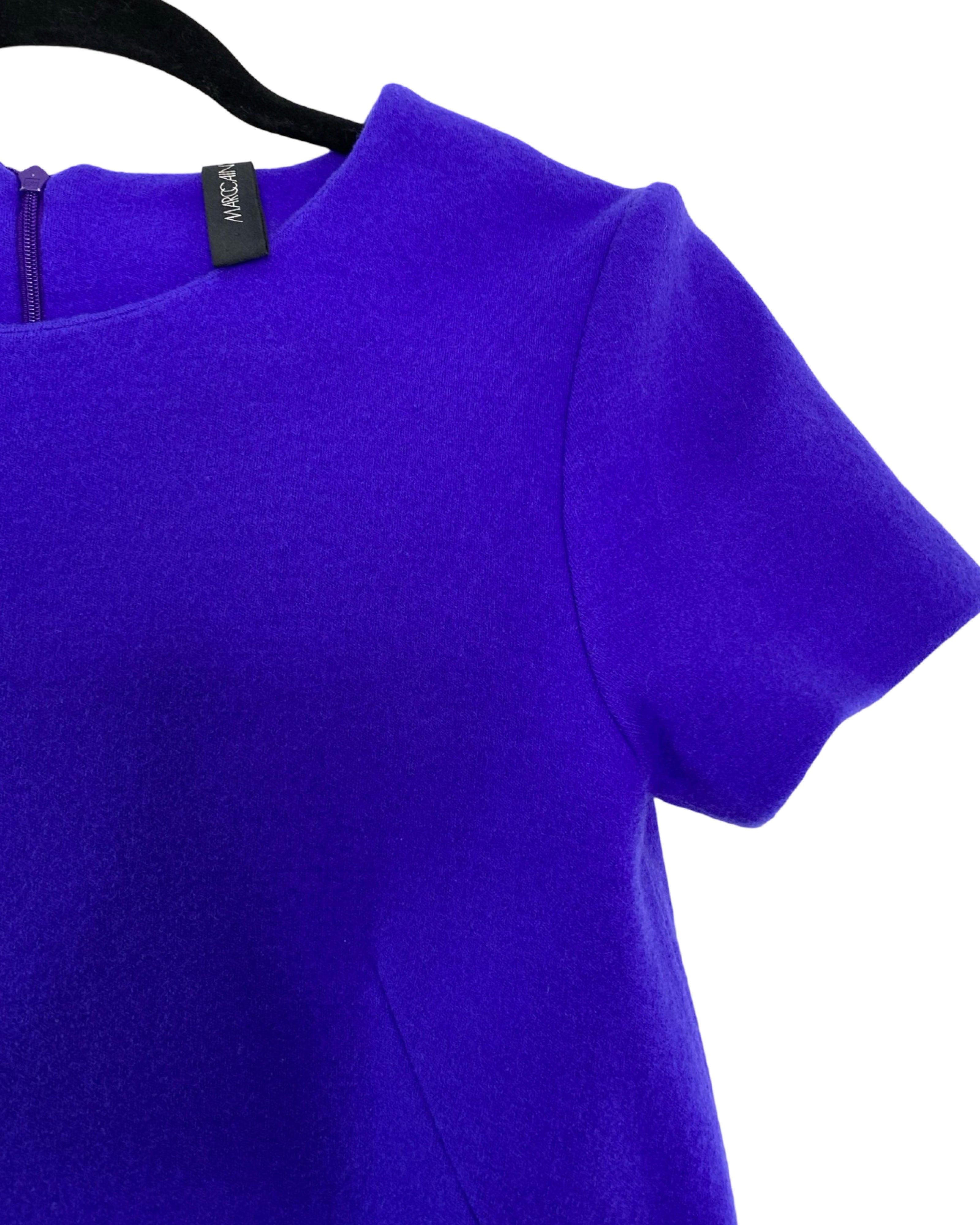 Need a versatile and stylish addition to your wardrobe? Look no further than this dress made from a combination of wool mix, featuring a bold purple colour with pockets. This piece effortlessly blends casual and chic styles, while providing both comfort and fashion. Perfect for size 36/S.