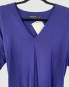 Elegant and modern, this Marc Cain dress features a beautiful blend of blue and purple tones, complemented by a matching belt that defines the waist. Crafted from a high-quality polyamide, viscose, and elastane blend and finished with subtle gold accents, it perfectly balances sophistication and contemporary style. Size: M.