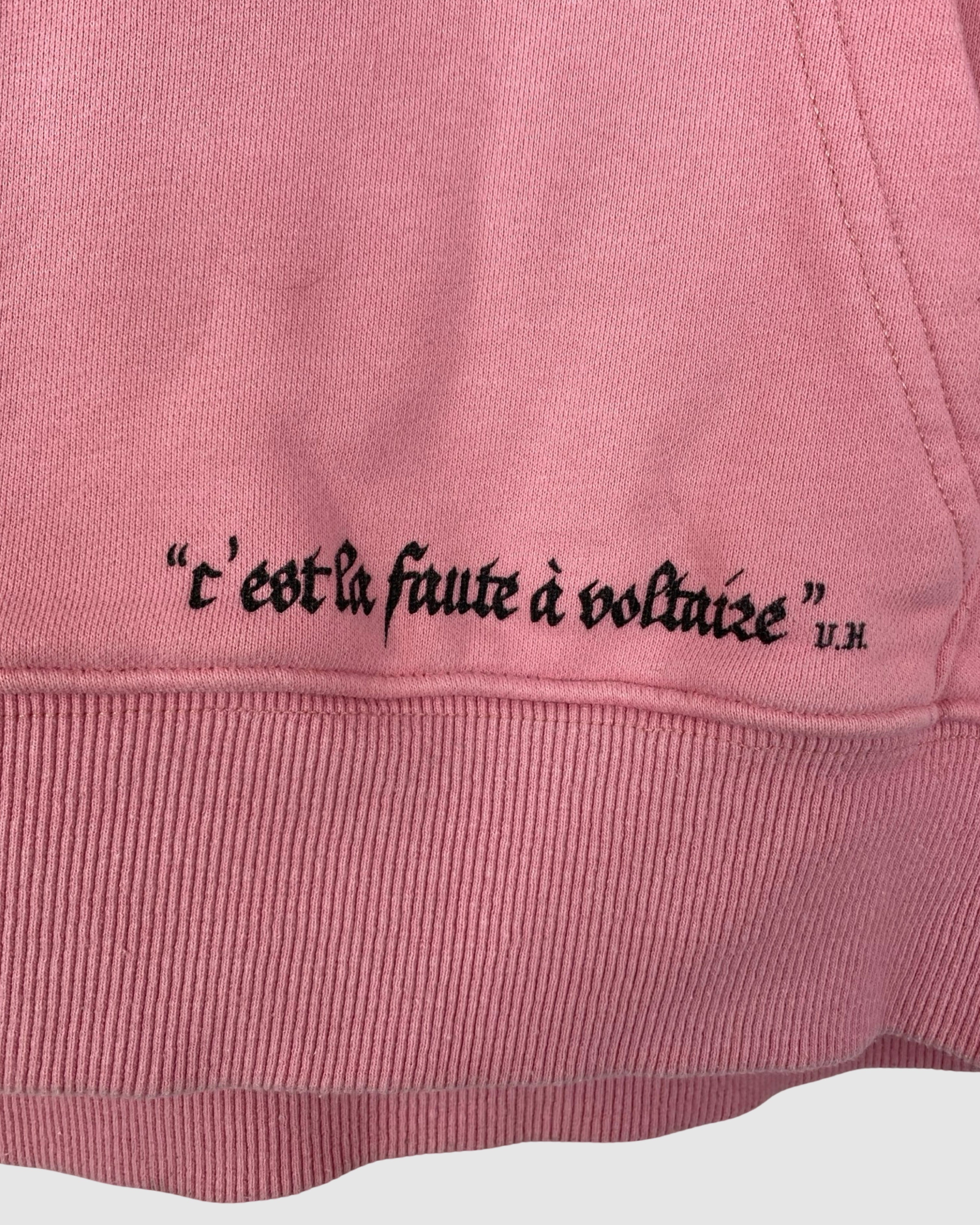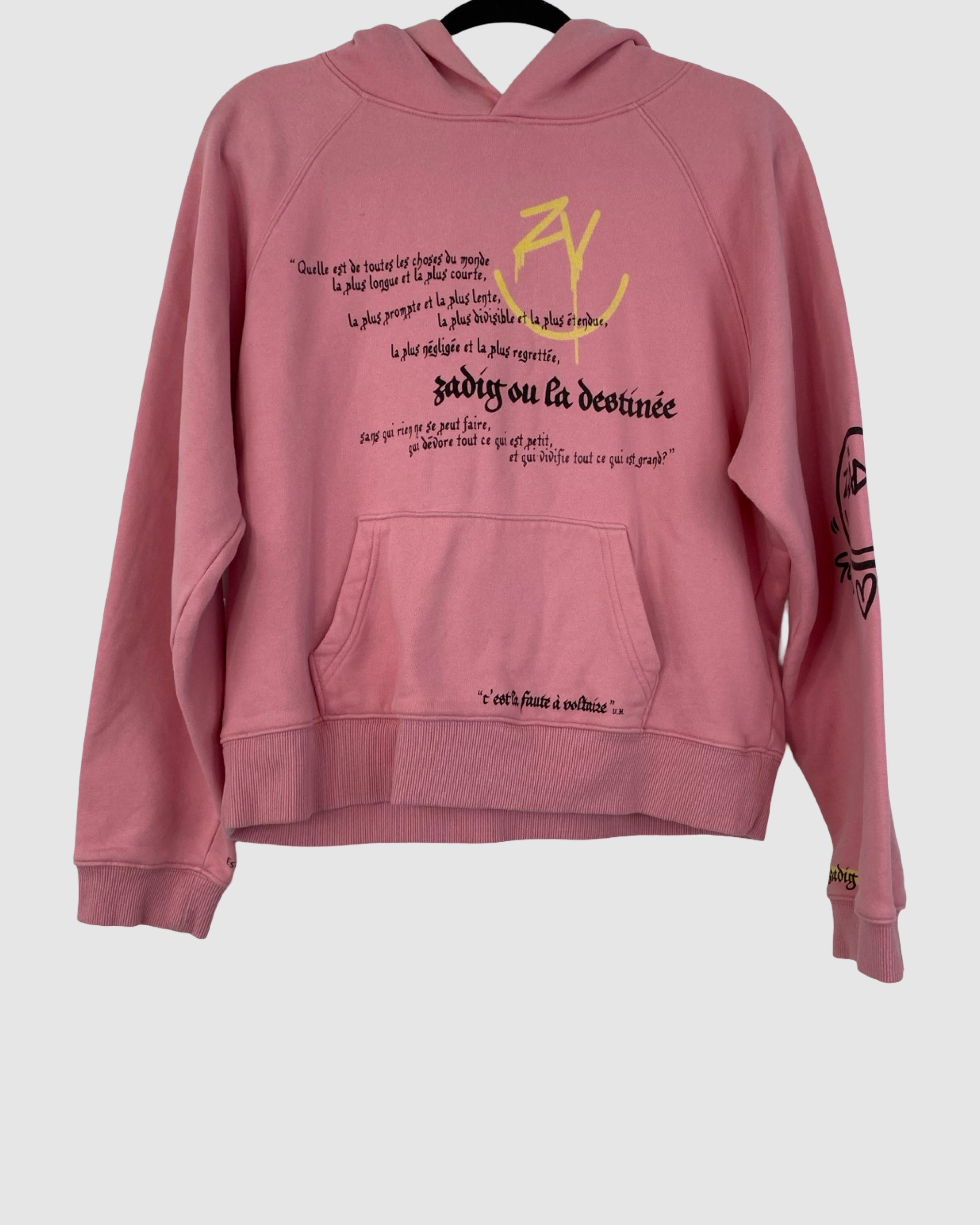 Edgy yet effortless, this Zadig & Voltaire hoodie comes in a soft pink shade with striking black details, creating a cool, modern contrast. Crafted from soft cotton, it’s perfect for adding a touch of designer attitude to your casual look. Size: S.