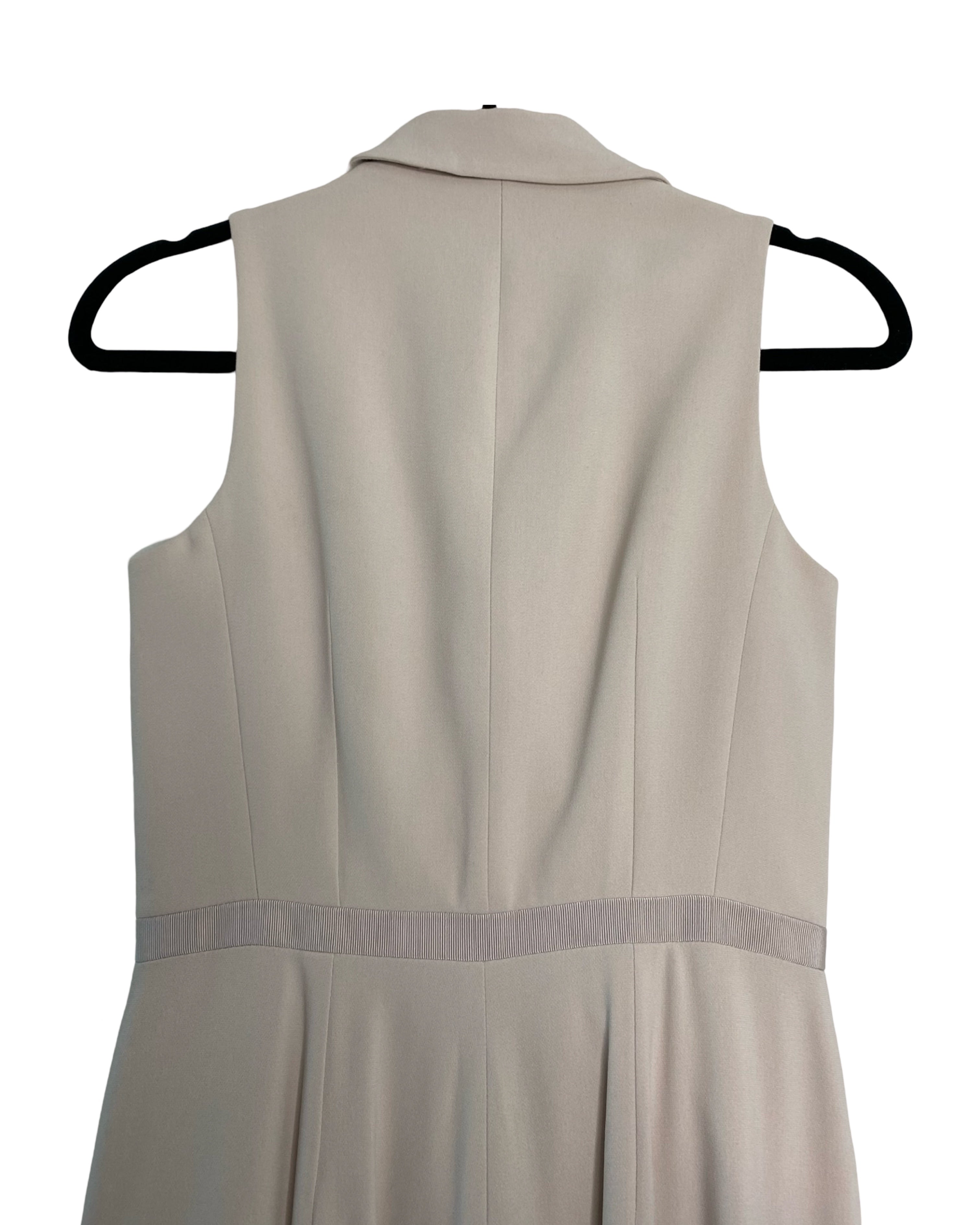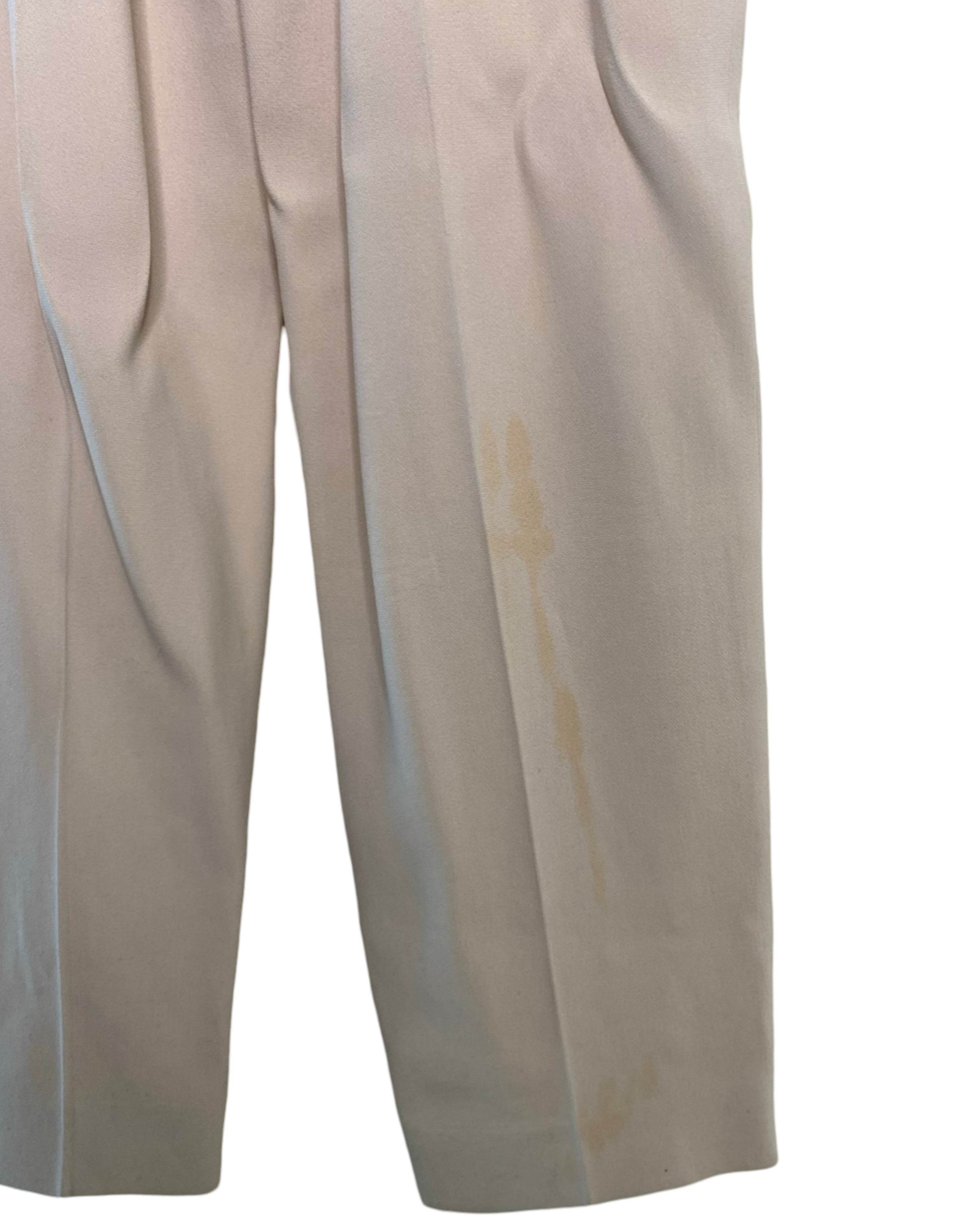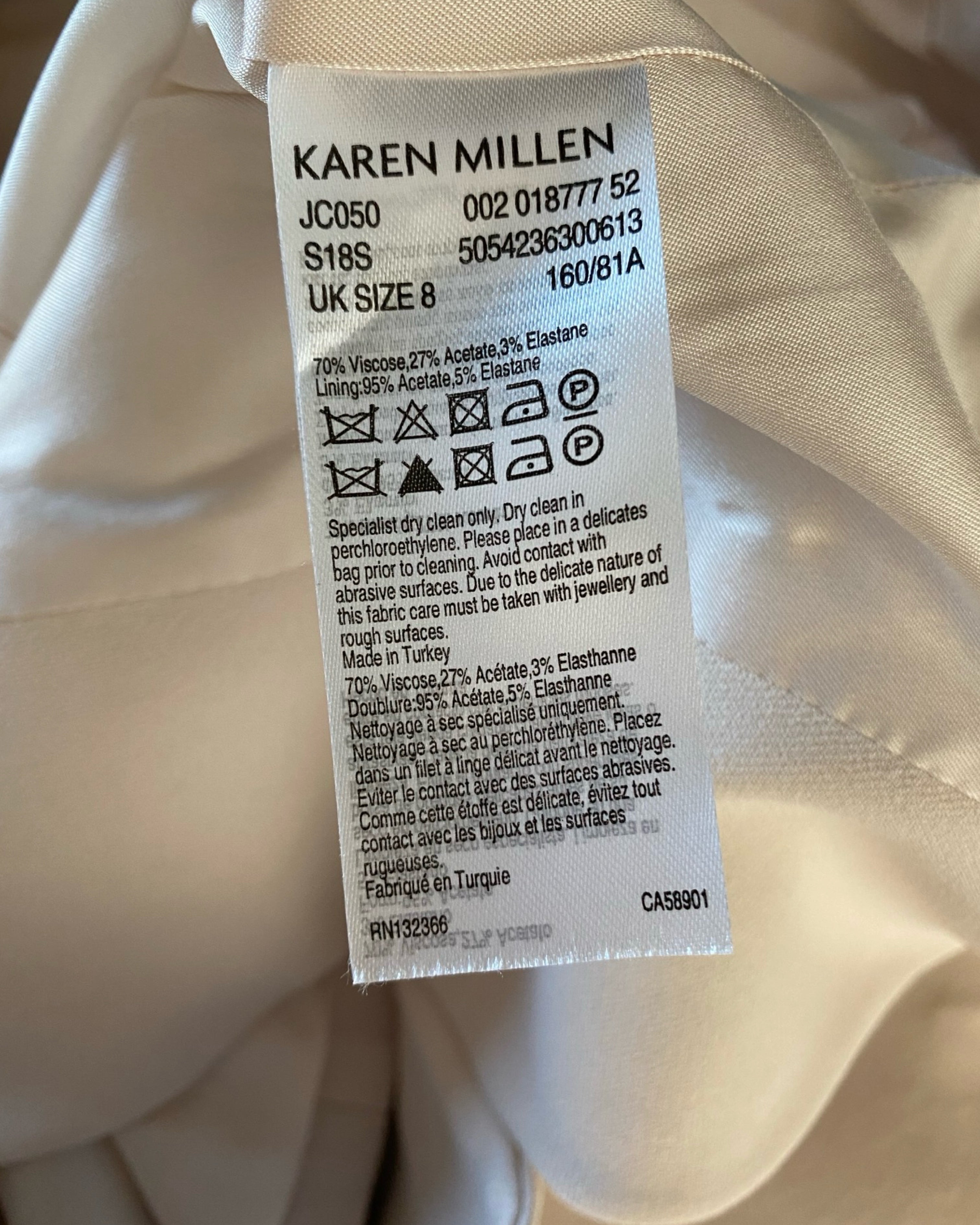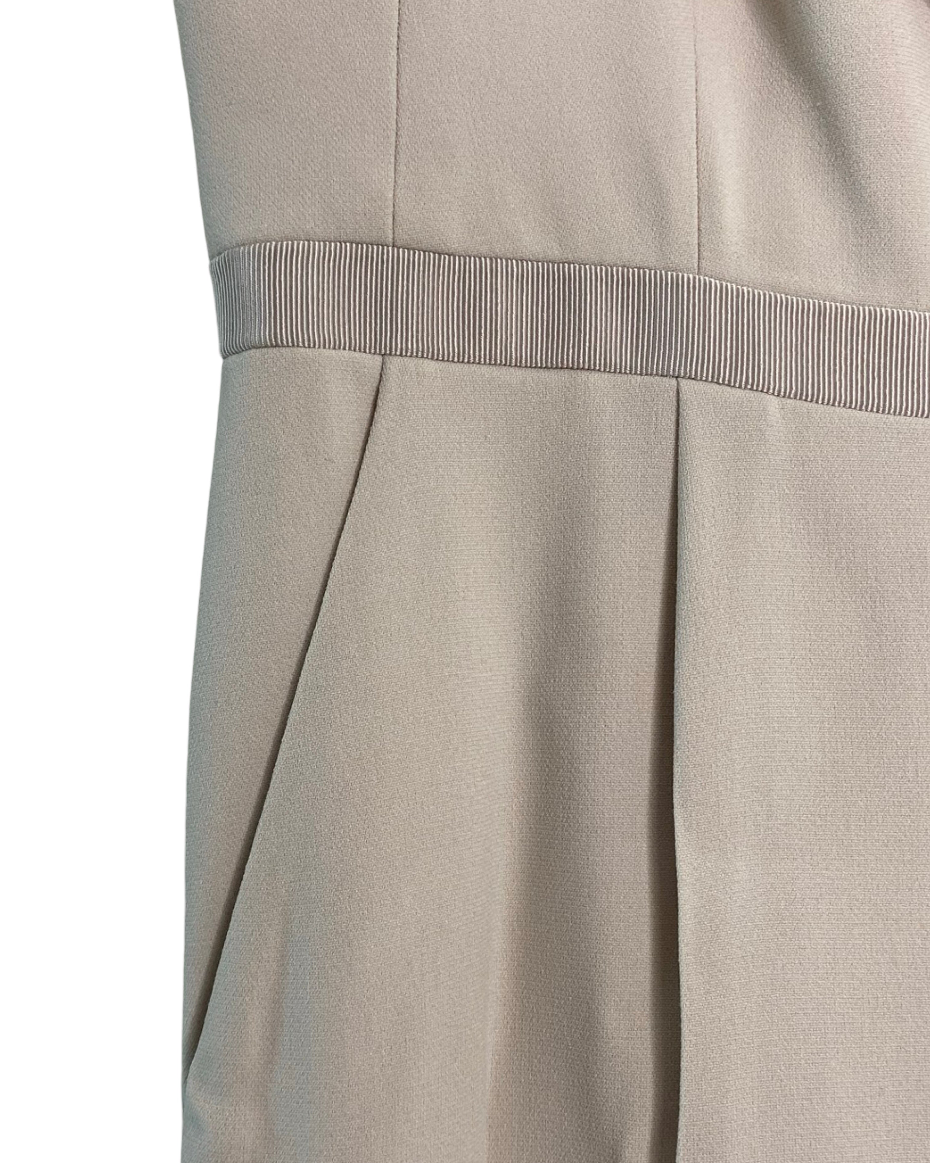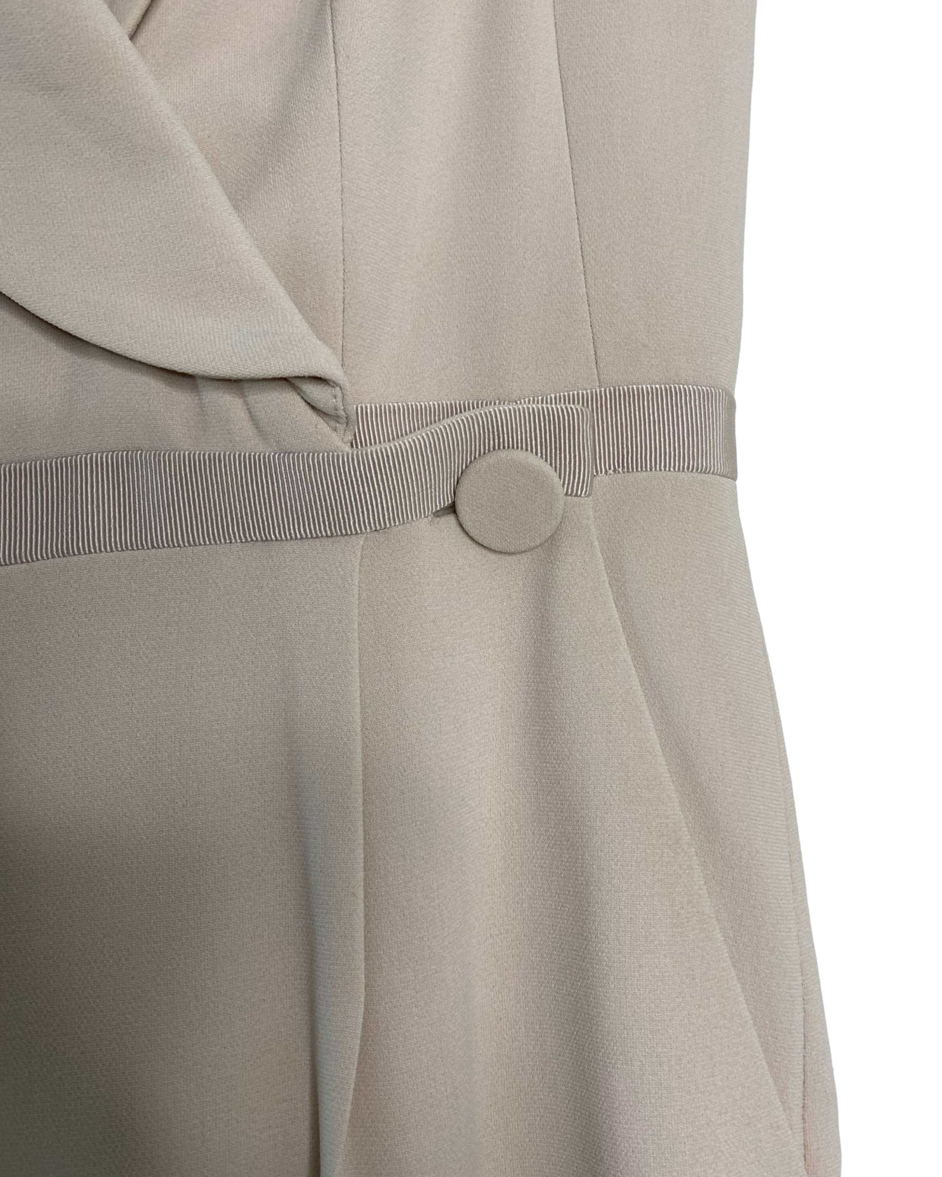 Elevate your style with the beige waist-accentuating jumpsuit by Karen Millen. Made from premium viscose, acetate and elastane its v-neckline strikes the ideal balance of fashion and comfort, available in size S for a flawless fit.