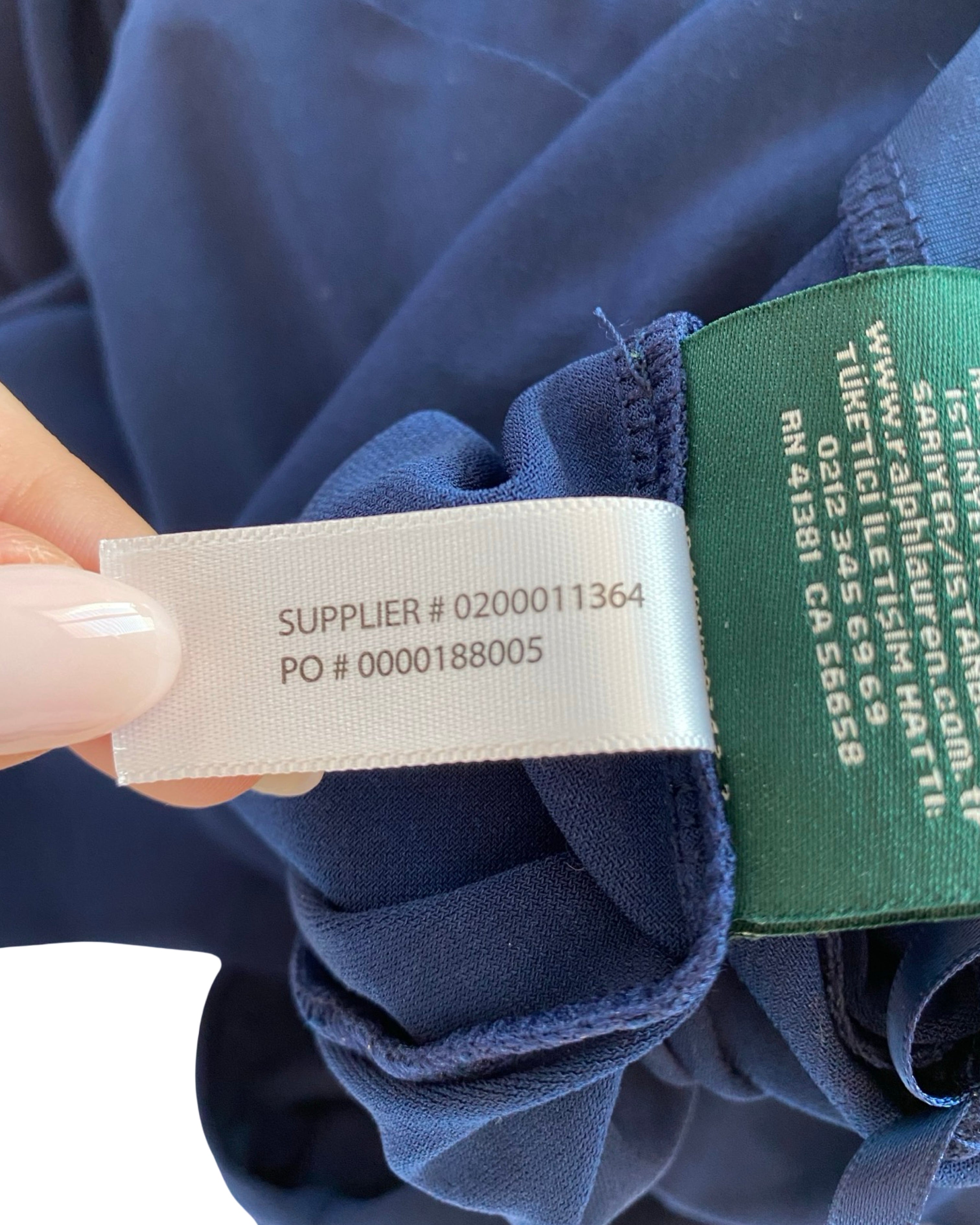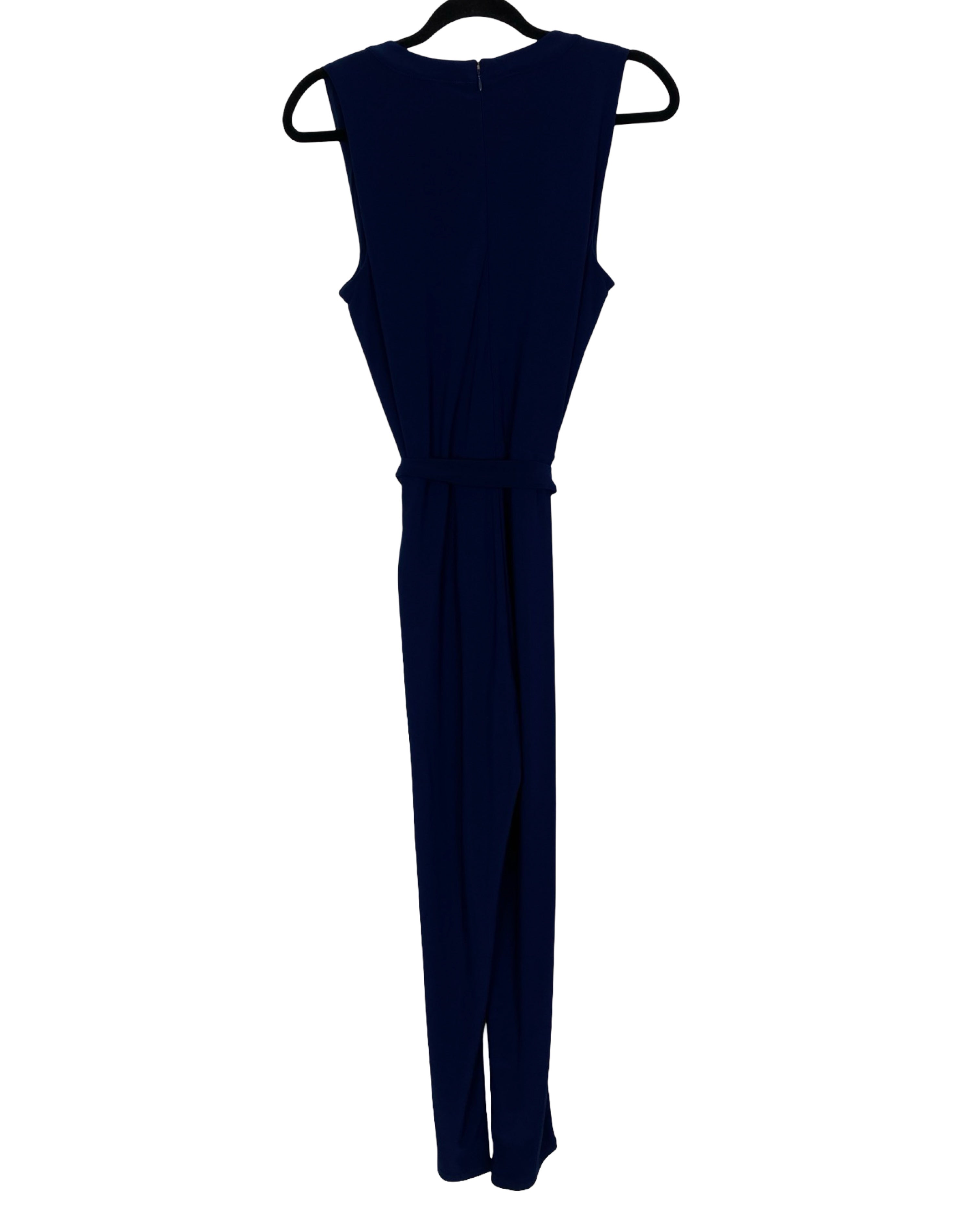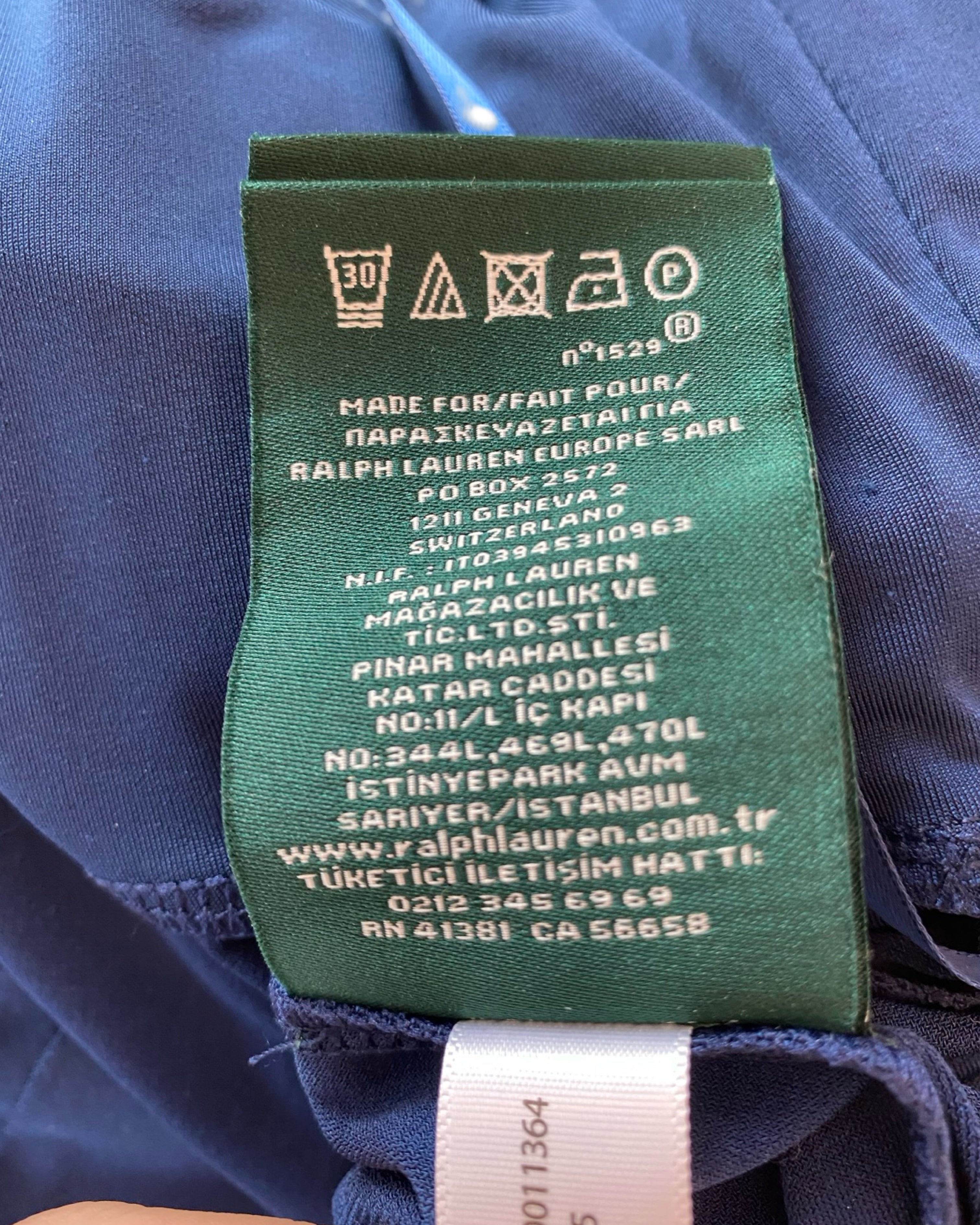 This Ralph Lauren jumpsuit in deep navy blue offers a sleek and sophisticated silhouette, combining timeless elegance with modern versatility. Crafted from a polyester-elastane blend for a flattering fit, it features clean lines and tailored detailing, making it perfect for both polished daywear and chic evening occasions. In size S, it measures 142 cm in full length and 46 cm armpit to armpit.