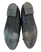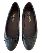 Elegant style with these timeless Chanel ballet flats. Crafted with quilted lambskin and adorned with the iconic Chanel logo and bow, these flats are perfect for any occasion. Sold with the original dustbag, the size 37 flats are made from luxurious lambskin and leather in classic black. In excellent condition, only slight wear on the soles.