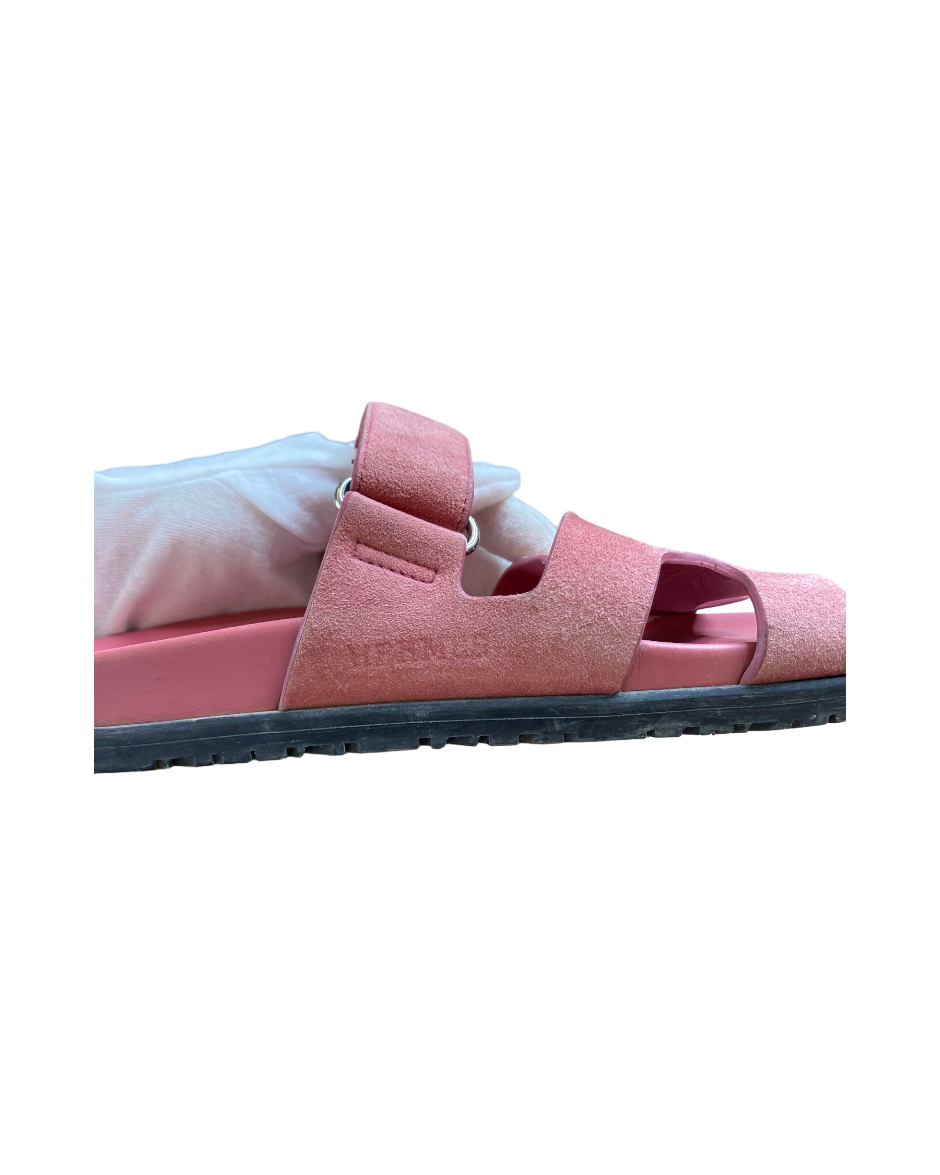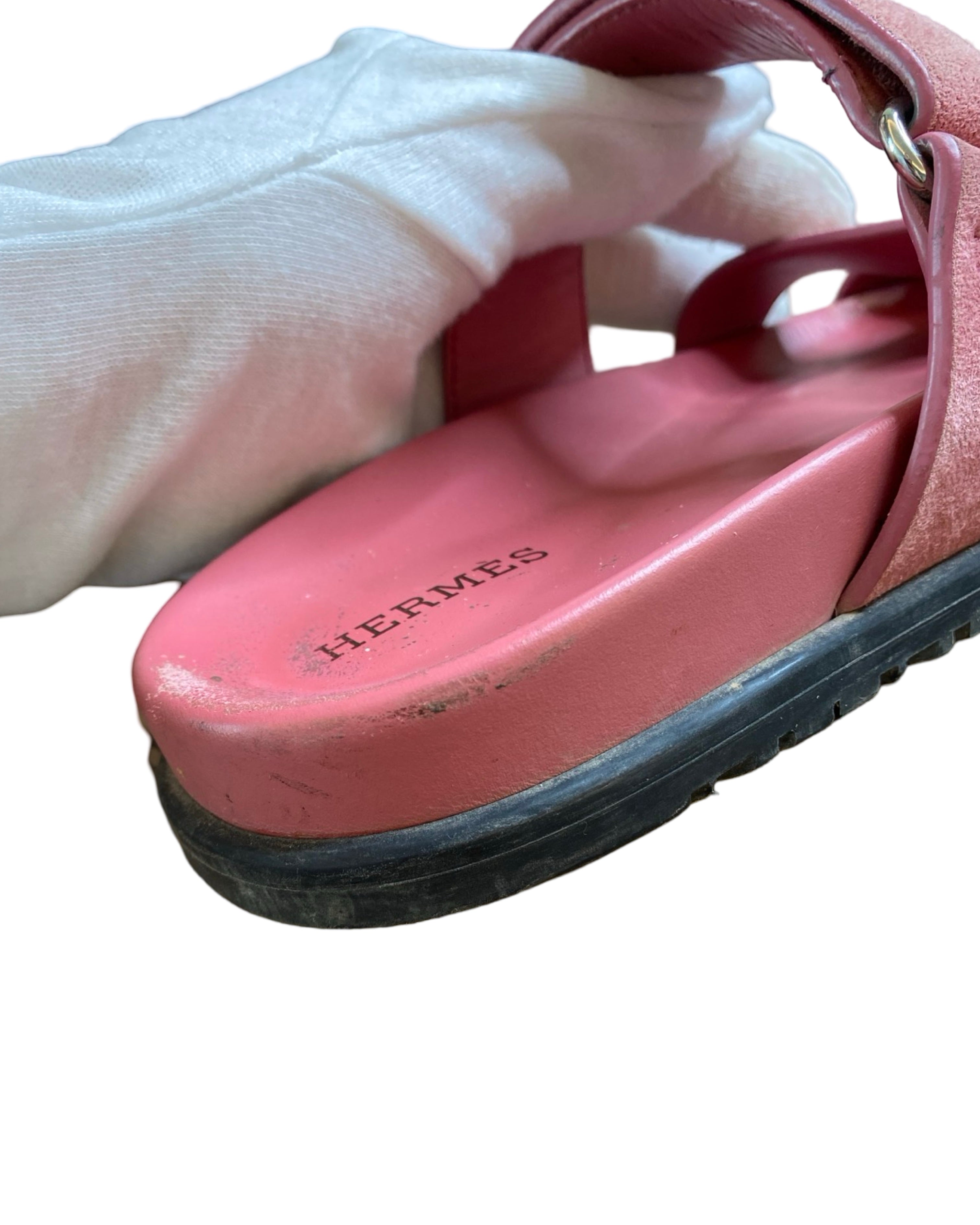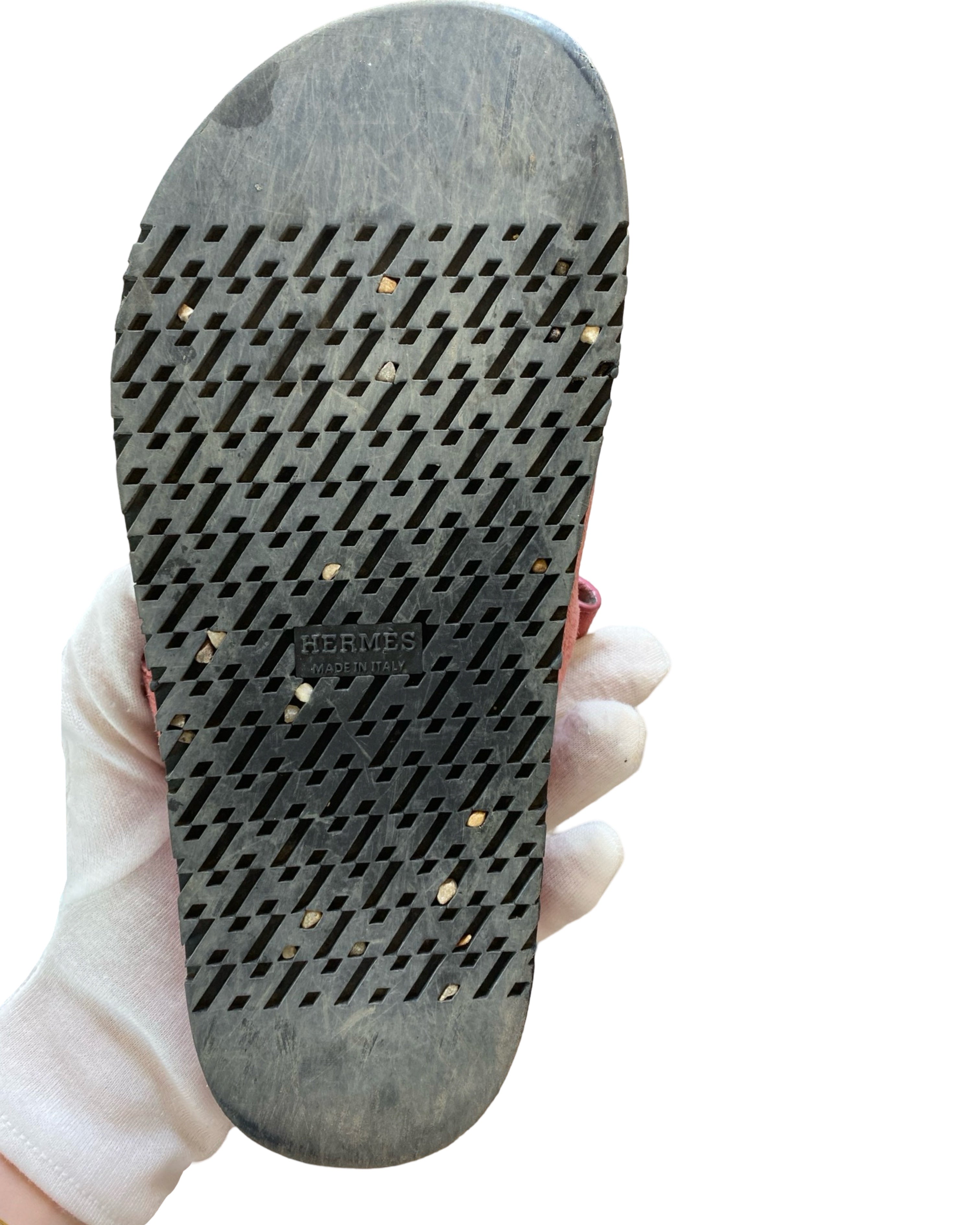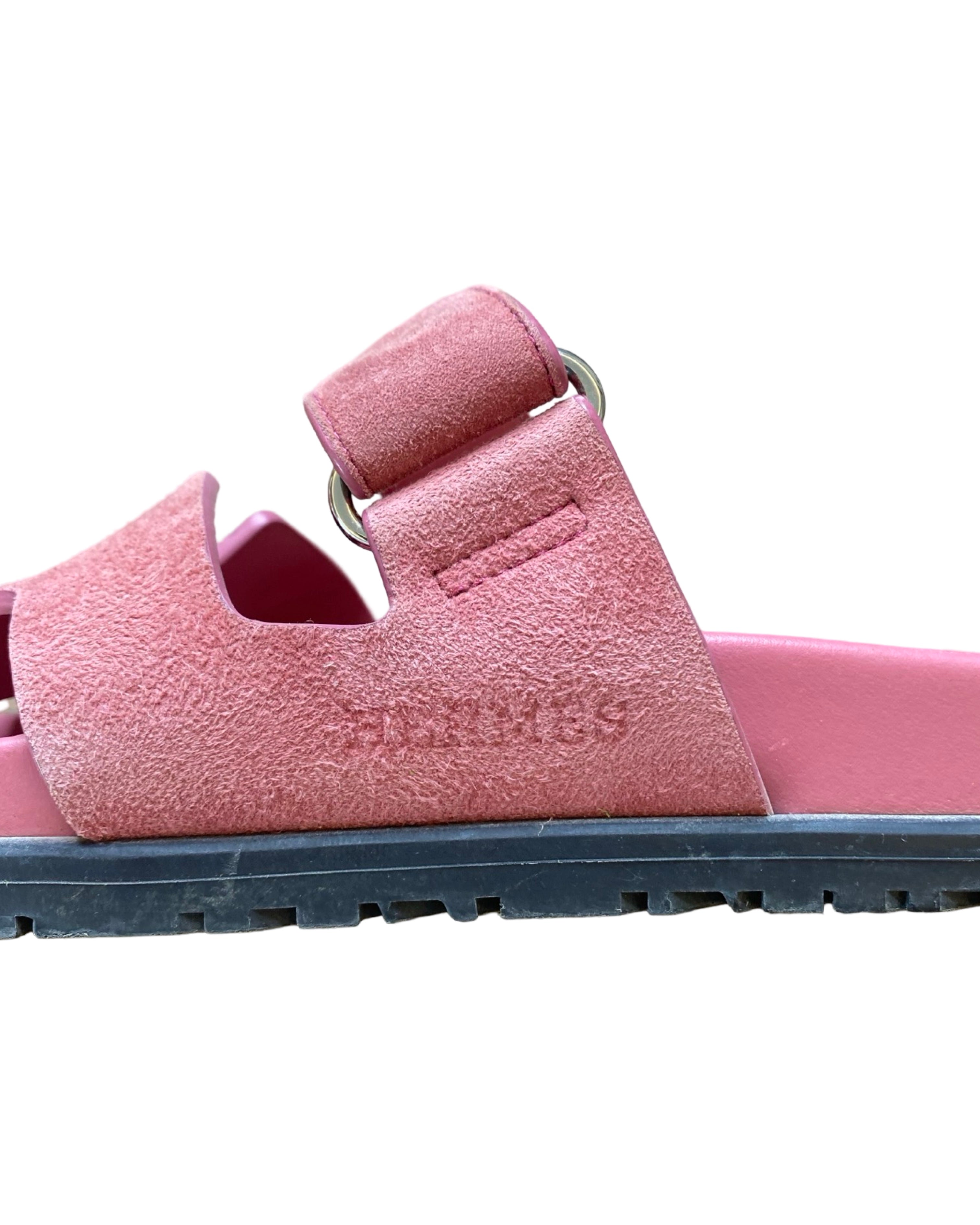 Step up your summer style with the Hermès Chypre Techno-Sandal. Crafted with suede goatskin, an anatomical rubber sole, and an adjustable strap, these sandals offer both comfort and sleek design. Available in size 37 and a trendy old-pink color, perfect for casual and effortless fashion. Will be sold with original dustbag and box.