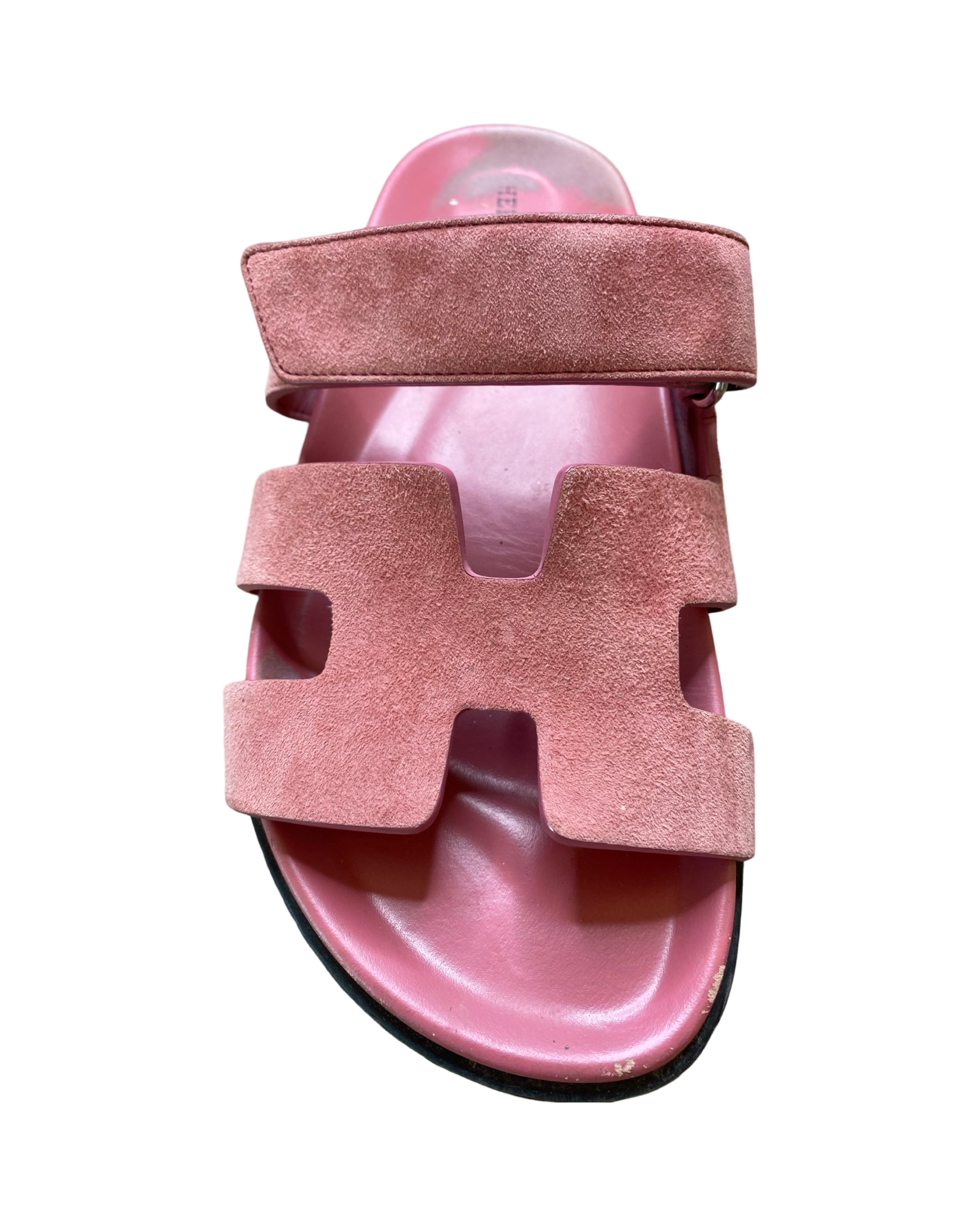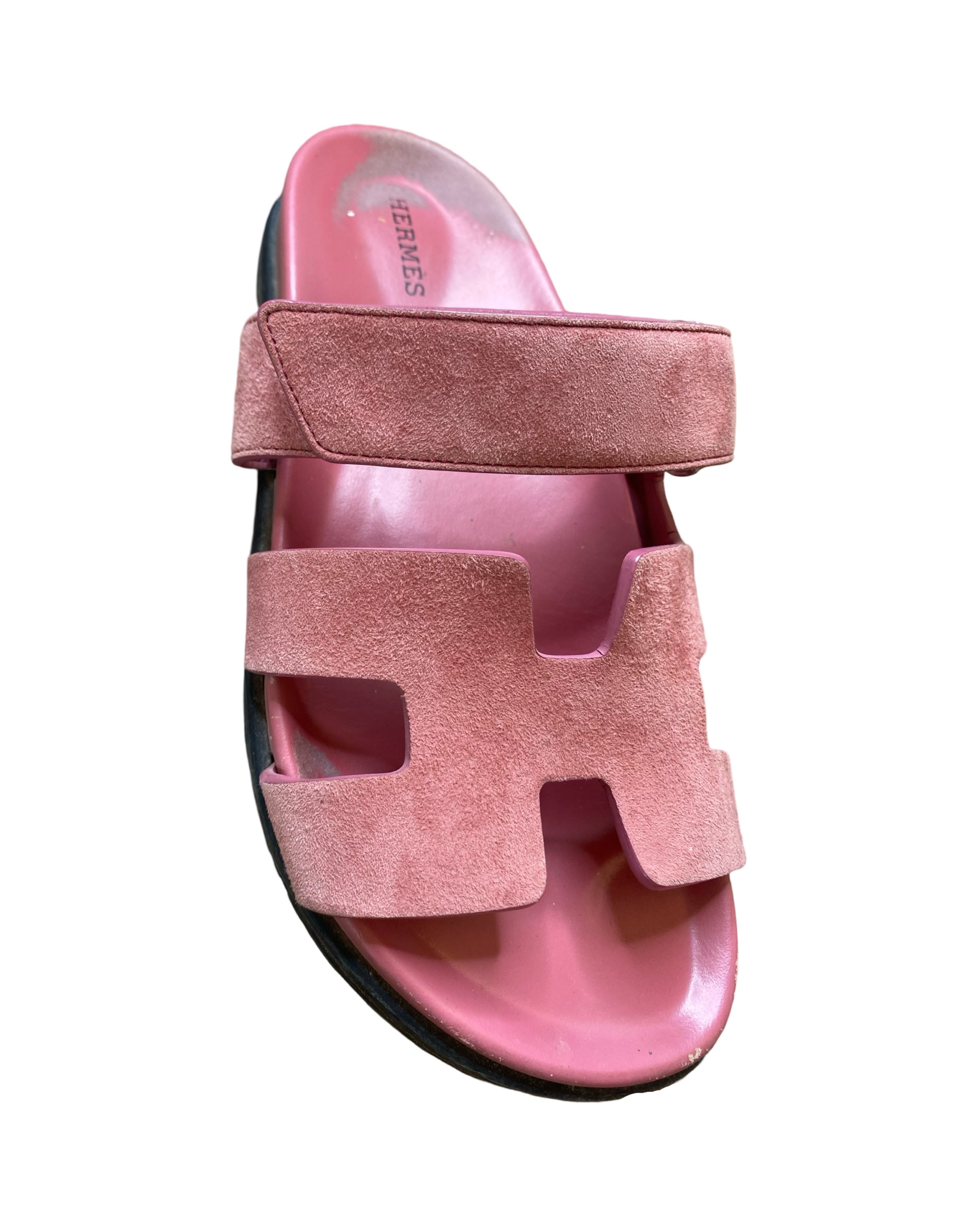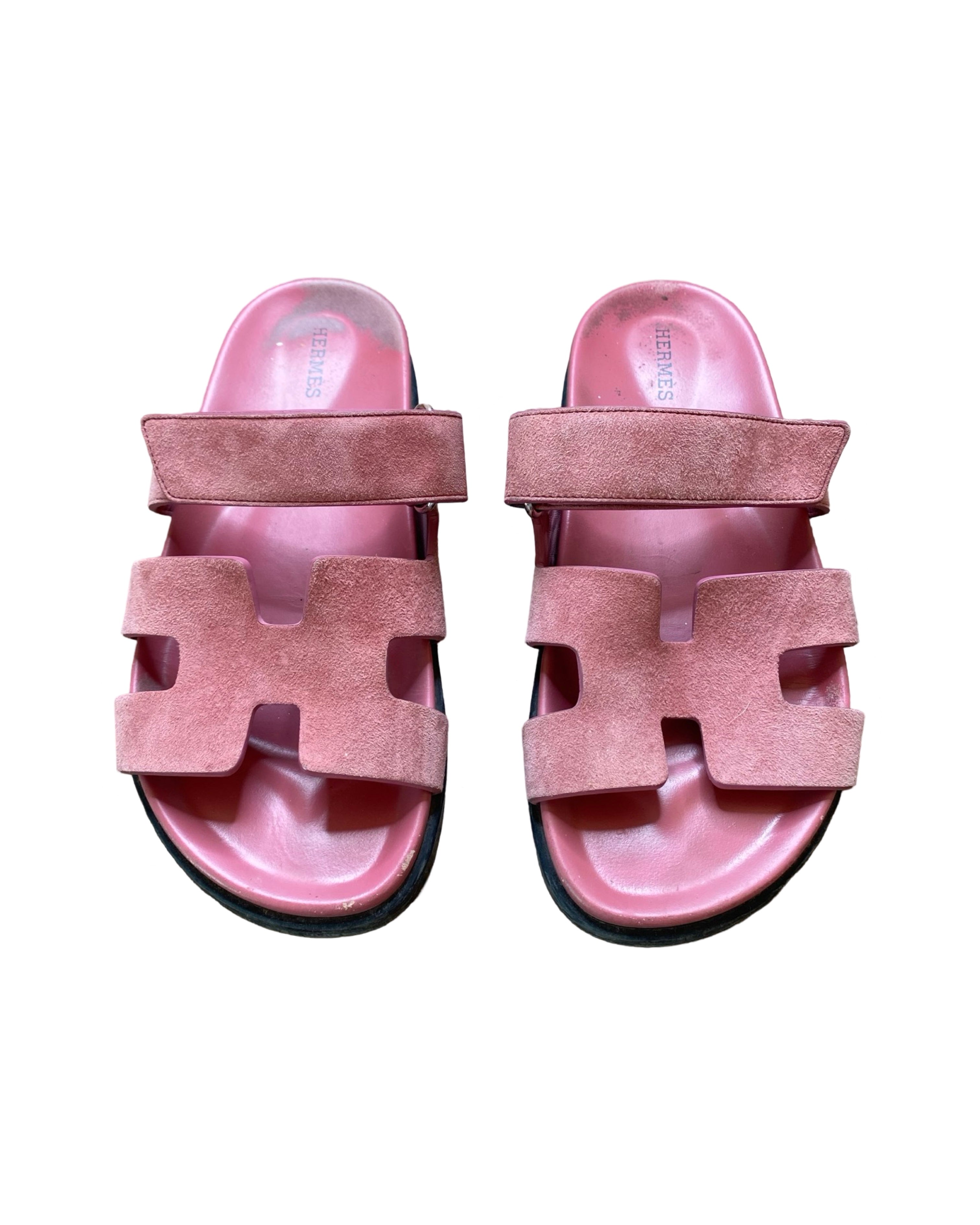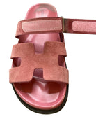 Step up your summer style with the Hermès Chypre Techno-Sandal. Crafted with suede goatskin, an anatomical rubber sole, and an adjustable strap, these sandals offer both comfort and sleek design. Available in size 37 and a trendy old-pink color, perfect for casual and effortless fashion. Will be sold with original dustbag and box.