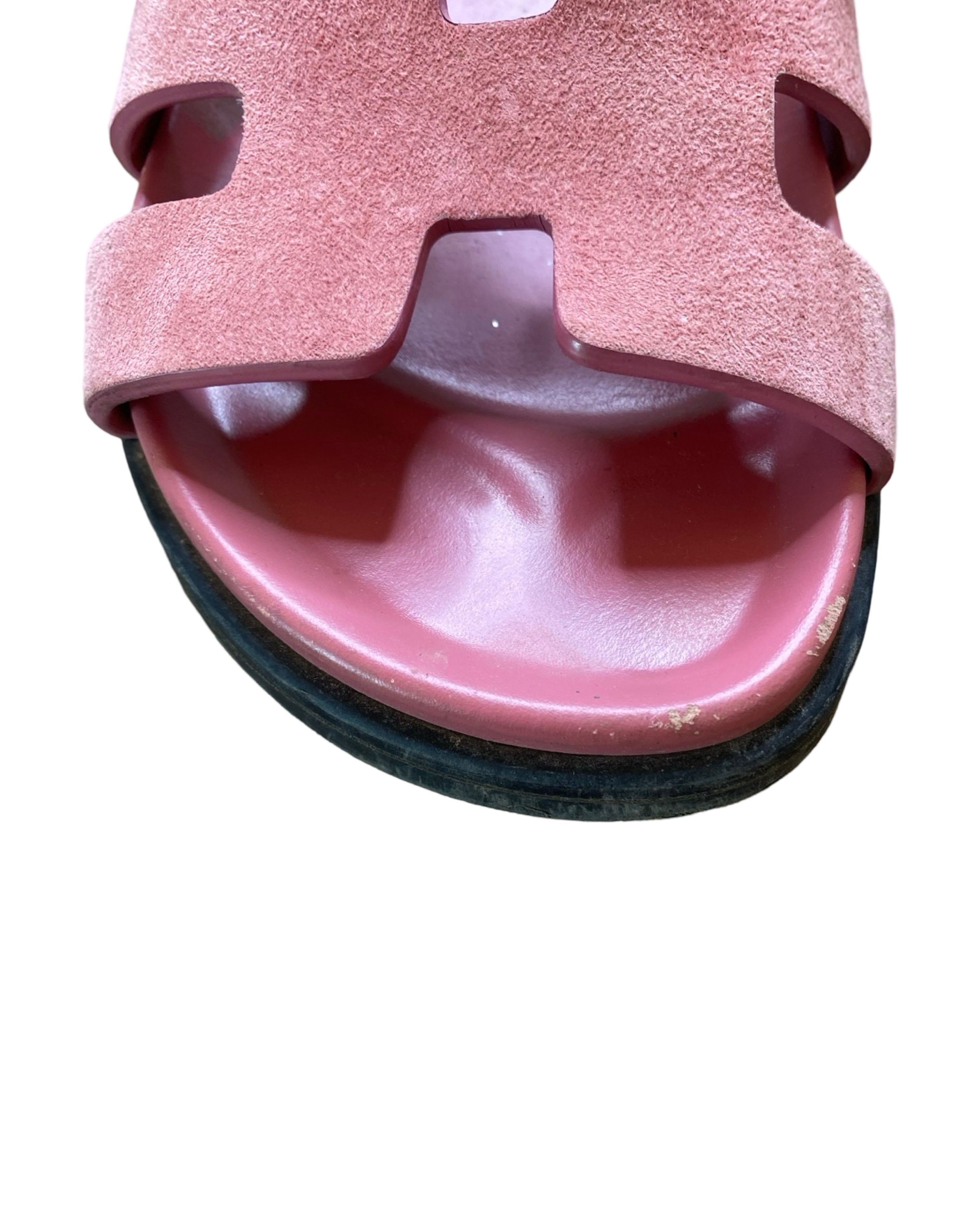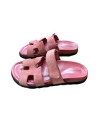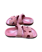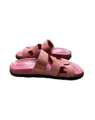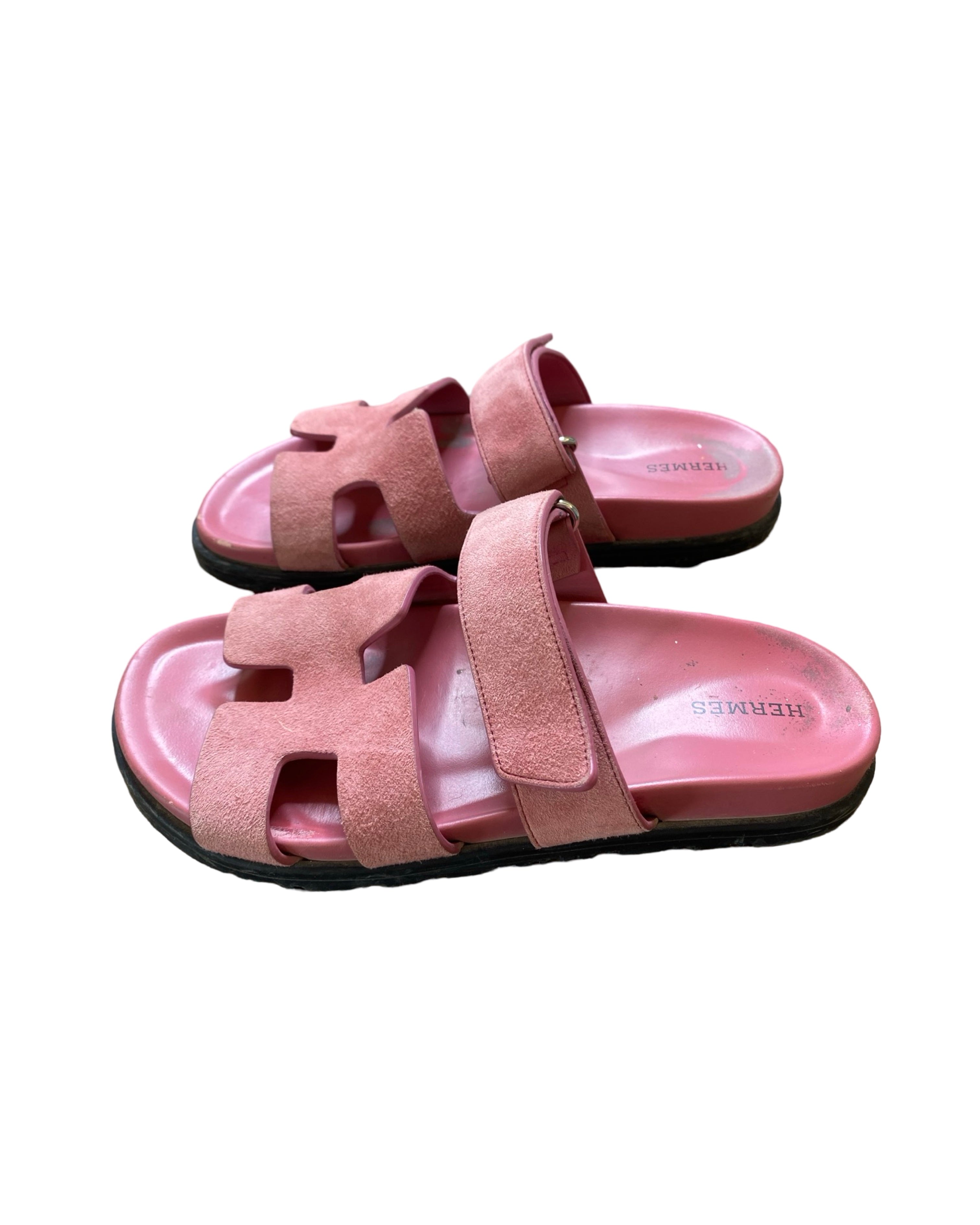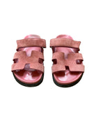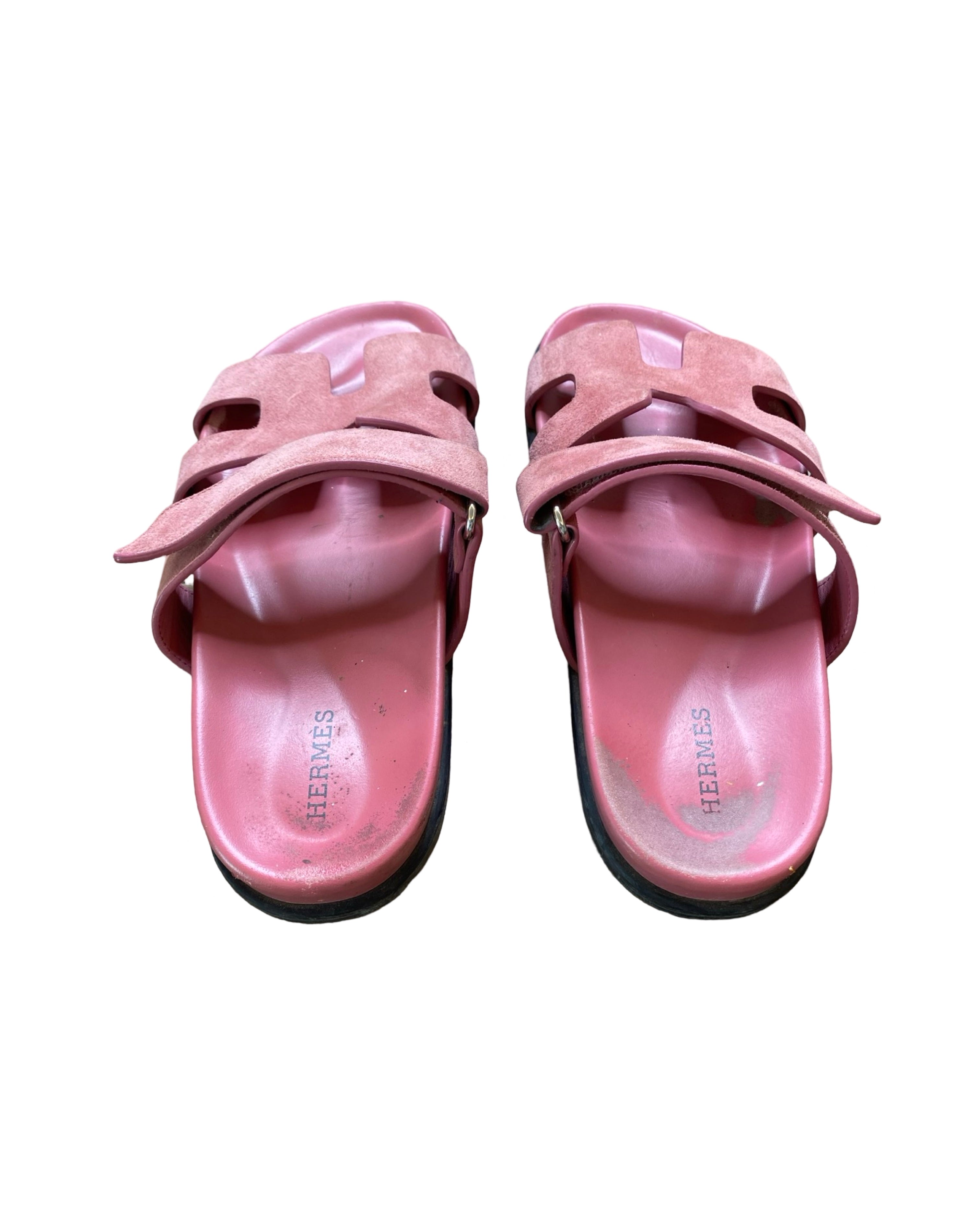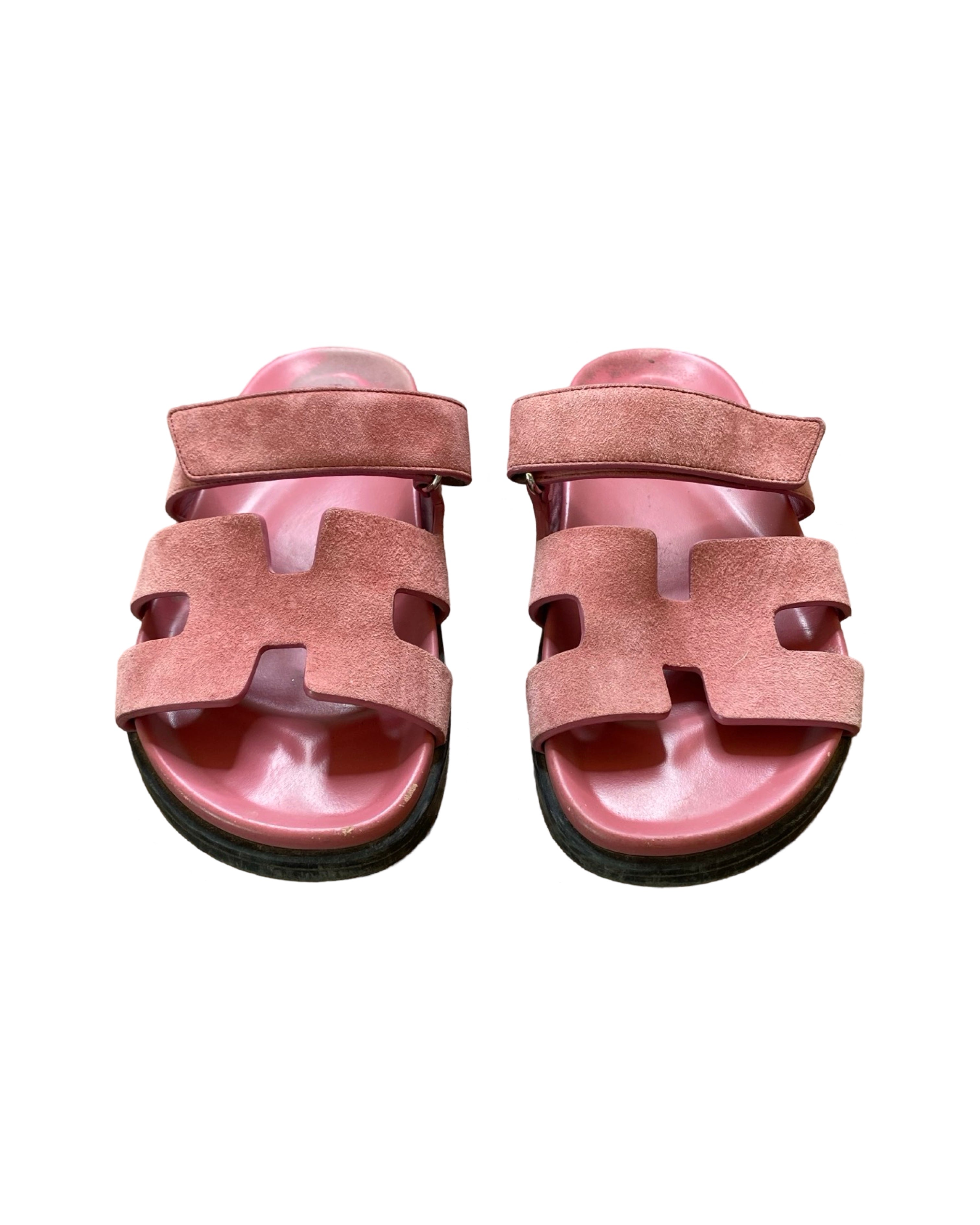 Step up your summer style with the Hermès Chypre Techno-Sandal. Crafted with suede goatskin, an anatomical rubber sole, and an adjustable strap, these sandals offer both comfort and sleek design. Available in size 37 and a trendy old-pink color, perfect for casual and effortless fashion. Will be sold with original dustbag and box.