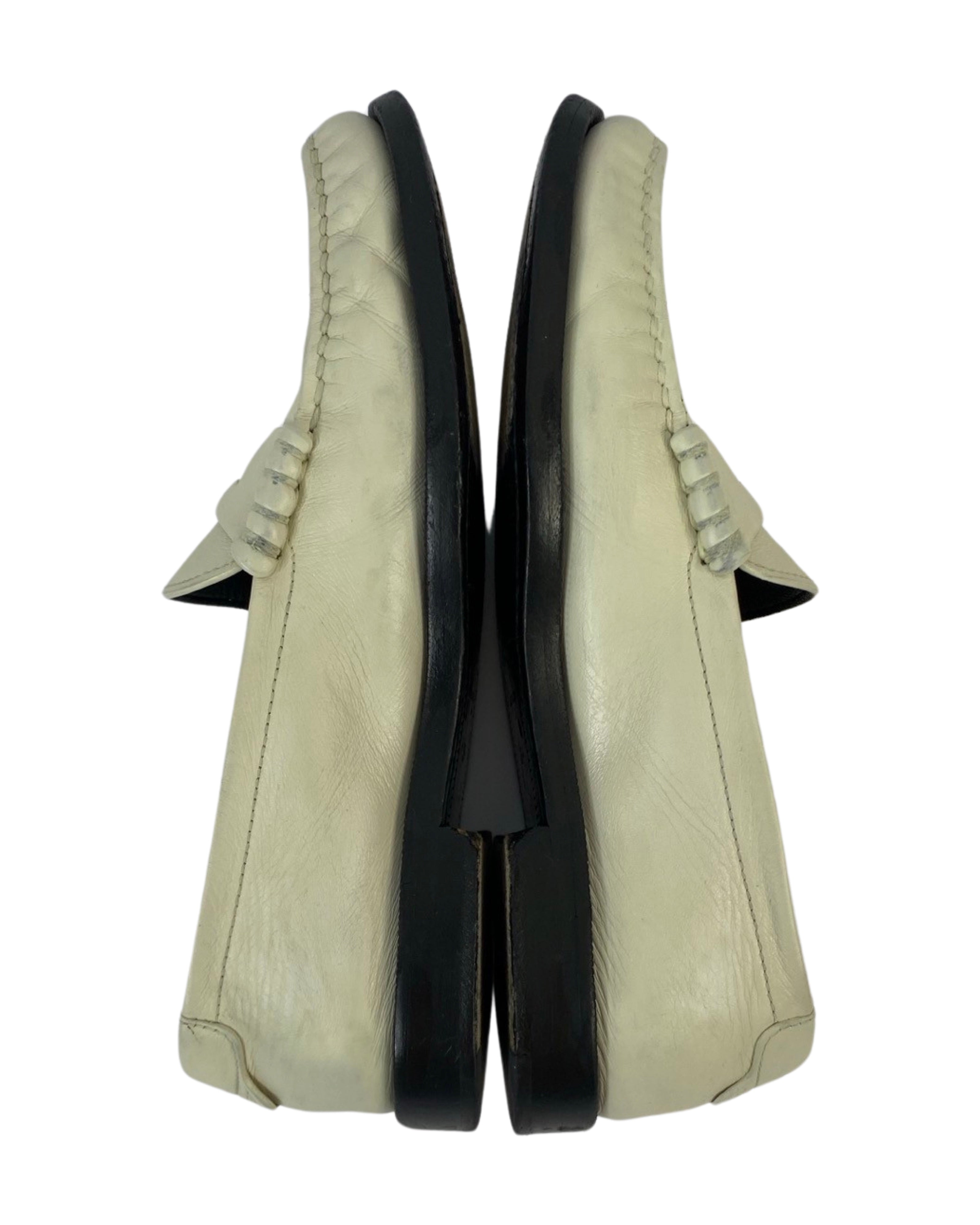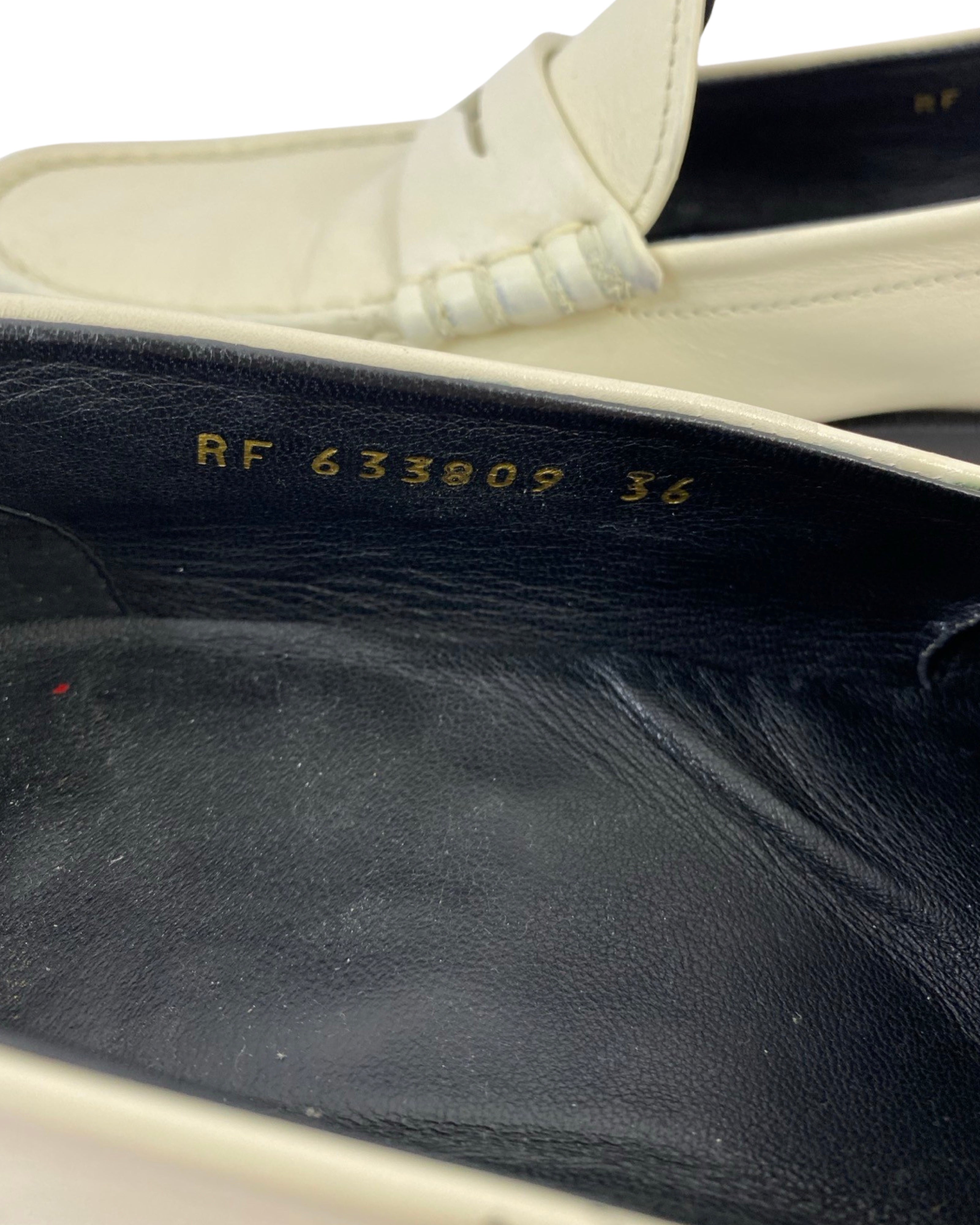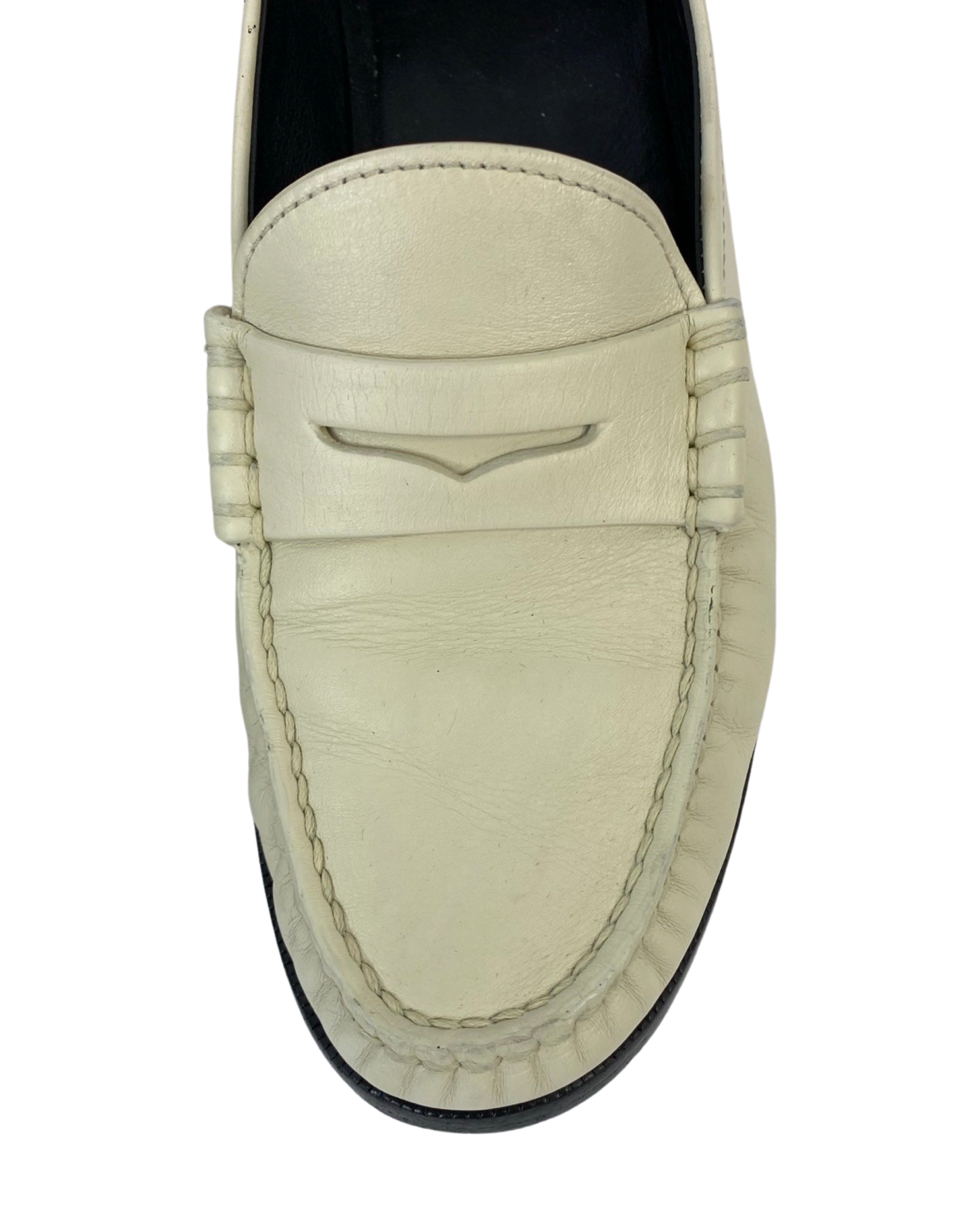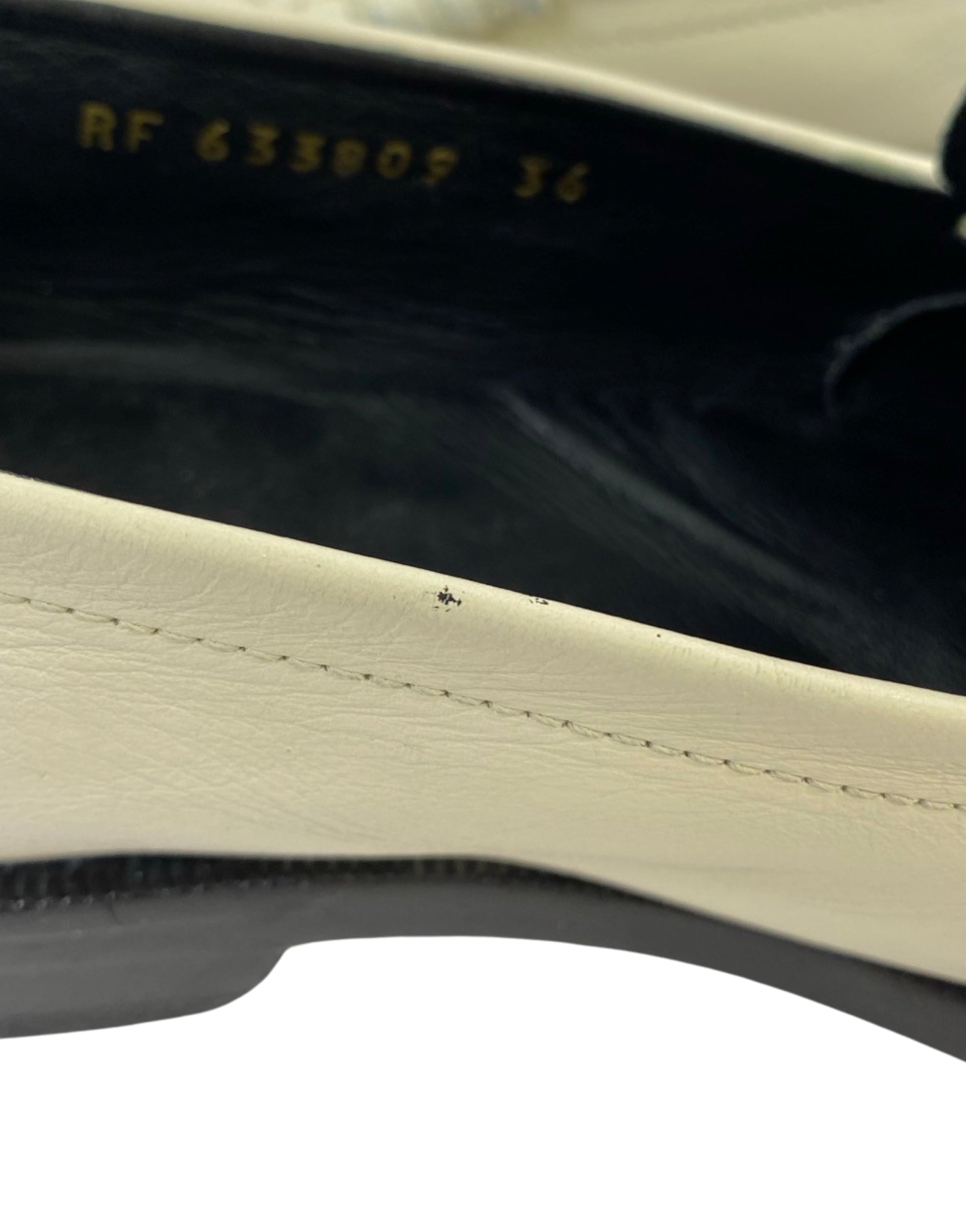 Indulge in luxury with the Saint Laurent cream leather loafers. Adorned with silver-tone hardware, these size 36 loafers are as good as new and will elevate any outfit. The 25.5 cm sole offers comfort while the elegant design exudes sophistication. Complete your wardrobe with these timeless loafers.