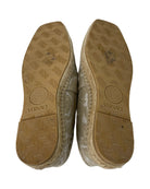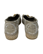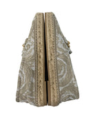 These Versace Jacquard Barocco loafers are a bold expression of the brand’s iconic opulence. Featuring the signature Barocco pattern in rich jacquard fabric, they’re finished with a gleaming gold logo detail that adds a touch of luxe sophistication. The structured silhouette and intricate design reflect Versace’s heritage of maximalist glamour, making these loafers a standout choice for both elevated everyday wear and special occasions. Eye-catching, elegant, and unapologetically stylish. The material of the shoes is a leather and fabric mix and the colour is a beautiful deep champagne beige.