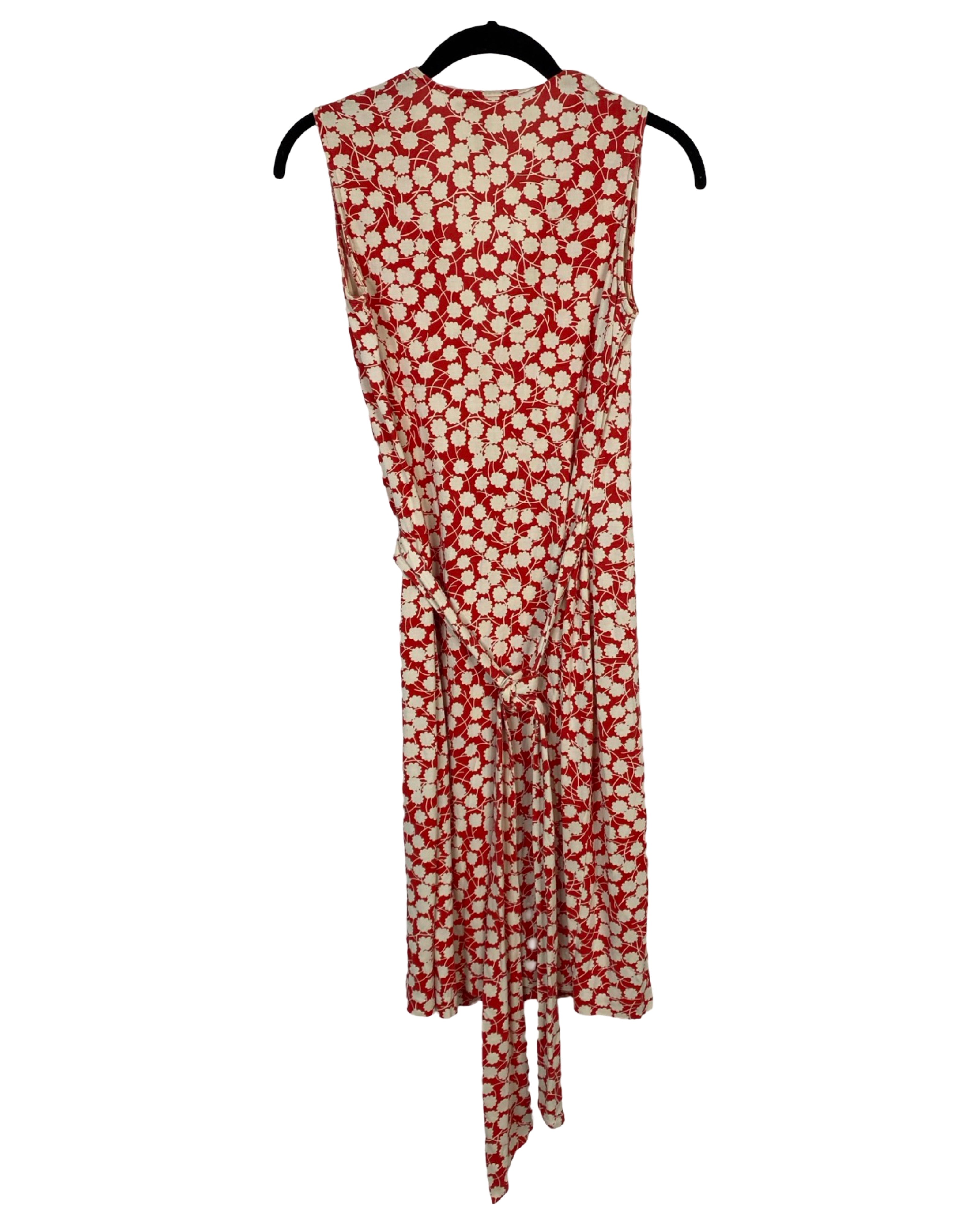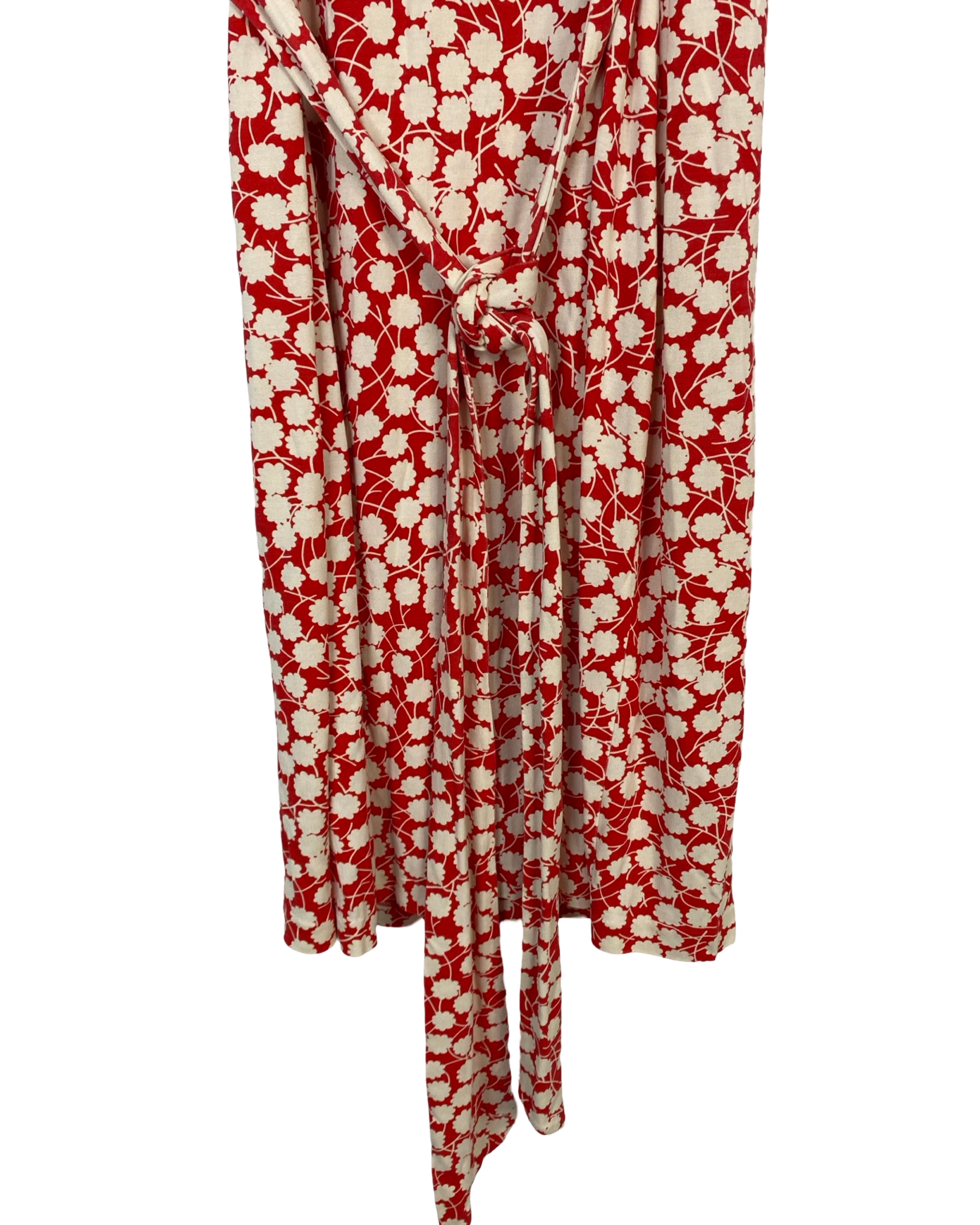 Capture the timeless elegance of Diane Von Furstenberg with this vintage wrap dress. Made with luxurious silk material, the 99 cm length and 41 cm armpit to armpit measurements provide a perfect fit for size S (US 4). In a striking floral red and off-white color, this dress is as good as new and perfect for any occasion.