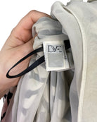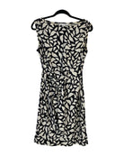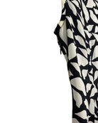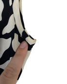 Elevate your style with the luxurious Diane Von Furstenberg dress. Made from silk with a soft drape, this midi dress features a flattering boat-neckline, matching belt, and is available in classic black, white print. Perfect for any occasion, exude elegance and sophistication with this must-have piece.