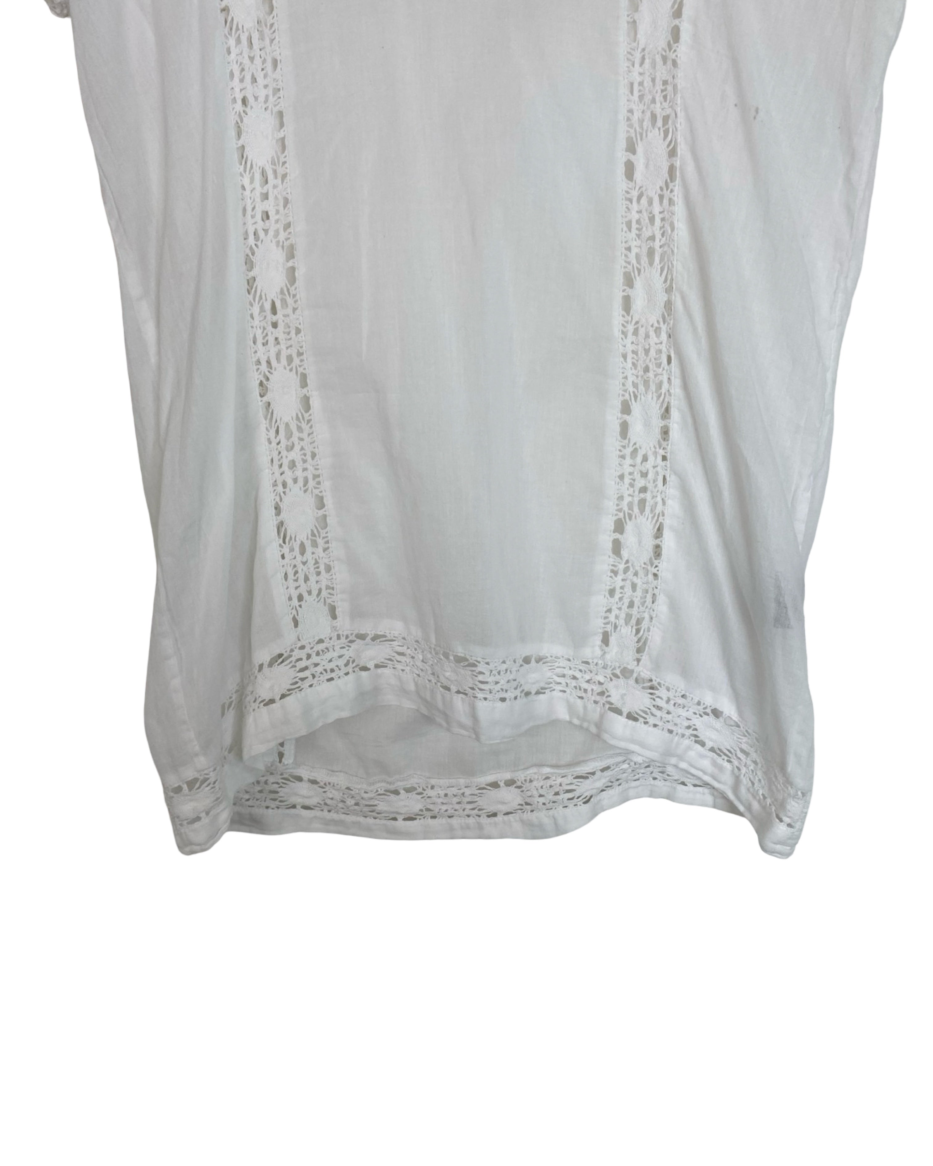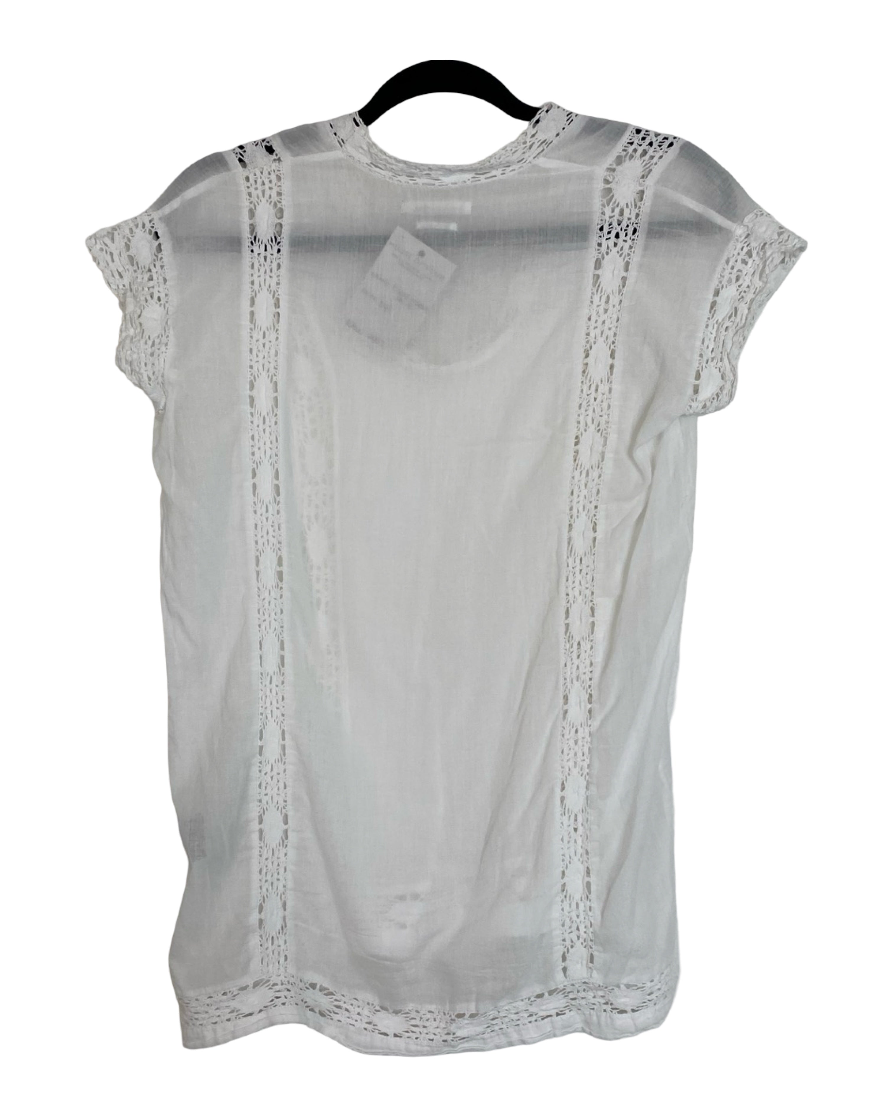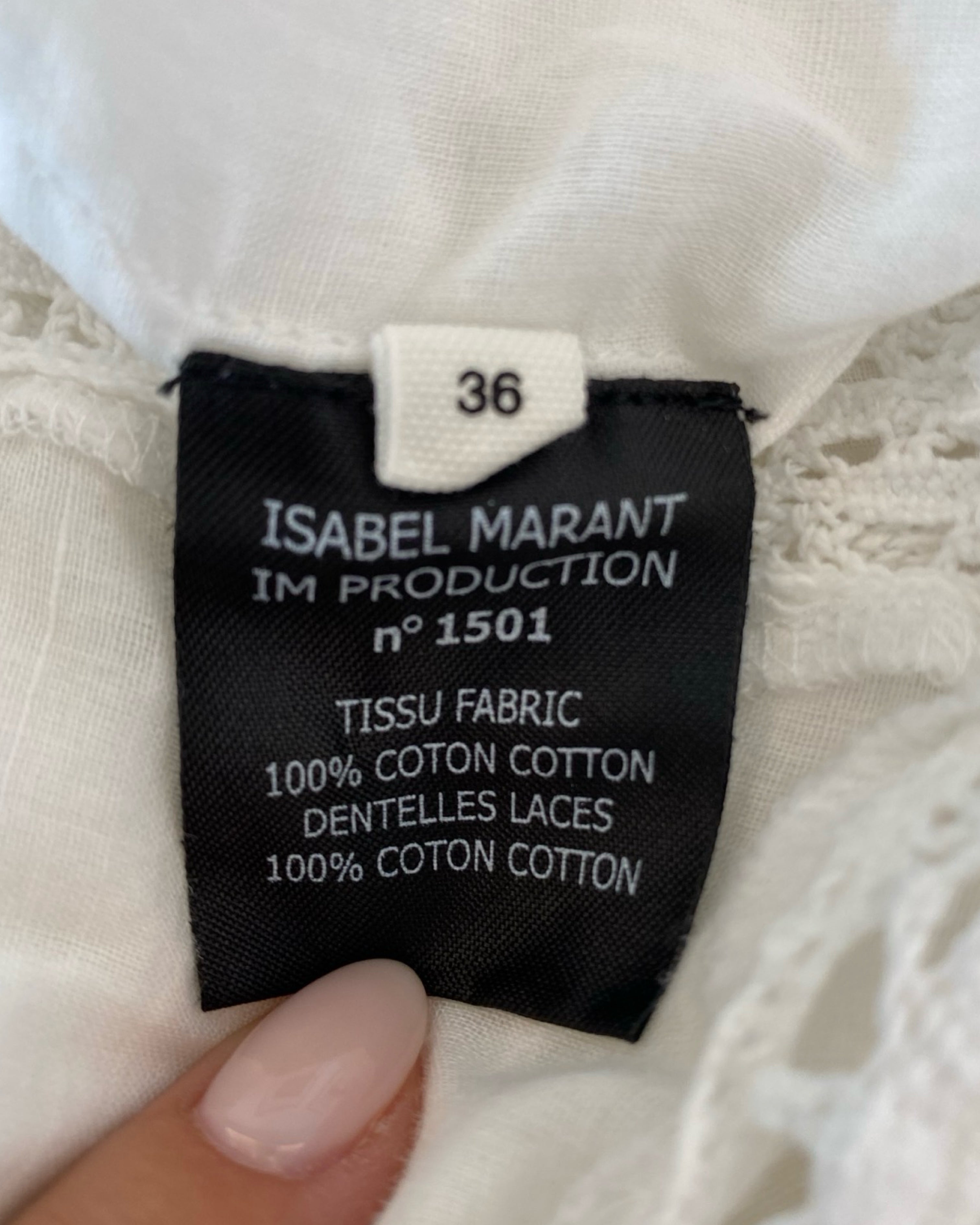 Delicate and effortlessly chic, this Isabel Marant Étoile top is crafted in crisp white cotton with intricate lace detailing for a feminine, bohemian touch. Lightweight and versatile, it pairs beautifully with denim or tailored pieces, making it perfect for both casual and elevated looks. True to the Étoile line’s relaxed Parisian aesthetic, this top blends romance with everyday wearability. Designed in size XS, it measures 70 cm in full length, 46 cm from armpit to armpit, and 13 cm in sleeve length, finished in classic white.