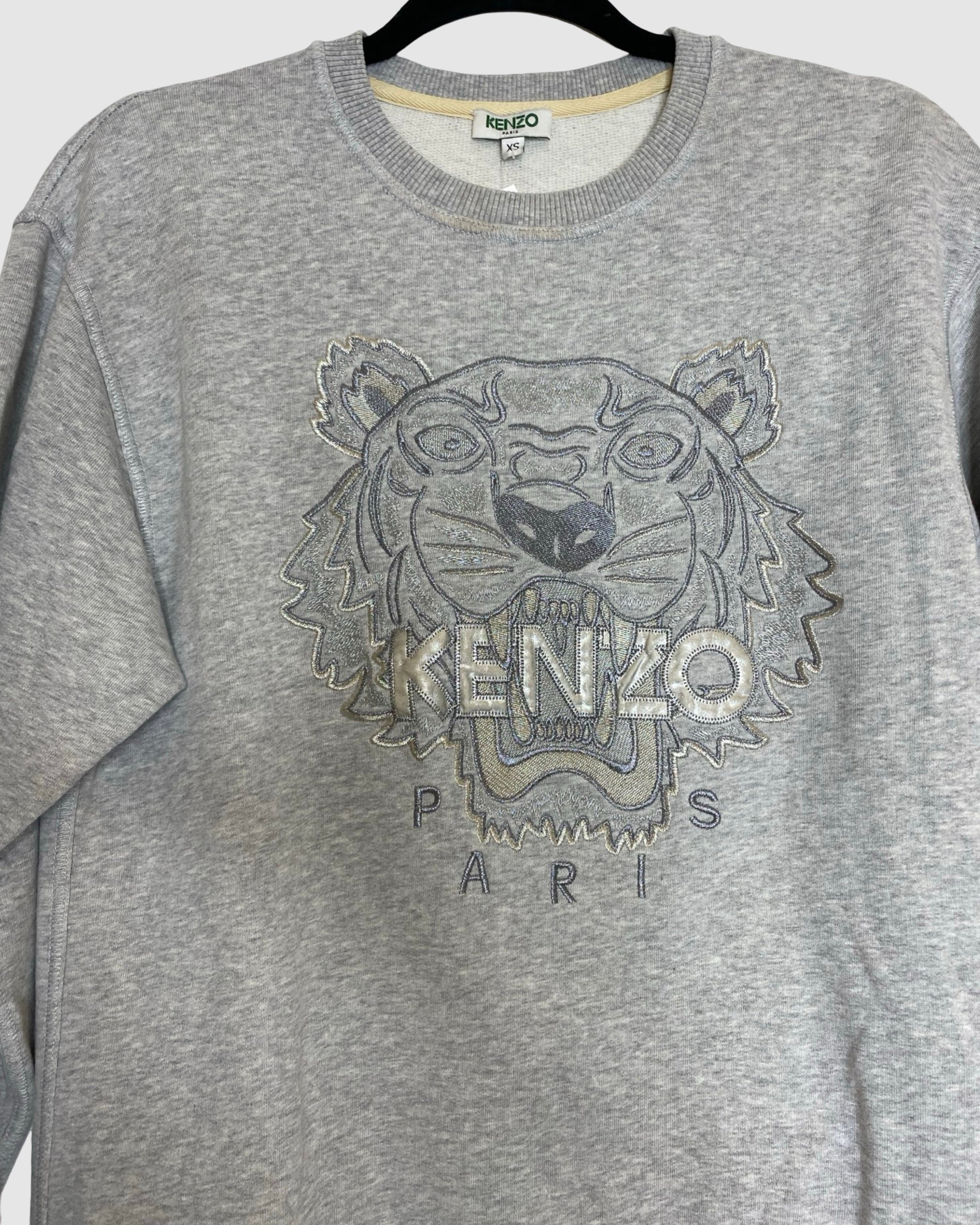 Iconic and easy to wear, this Kenzo grey sweatshirt features the brand’s signature tiger graphic for a bold designer statement. Crafted from comfortable cotton, it’s versatile and perfect for casual looks with a recognisable fashion edge. Size: XS.