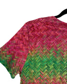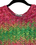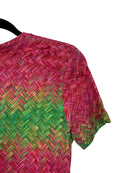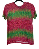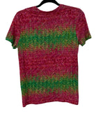 Casual with a statement twist, this Kenzo T-shirt is designed in a playful pink and green palette that captures the brand’s bold, modern aesthetic. Crafted from soft viscose for everyday comfort, it features a versatile silhouette that pairs effortlessly with jeans, skirts, or tailored trousers. A vibrant wardrobe staple, it brings Kenzo’s signature contemporary edge to any look. Size M, with a full length of 60 cm, an armpit-to-armpit measurement of 42 cm, and a sleeve length of 17 cm.