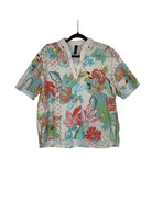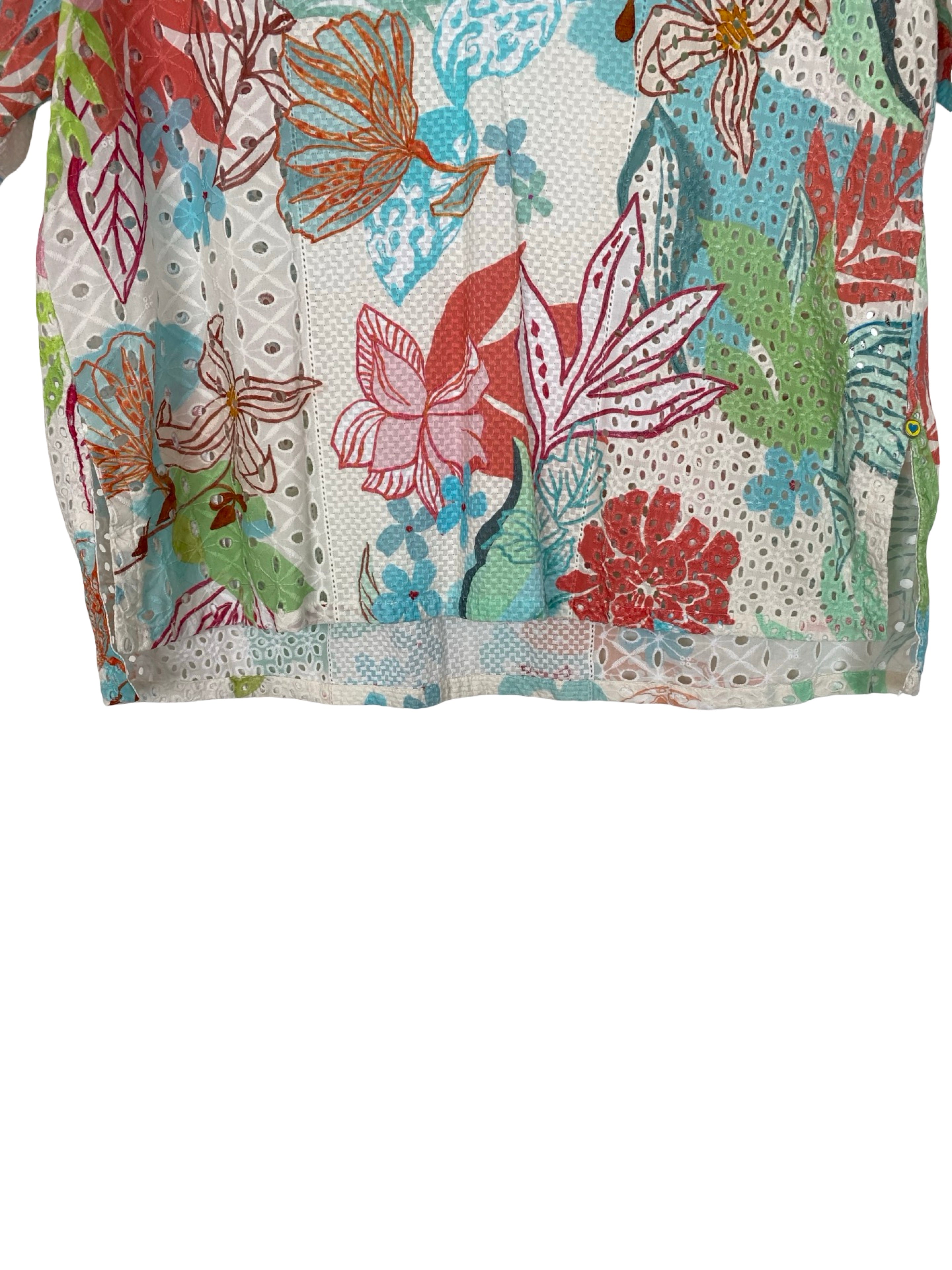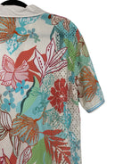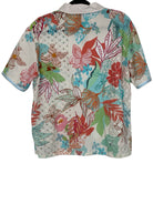 This Marc Cain floral blouse is crafted from pure cotton, offering a lightweight and breathable feel. Designed in a lively multicolour palette, it features an all-over floral print that adds fresh, feminine energy to any wardrobe. The soft cotton fabric ensures comfort, while the vibrant design makes it a standout piece for both casual styling and smart layering. In size S/M, it measures 68 cm in full length, 54 cm armpit to armpit, and 25 cm in sleeve length.