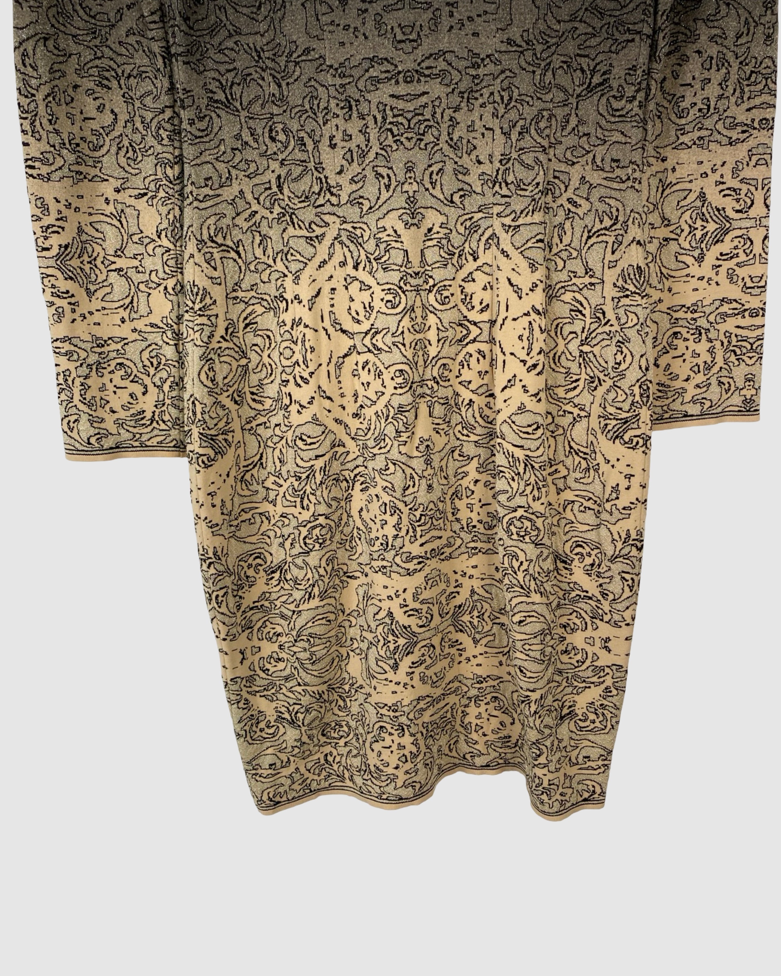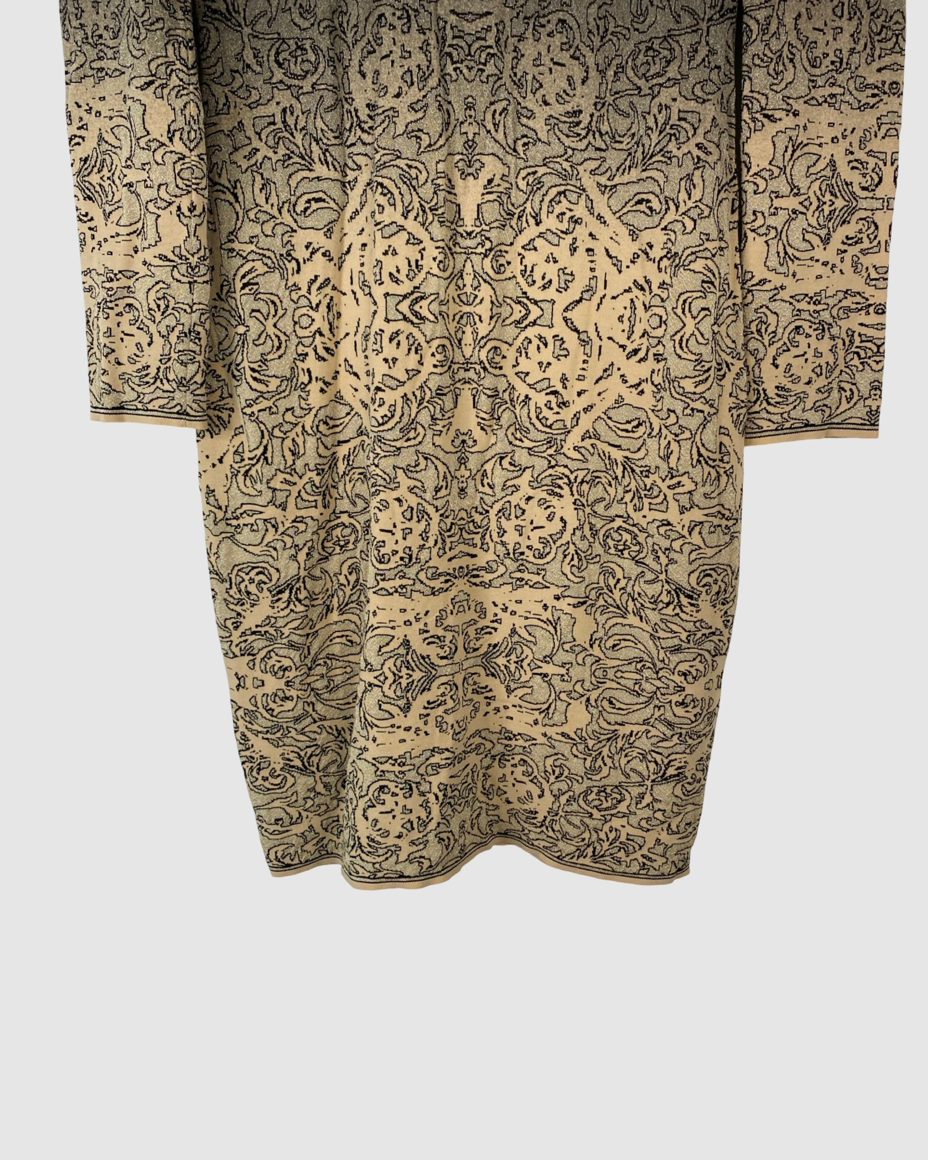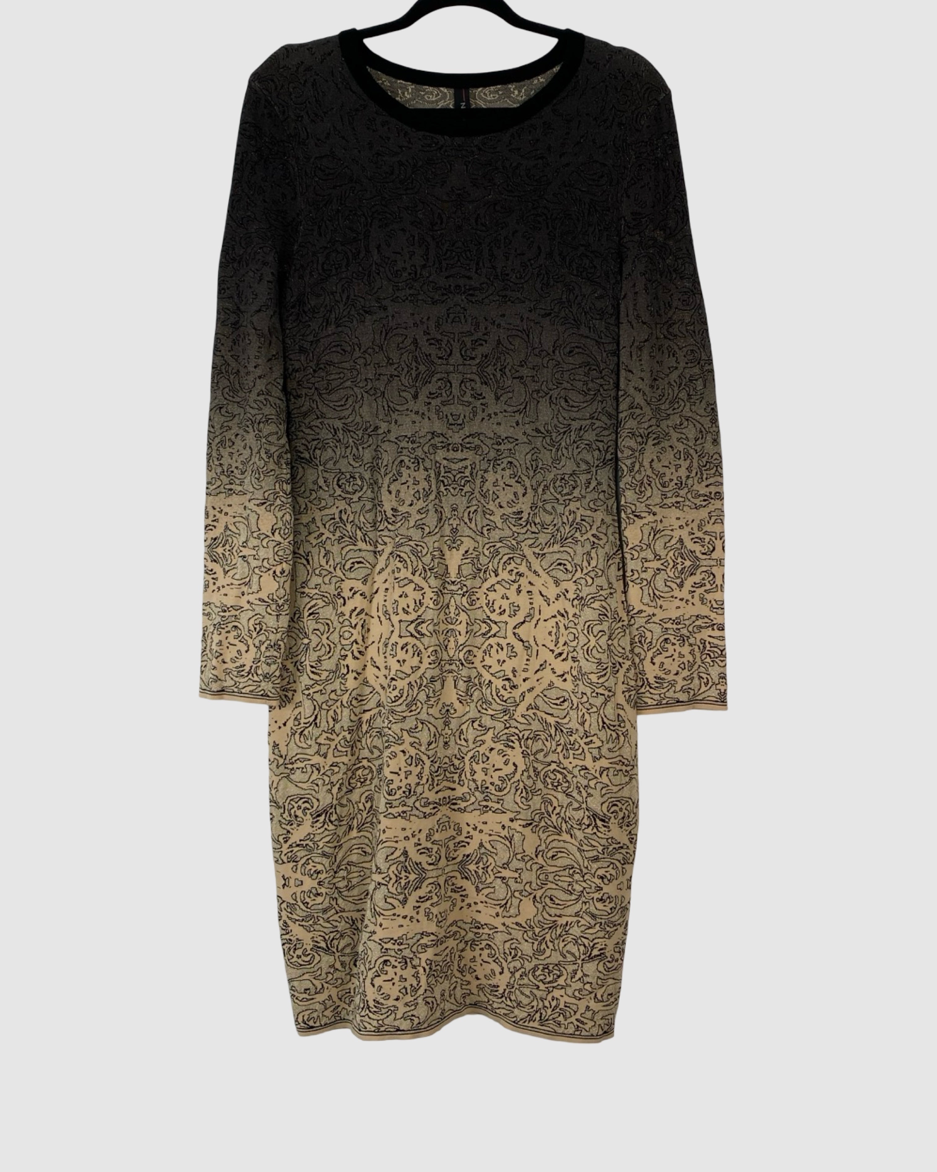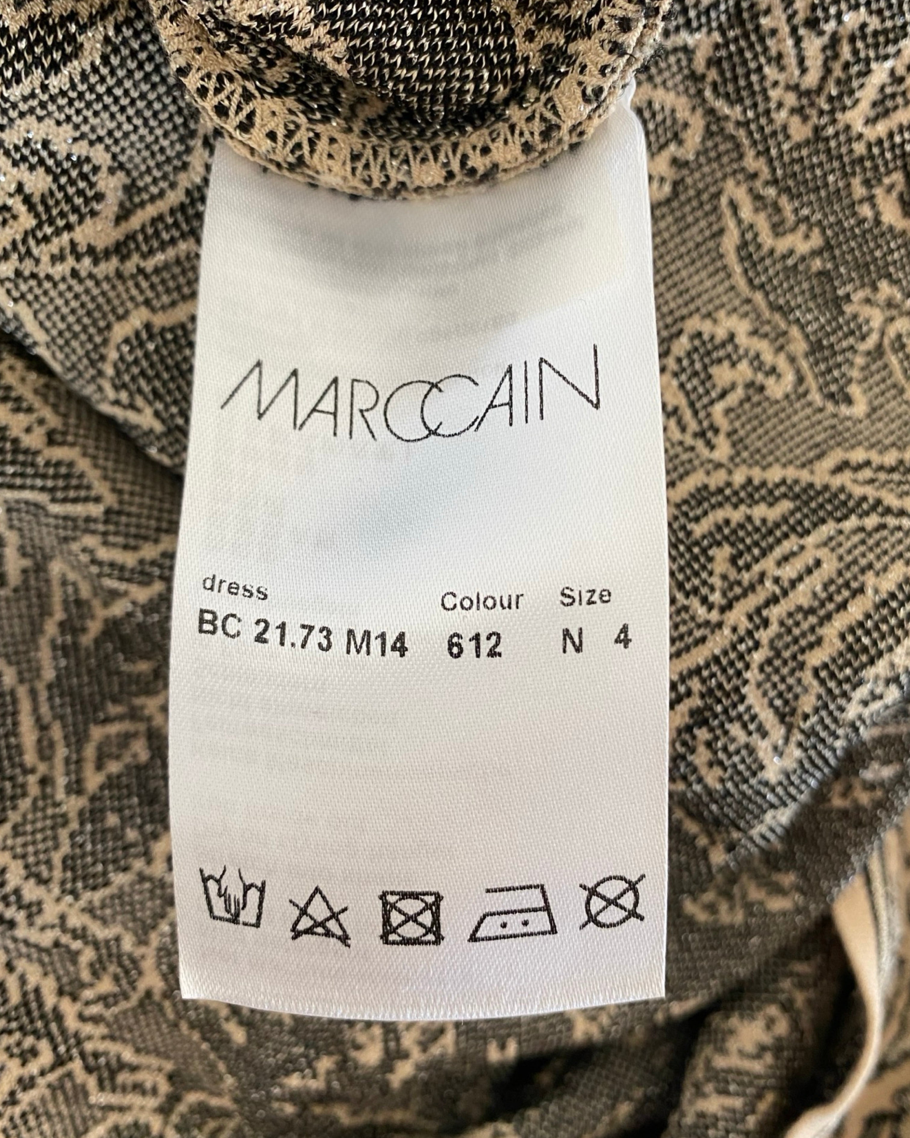 Elegant and versatile, this Marc Cain dress features a refined beige and black colour combination with long sleeves and a classic round neckline. Crafted from soft viscose, it offers a comfortable yet sophisticated silhouette perfect for both daytime and evening wear. Size: L.