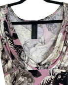 Delicate and feminine, this Norma Kamali mini dress features a lilac base adorned with black and white floral motifs. Lightweight and effortlessly chic, it drapes beautifully for a flattering silhouette, making it perfect for daytime events or casual outings. A versatile piece that embodies Norma Kamali’s signature modern elegance, it is crafted from a polyester-spandex blend in size S, measuring 90 cm in full length and 31 cm from armpit to armpit, finished in a soft lilac with black and white accents.