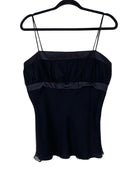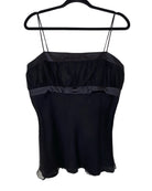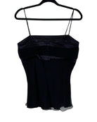 Effortlessly chic, this Paul & Joe top features a classic black design with delicate spaghetti straps, perfect for layering or wearing on its own. Crafted from luxurious silk for a flattering fit, it pairs beautifully with skirts, trousers, or jeans for a versatile look that transitions seamlessly from day to night. A timeless wardrobe essential with a subtle touch of elegance. Size L, with a full length of 46 cm and an armpit-to-armpit measurement of 43 cm.