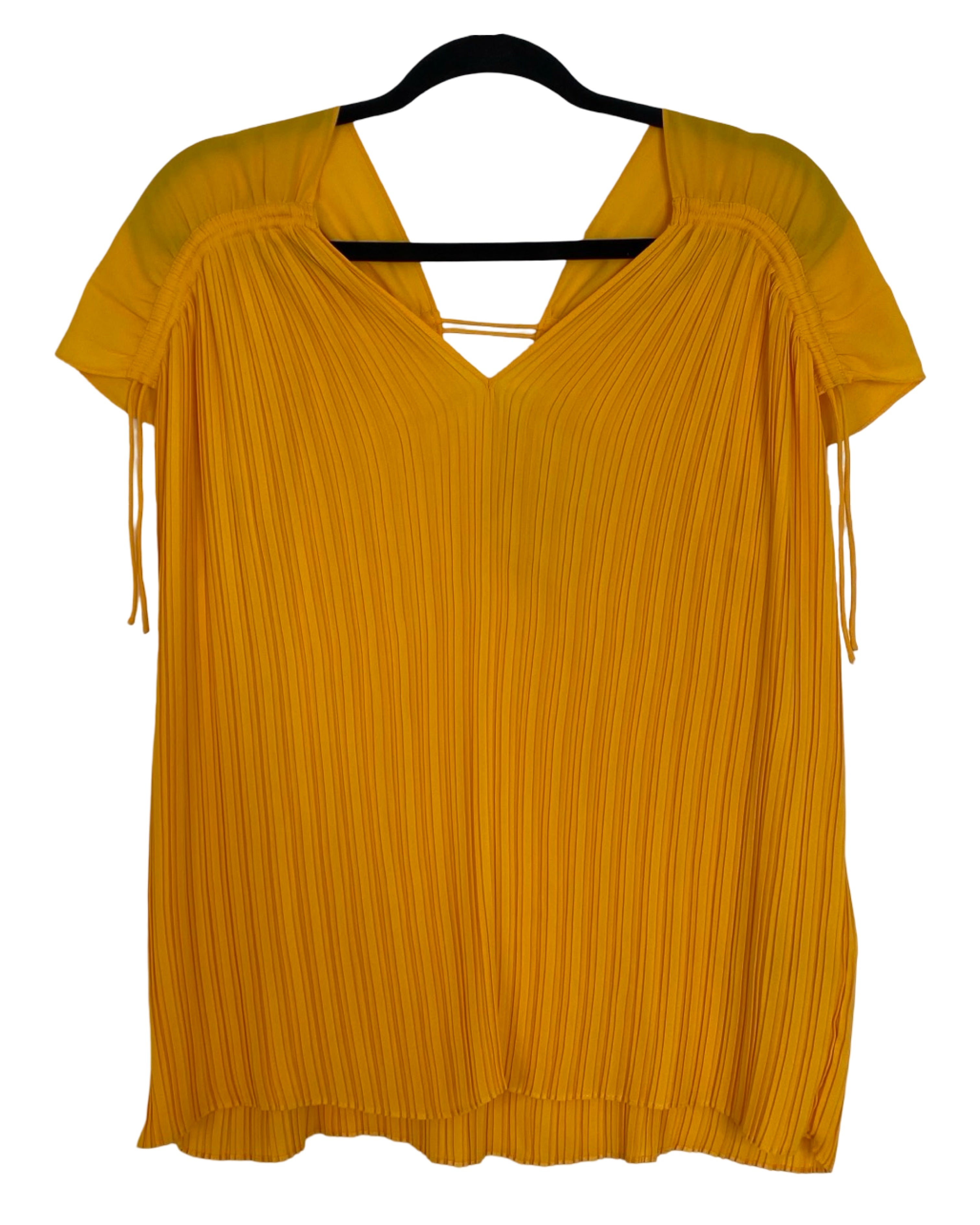 Bright and stylish, this Ted Baker top in a vibrant yellow-orange hue is crafted from soft polyester with beautifully detailed ruffles and textured fabric. Feminine and eye-catching, it’s perfect for adding a playful yet sophisticated touch to both casual and dressy outfits, showcasing Ted Baker’s signature attention to detail. Designed in size S, it measures 64 cm in full length and 44 cm from armpit to armpit, finished in a striking yellow-orange shade.