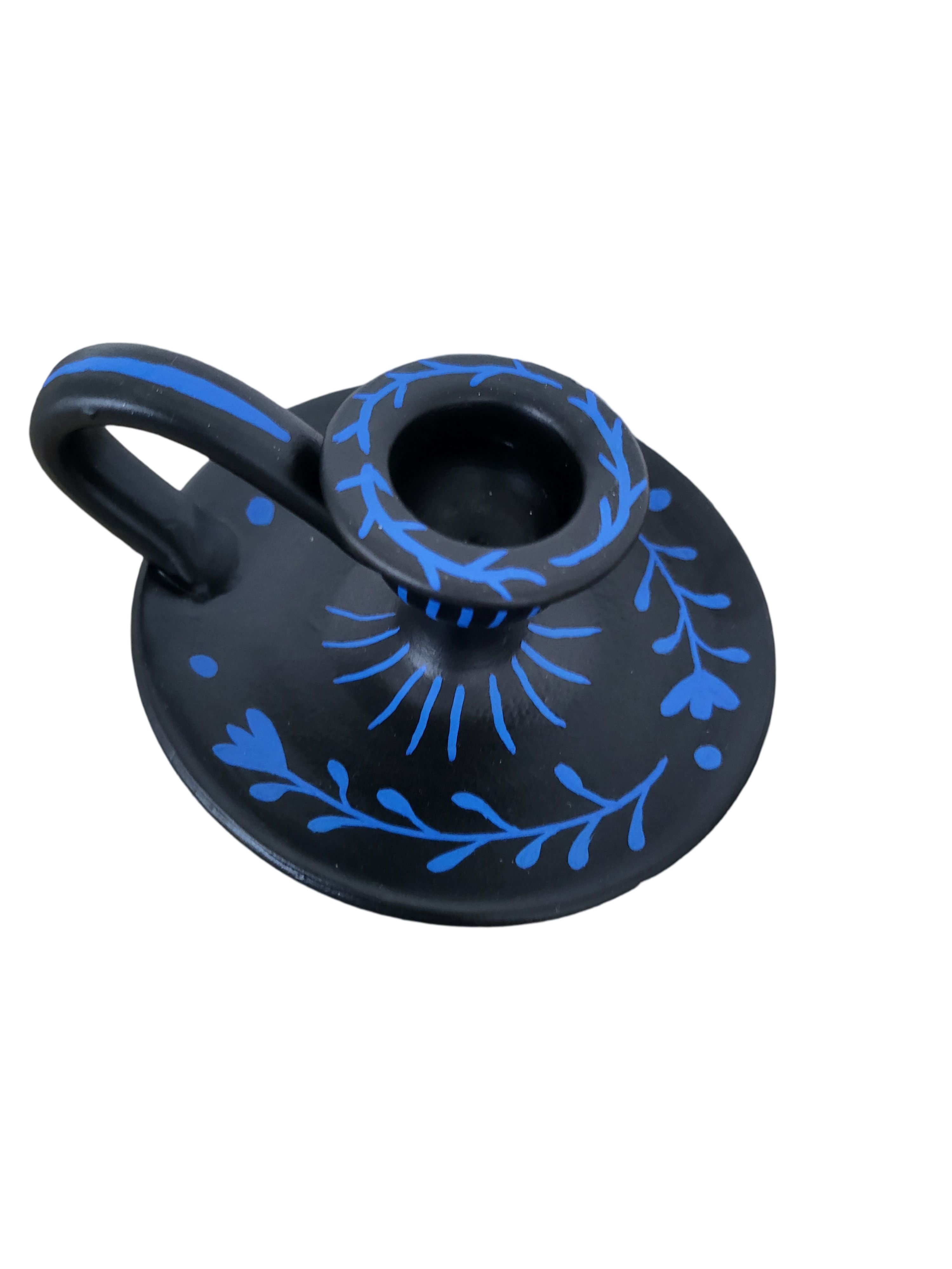 From the artist Redhin "blue motif" a one-of-a-kind handpainted ceramic candle holder made in Portugal. Adorned with a blue floral motif pattern, this piece is sure to make a statement in your home and with it bring ambiance.