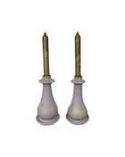 From the artist Redhin "stripe pink " one-of-a-kind handpainted ceramic candleholder set made in Portugal. Adorned with a golden rim and gold stripes, this piece is sure to make a statement in your home and bring with it the ambiance.