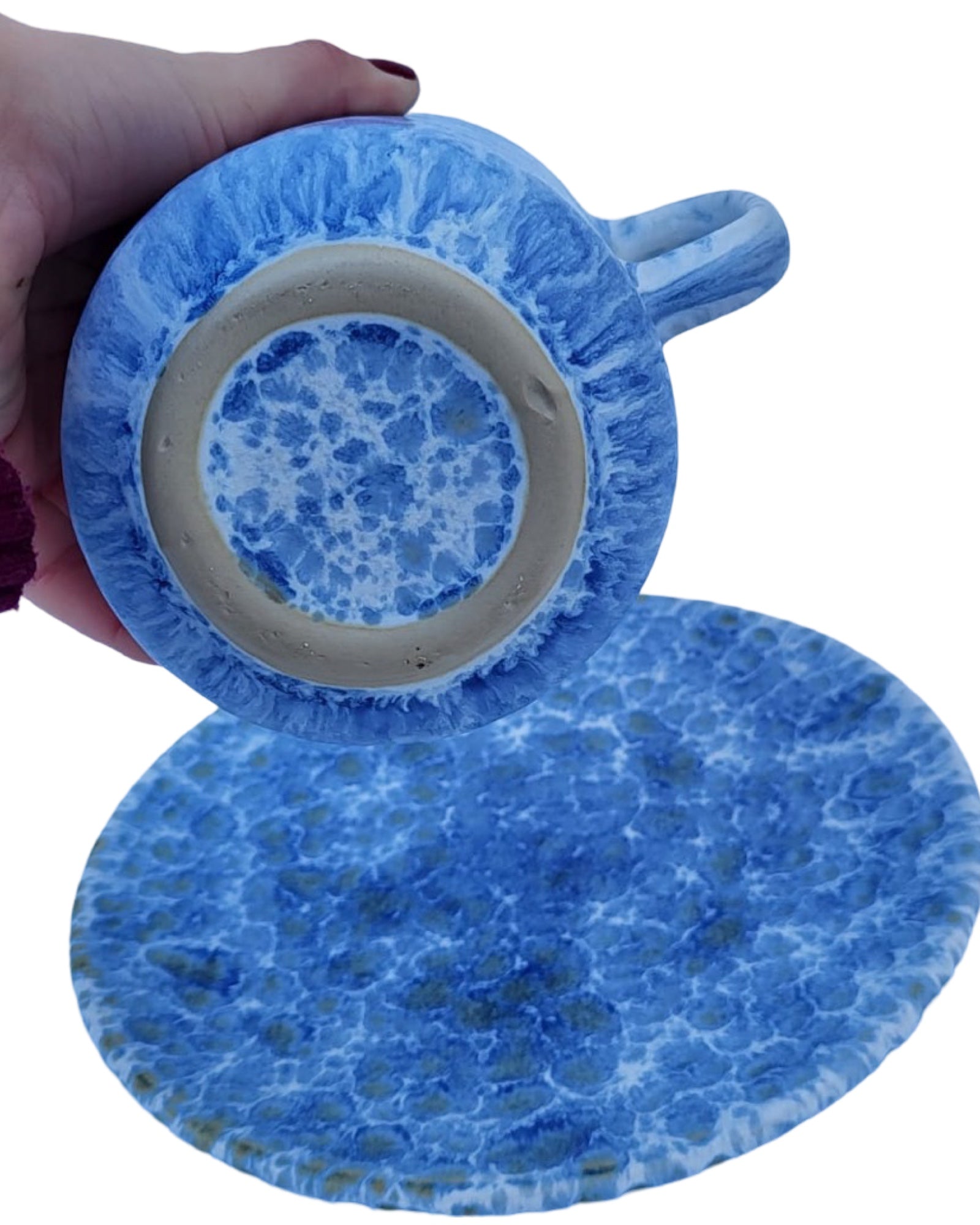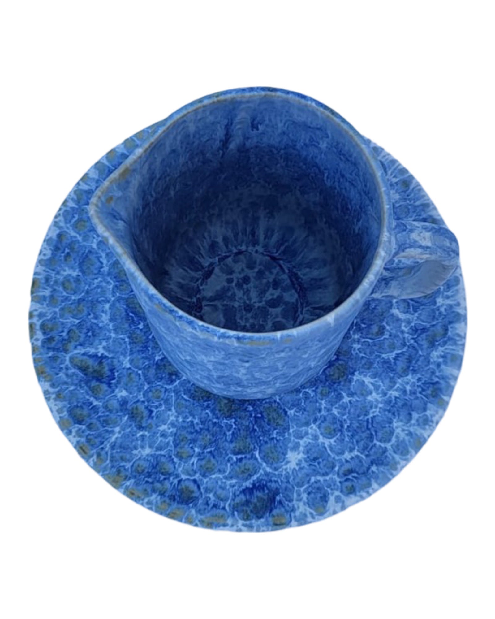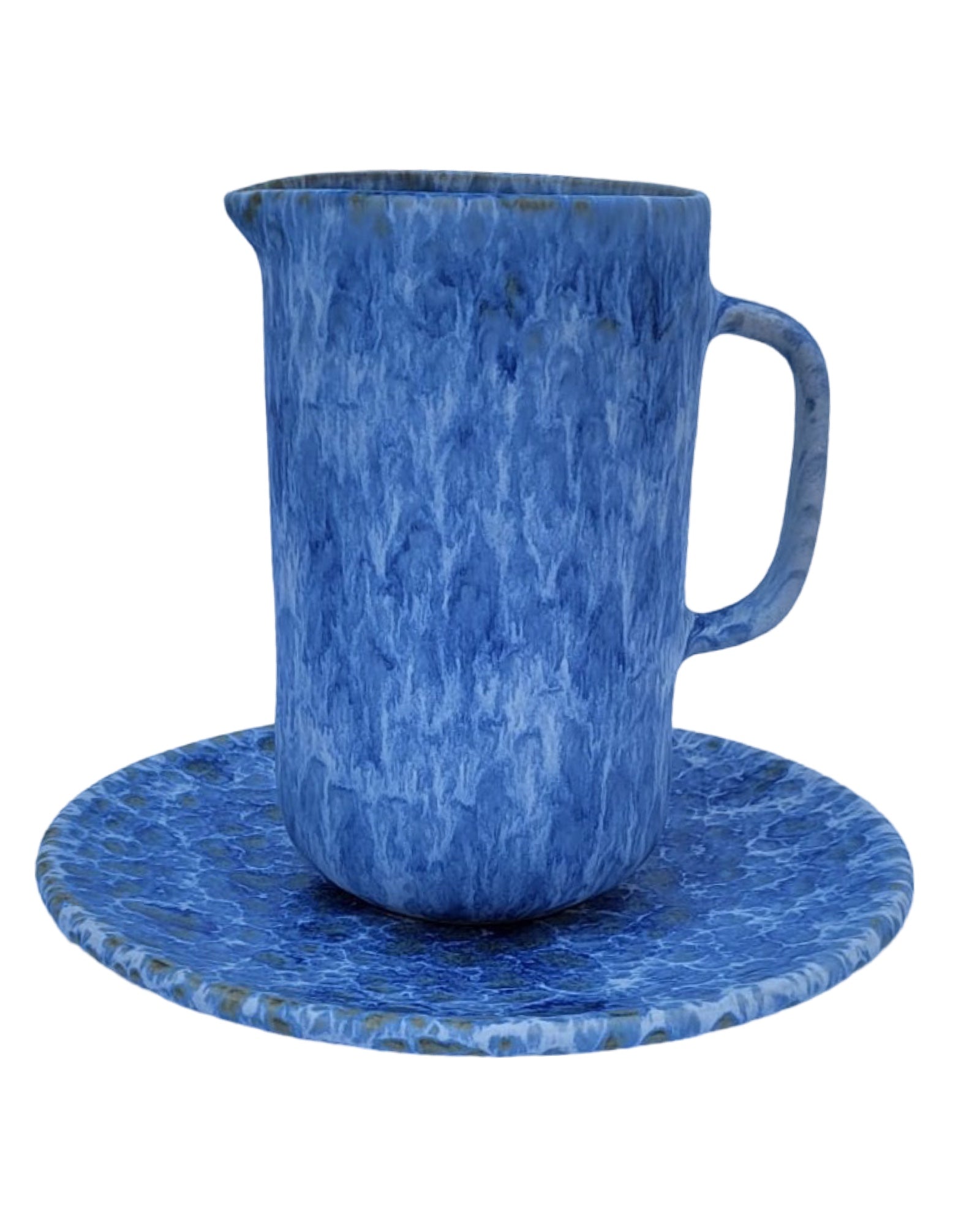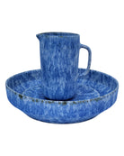 Introducing our stunning blue ceramic bowl, jug, and saucer set, handcrafted in Portugal. The bowl has a 31 cm diameter and a 9 cm depth, while the jug has an 11 cm diameter and 16 cm height, with a 300ml capacity. Perfect for adding an elegant touch to your decor or for practical use.