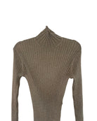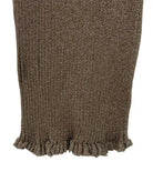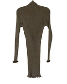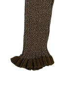 The Alexander Wang brown glitter dress features a shimmering finish with long, ruffled sleeves and a ruffled hem, creating a dramatic and elegant silhouette. Crafted with meticulous attention to detail, this statement piece combines playful movement with sophisticated glamour, making it perfect for evening events and special occasions. Made from polyester in a rich brown hue, the dress measures 95 cm in full length, 36 cm from armpit to armpit, and 64 cm in sleeve length.