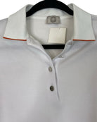 Crafted from premium cotton, this Hermès polo shirt is a timeless wardrobe staple. In crisp white, it features the brand’s signature orange lining at the sleeve ends and hem for a refined touch of contrast. Designed with a classic polo collar and tailored fit, this size M piece offers both comfort and sophistication—perfect for smart-casual styling. It measures 63 cm in full length, 44 cm armpit to armpit, and has a sleeve length of 19 cm.