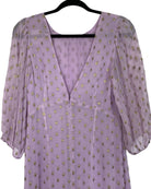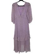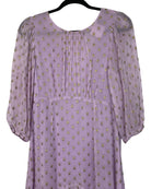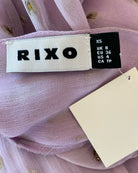 This Rixo midi dress in soft lilac exudes effortless femininity and charm. Crafted from a polyester-viscose blend, its flattering midi length and delicate silhouette create a graceful, modern look, while the gentle lilac hue adds a fresh and romantic touch. Perfect for both daytime events and elegant evening outings, this size XS dress measures 140 cm in full length, 36 cm armpit to armpit, and 43 cm in sleeve length.