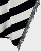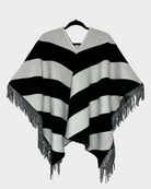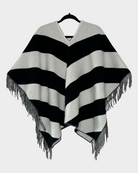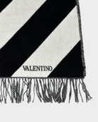 Elevate your autumn style with the Valentino Garavani Poncho, crafted from a soft blend of virgin wool and cashmere for warmth and comfort. Its elegant black and white design highlights a subtle 'V' pattern, complemented by delicate fringed edges. This one-size piece offers versatile layering, making it an ideal accessory for cooler days. Brand new with tags and original box included, it seamlessly combines luxury with practicality.