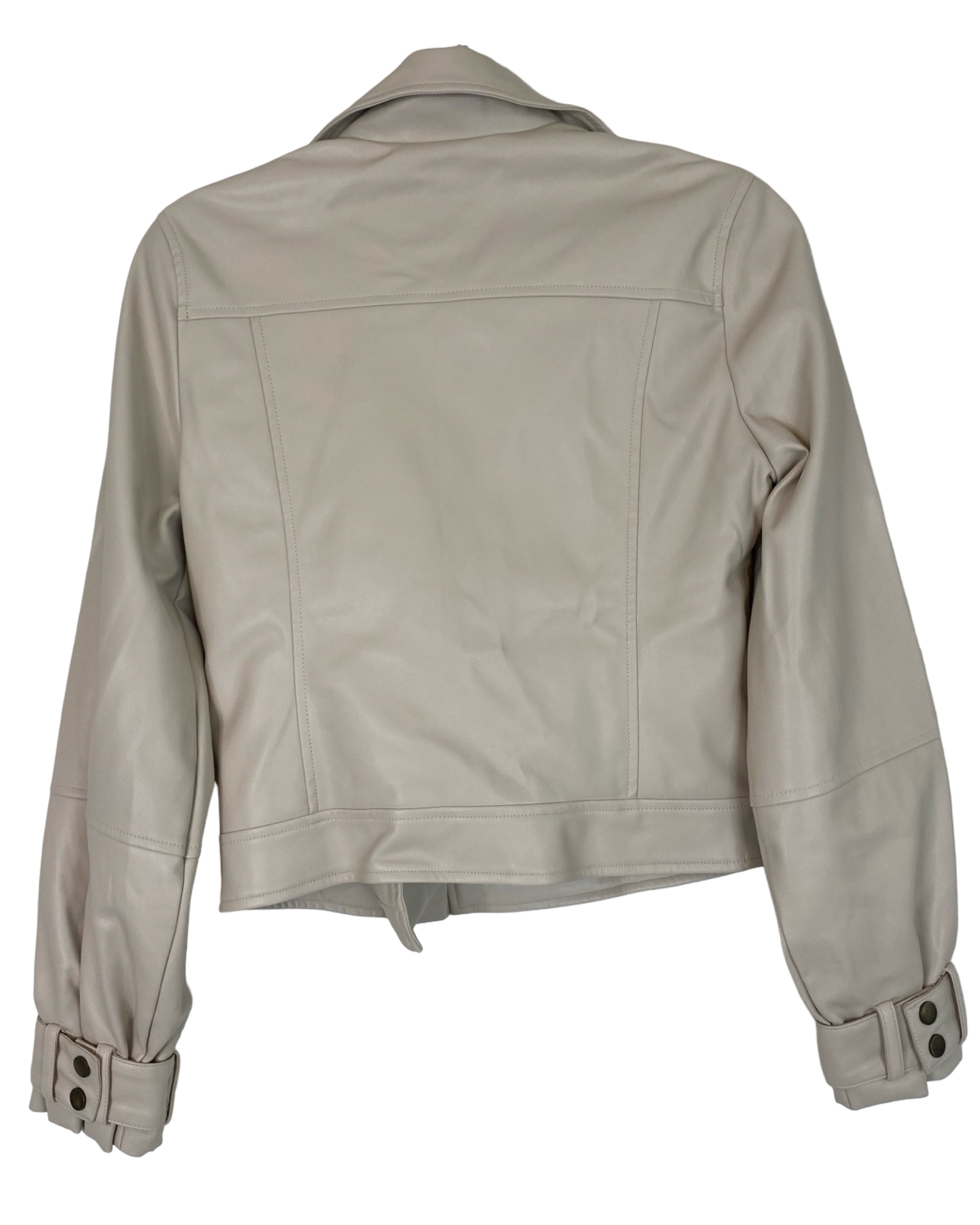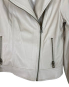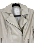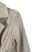 The YAYA leather jacket in beige features sleek black hardware details, blending contemporary edge with classic design. Crafted from high-quality leather, it offers a structured yet comfortable fit, making it a versatile statement piece perfect for elevating any outfit. Made from premium beige leather, the jacket measures 60 cm in full length, 42 cm from armpit to armpit, and 60 cm in sleeve length.