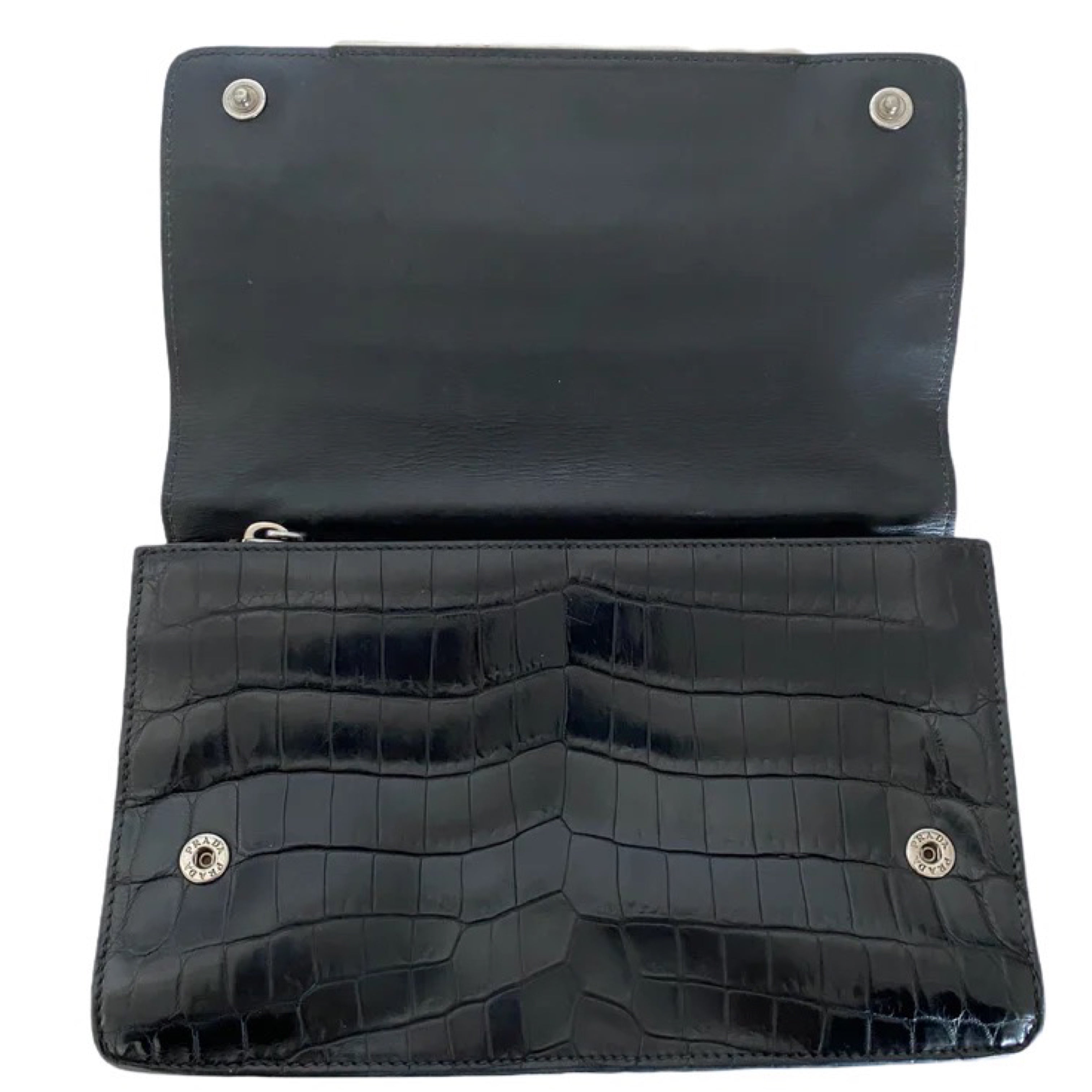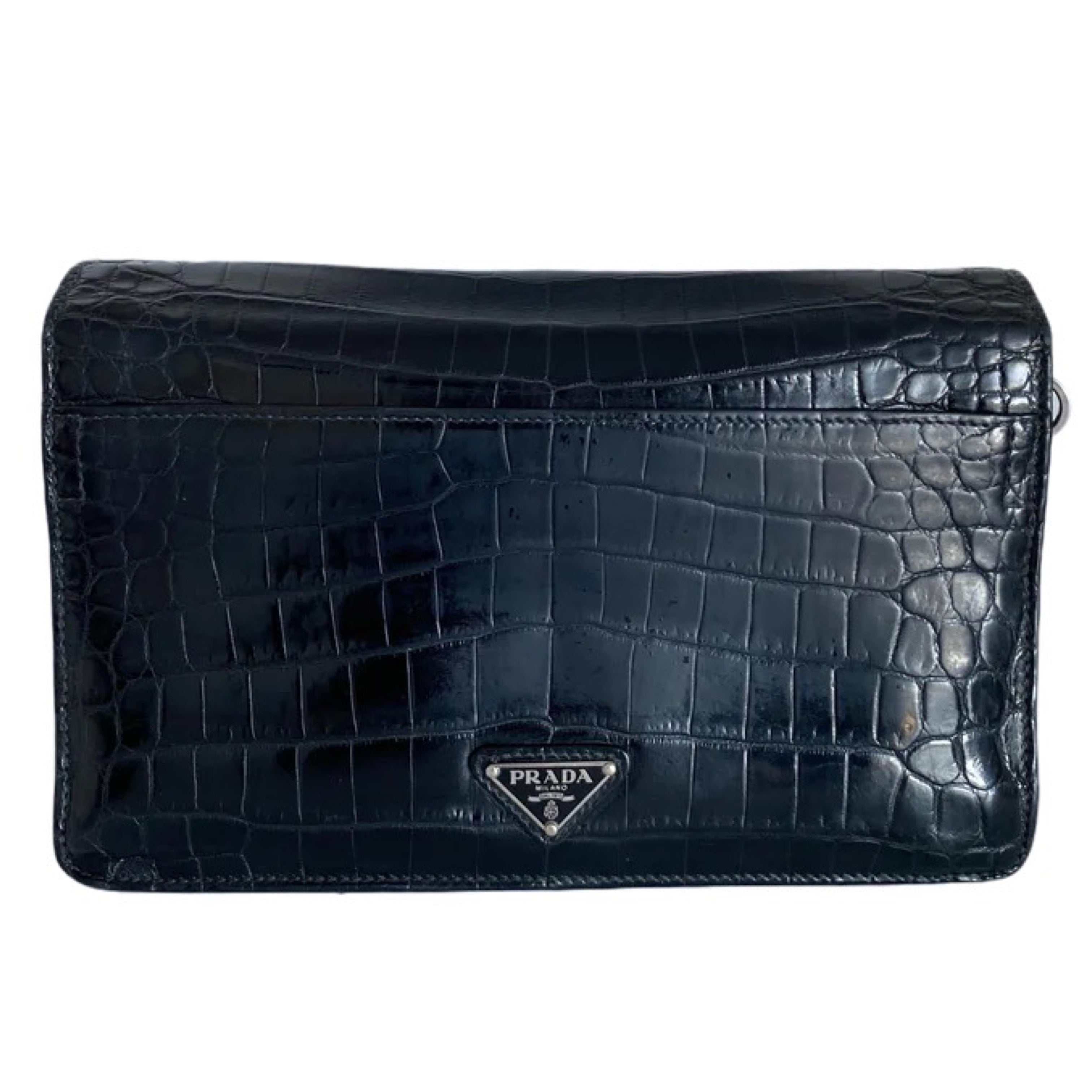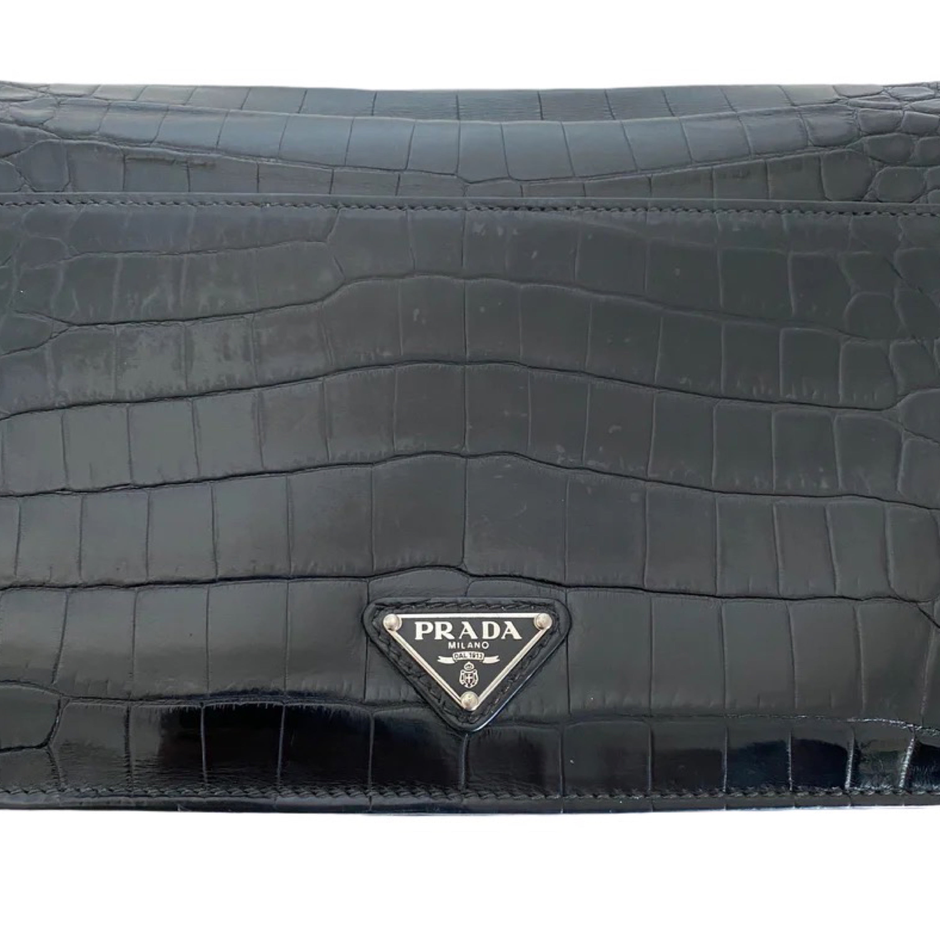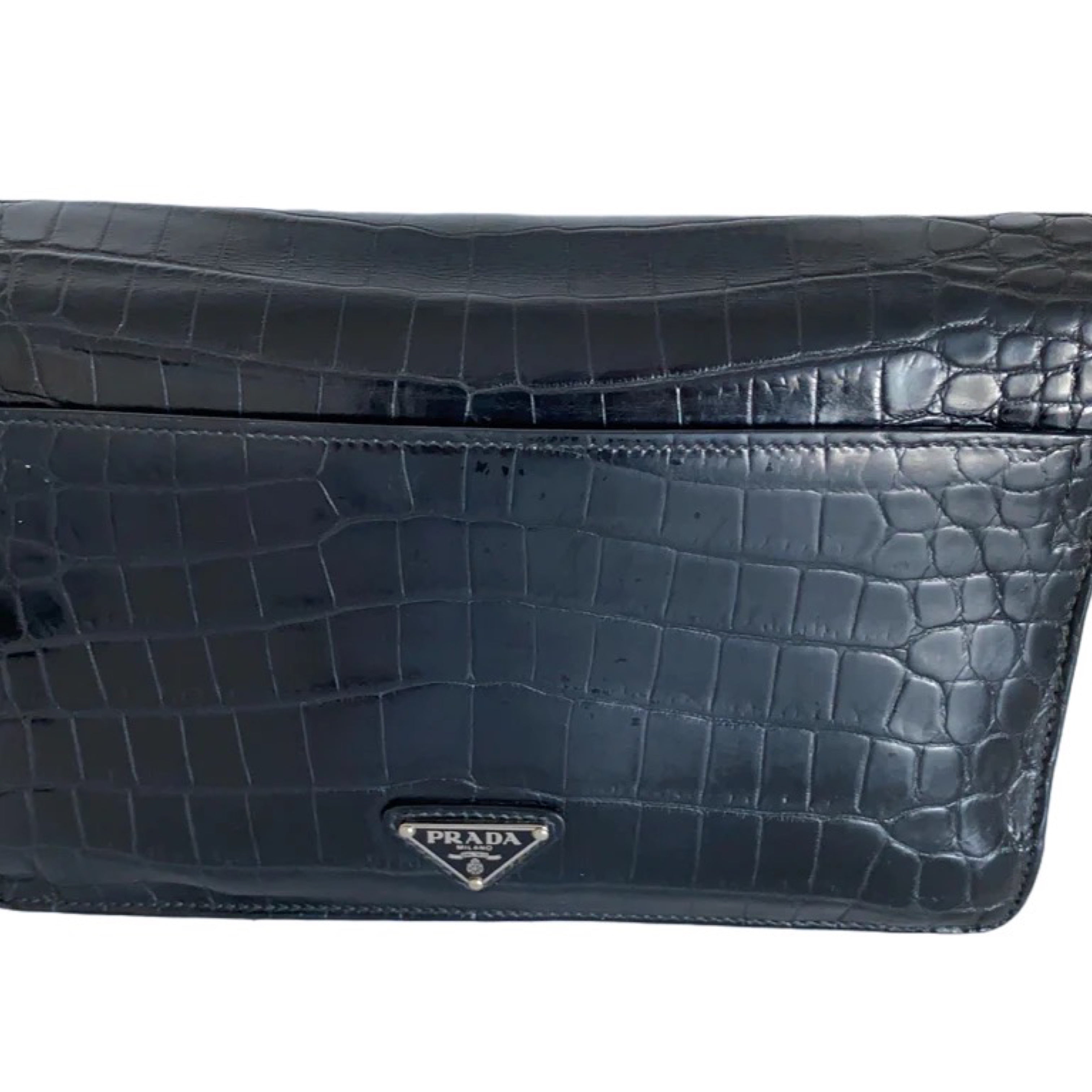 Beautiful clutch from the designer label Prada. The clutch is made of genuine crocodile leather. The leather shows some signs of wear but is very well maintained. The leather has some imperfections from holding the bag, but is overall in perfect condition. Unfortunately the clutch strap is no longer present. The bag is great to wear for a chic outfit, but also as an eye-catcher with your everyday outfit.