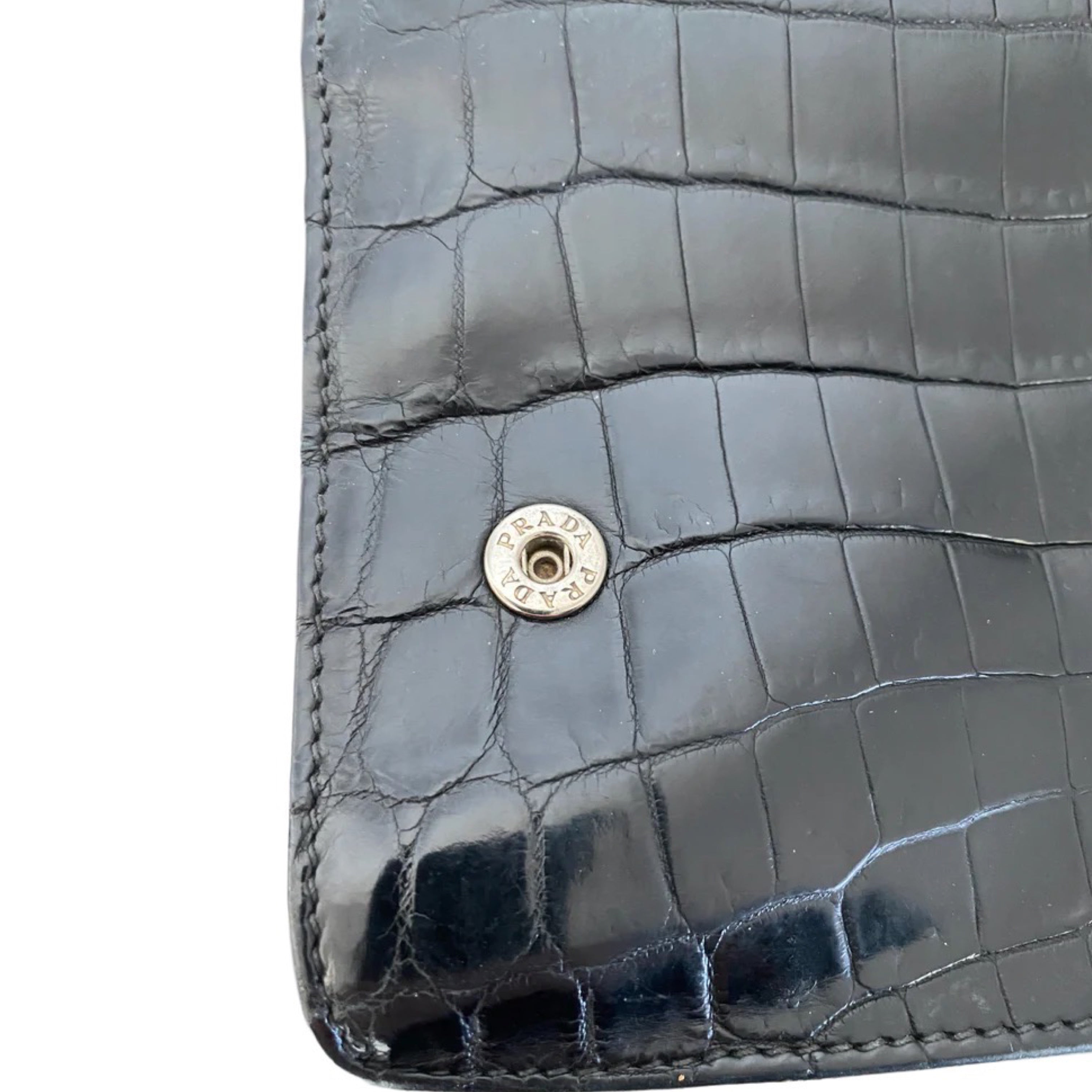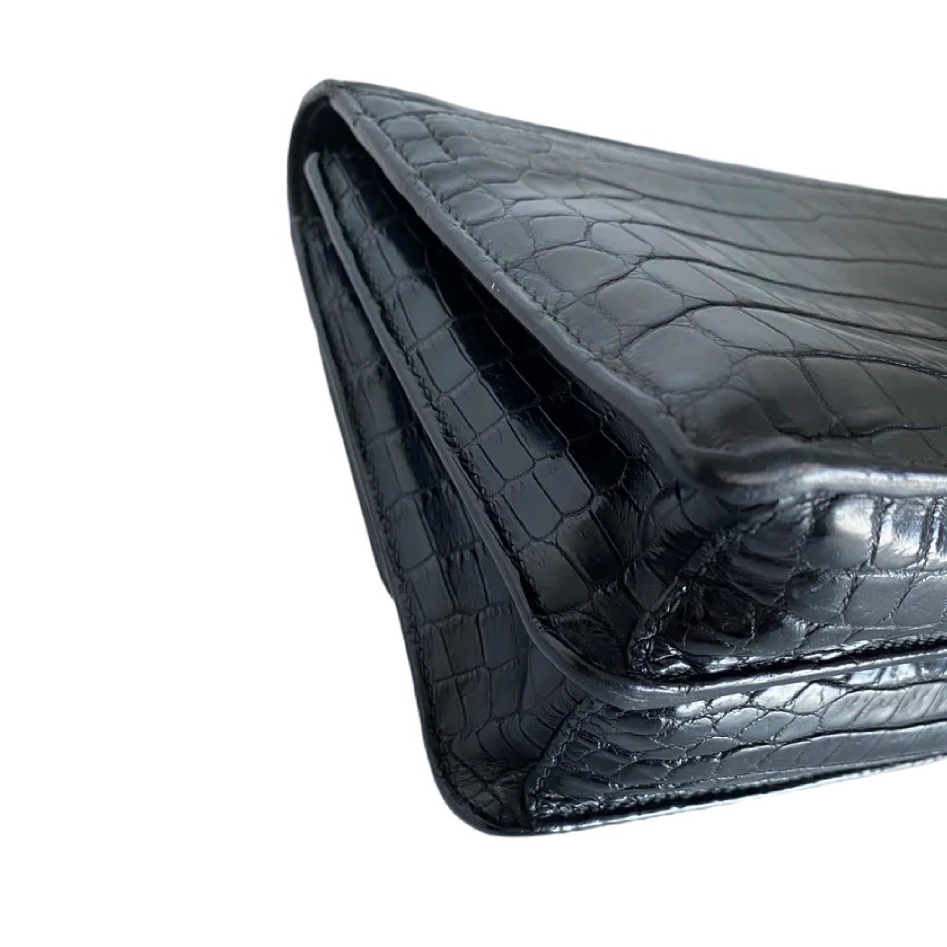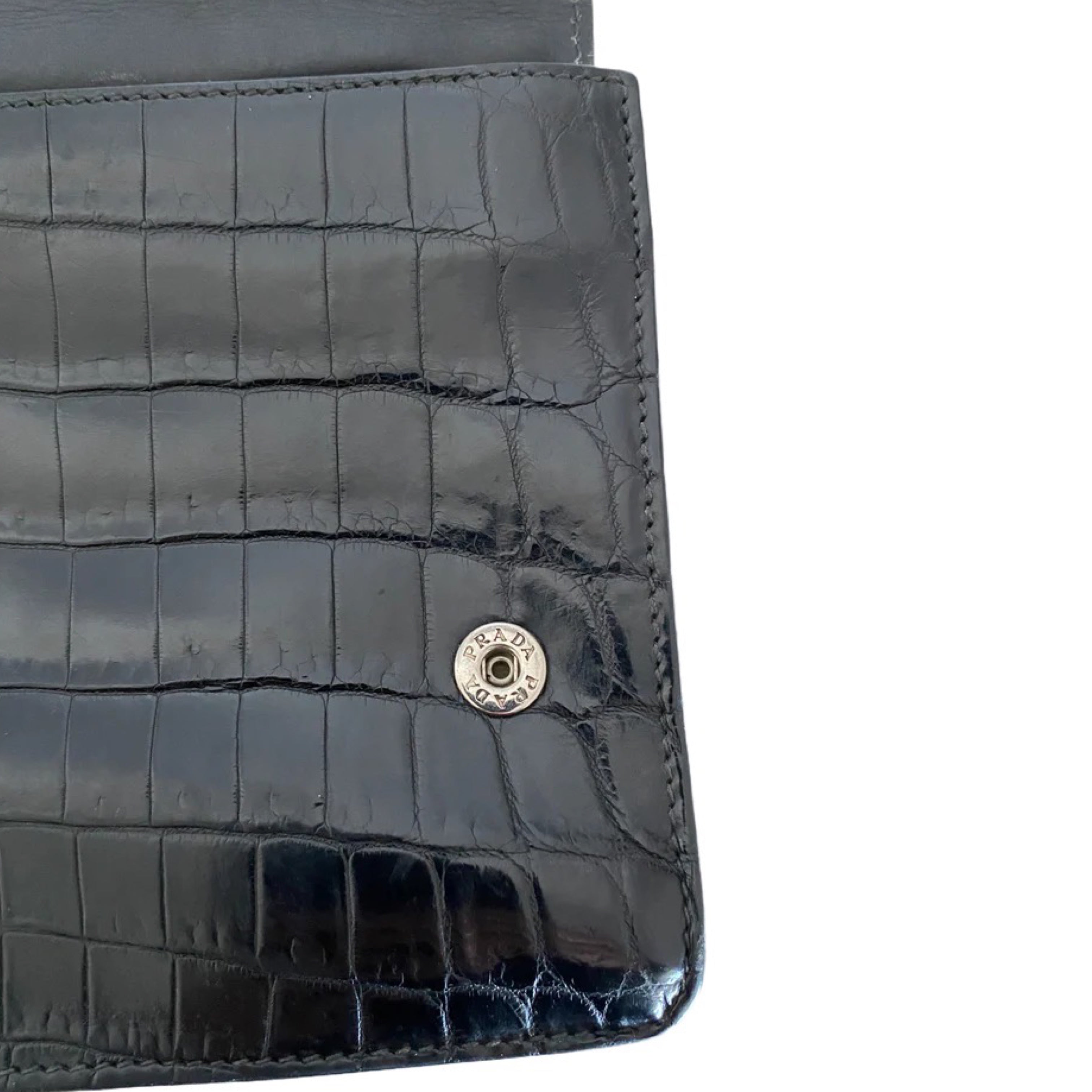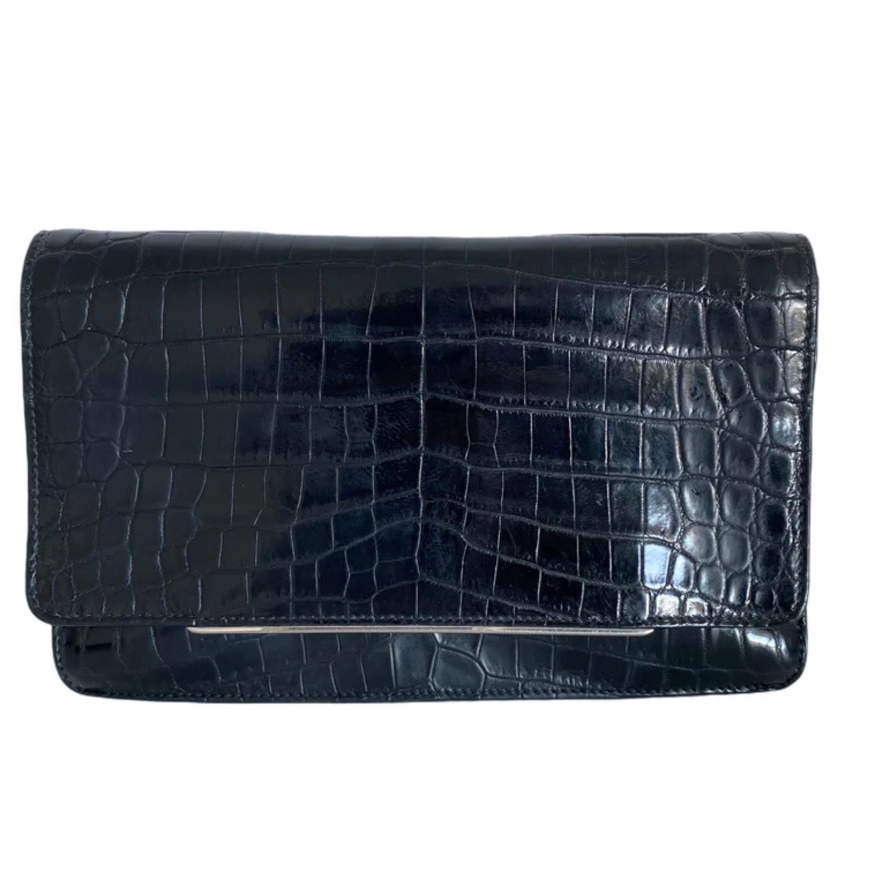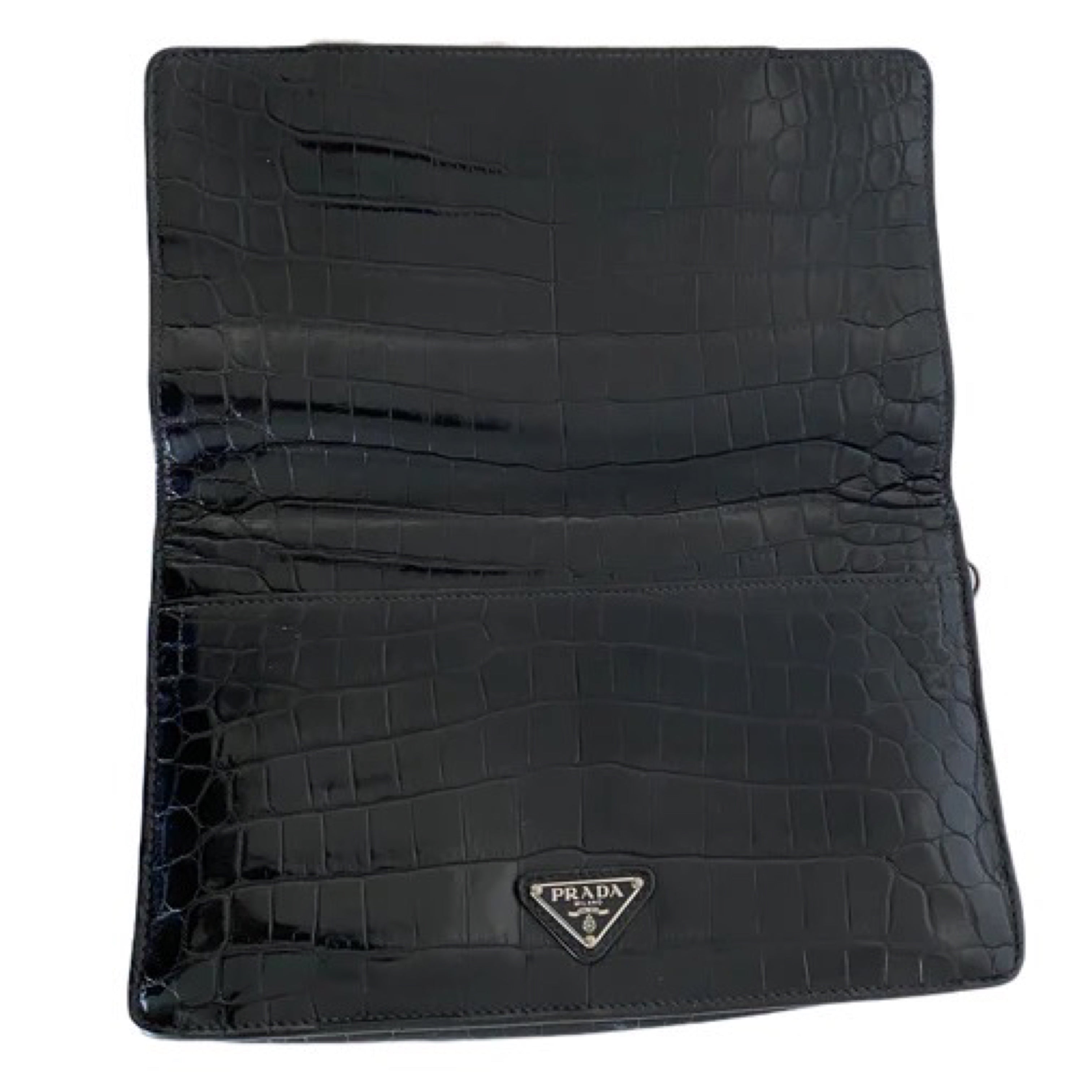 Beautiful clutch from the designer label Prada. The clutch is made of genuine crocodile leather. The leather shows some signs of wear but is very well maintained. The leather has some imperfections from holding the bag, but is overall in perfect condition. Unfortunately the clutch strap is no longer present. The bag is great to wear for a chic outfit, but also as an eye-catcher with your everyday outfit.