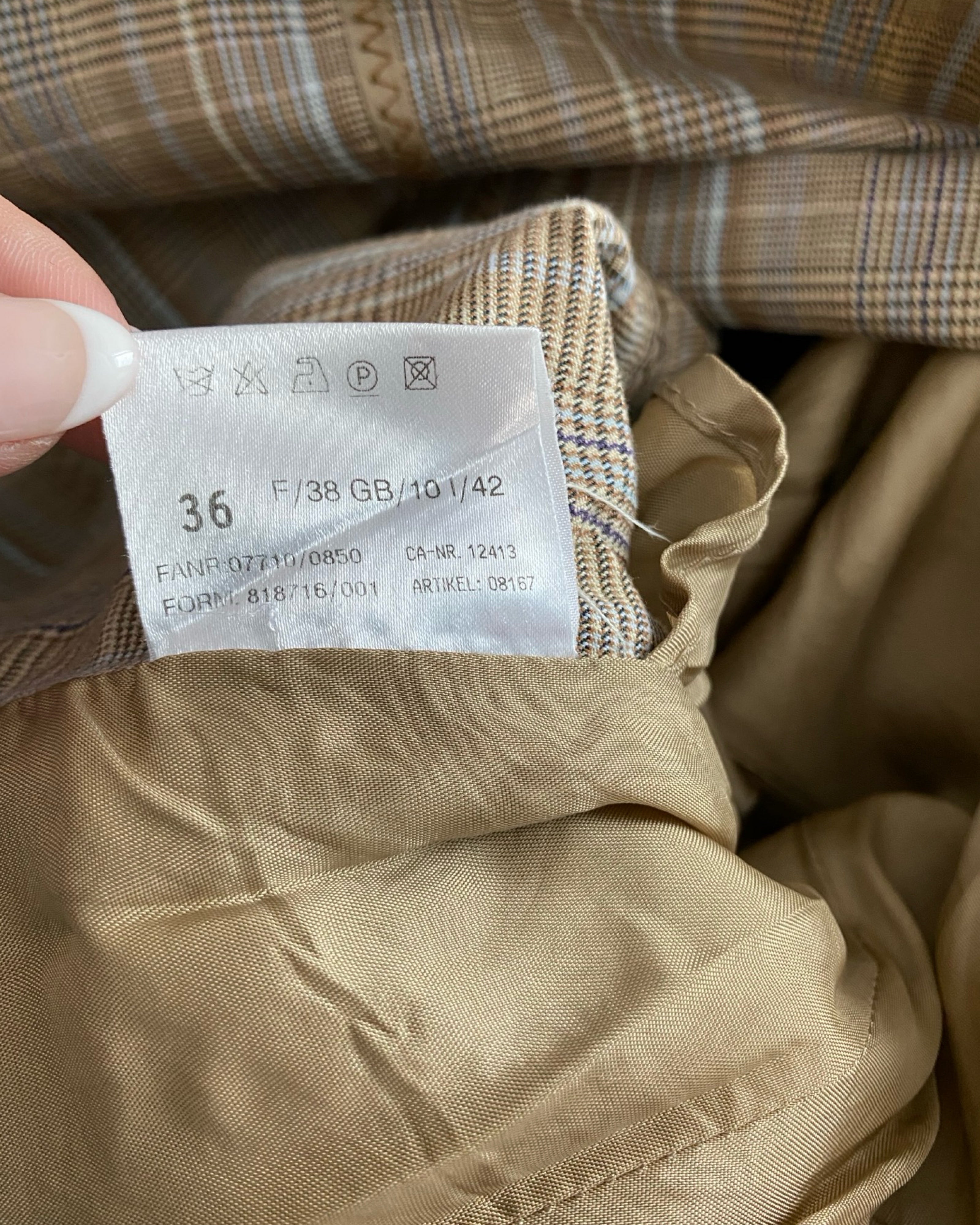 Add a touch of elegance to your wardrobe with this Basler blazer. Crafted from cotton, linen and viscose lining, it offers a comfortable and stylish fit. The fun striped pattern allows for playful pattern-mixing, while the cheerful light beige with hints of blue is sure to elevate your outfit. Available in size S.