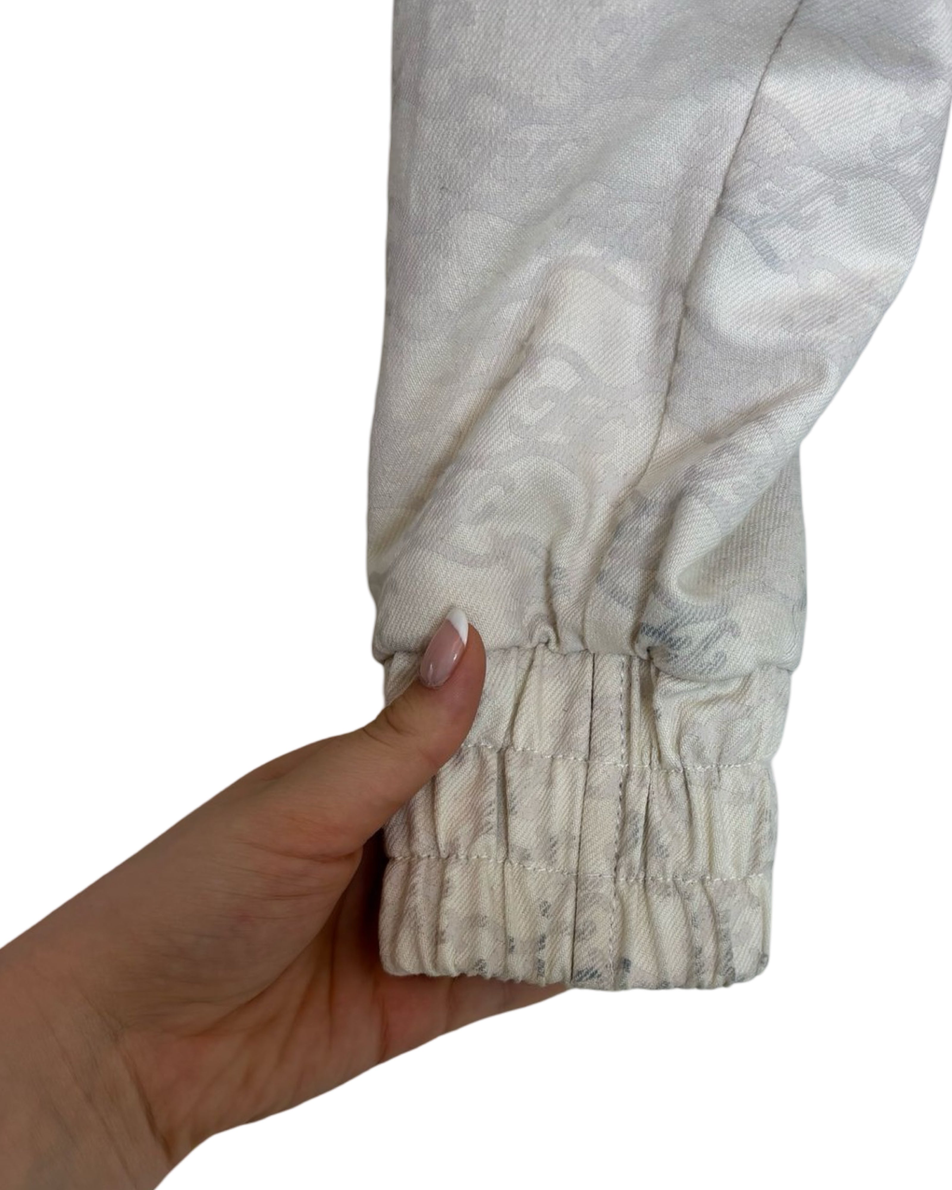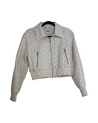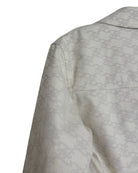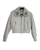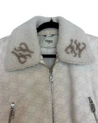 This Fendi jacket exudes sophistication with its overall logo print and beige shades. Made of soft cotton and goatfur, it features an adjustable collar, vertical welt pockets, and stretch rib edges for a comfortable fit. The zipper front fastening and stretchy elastic band add convenience and style.