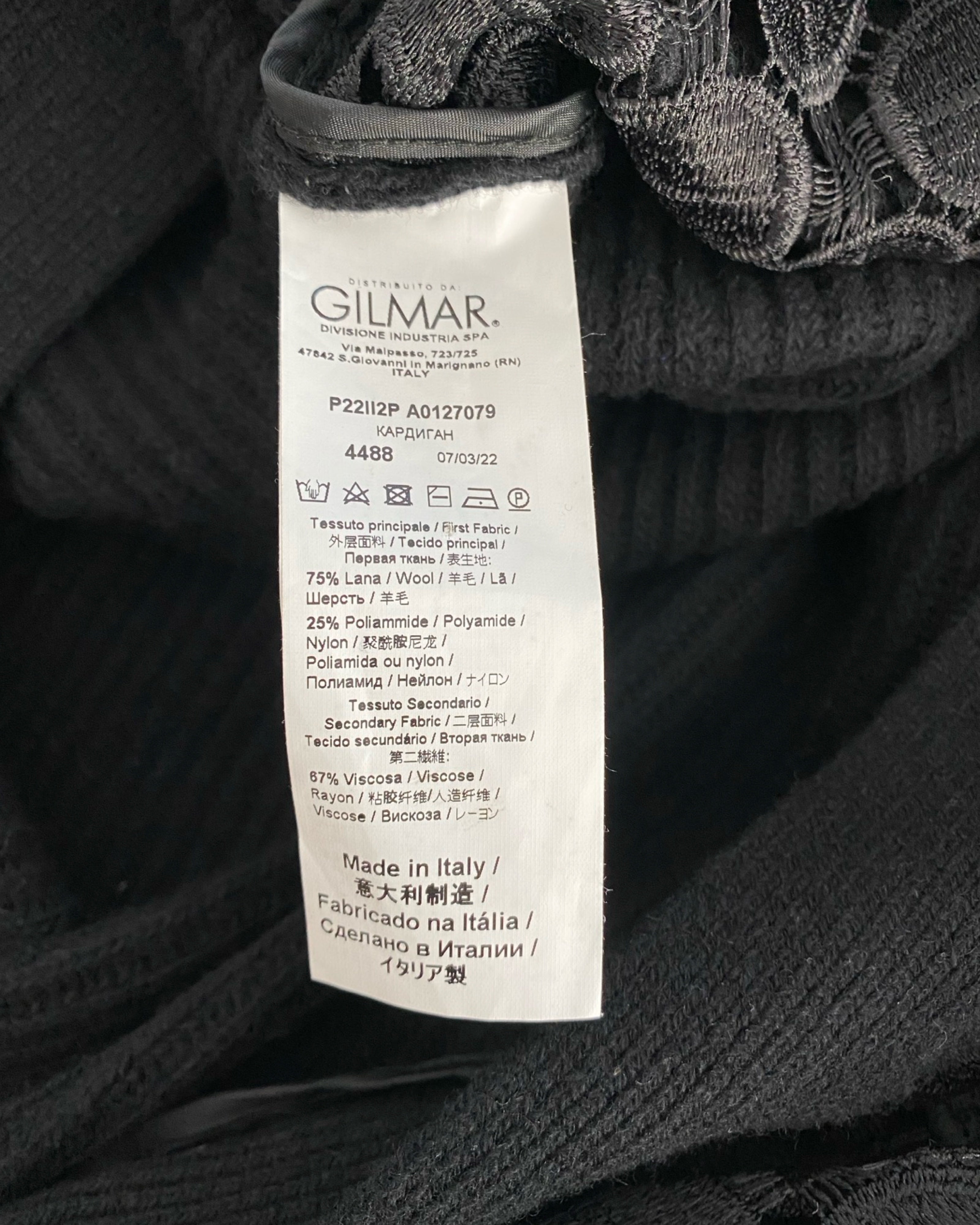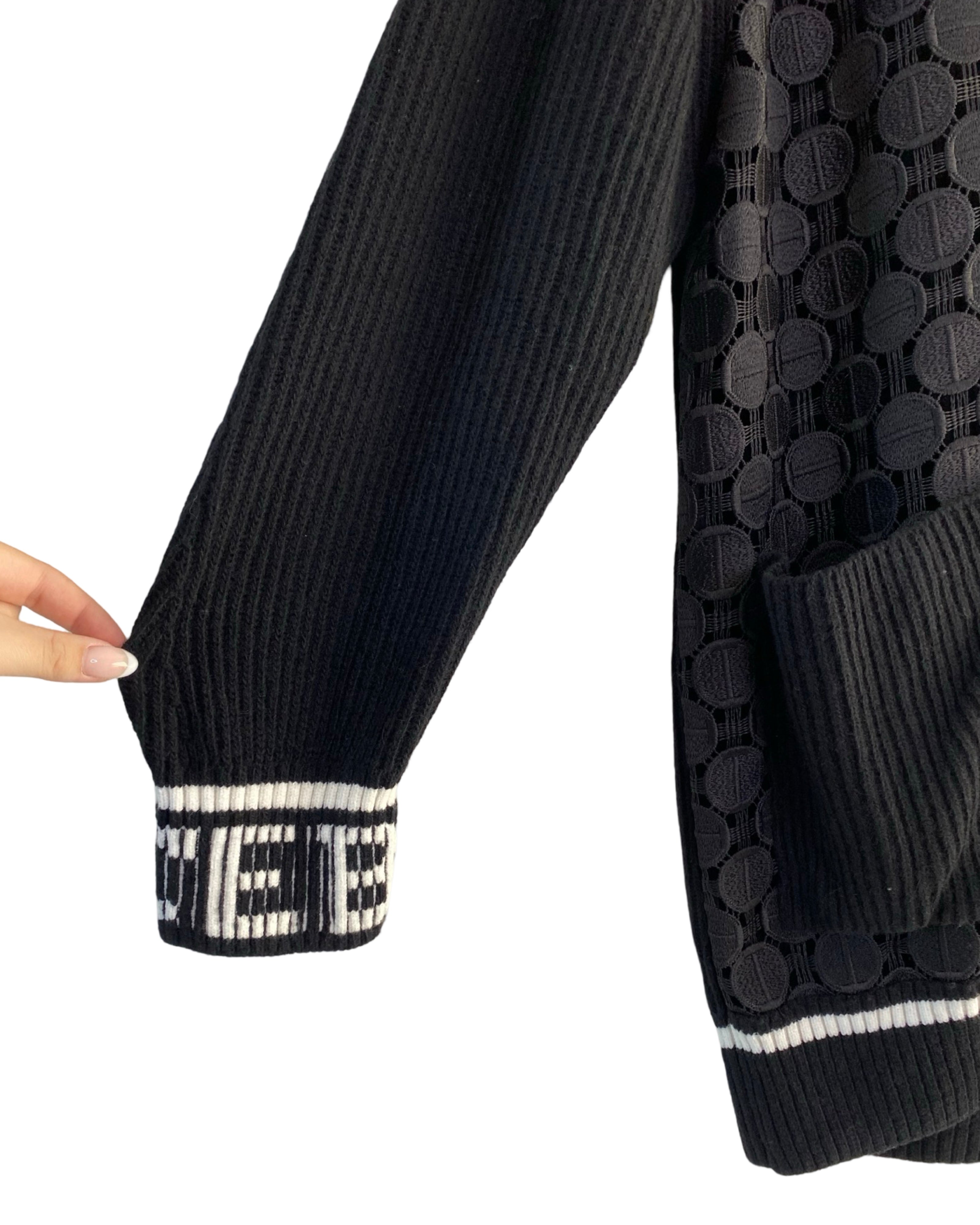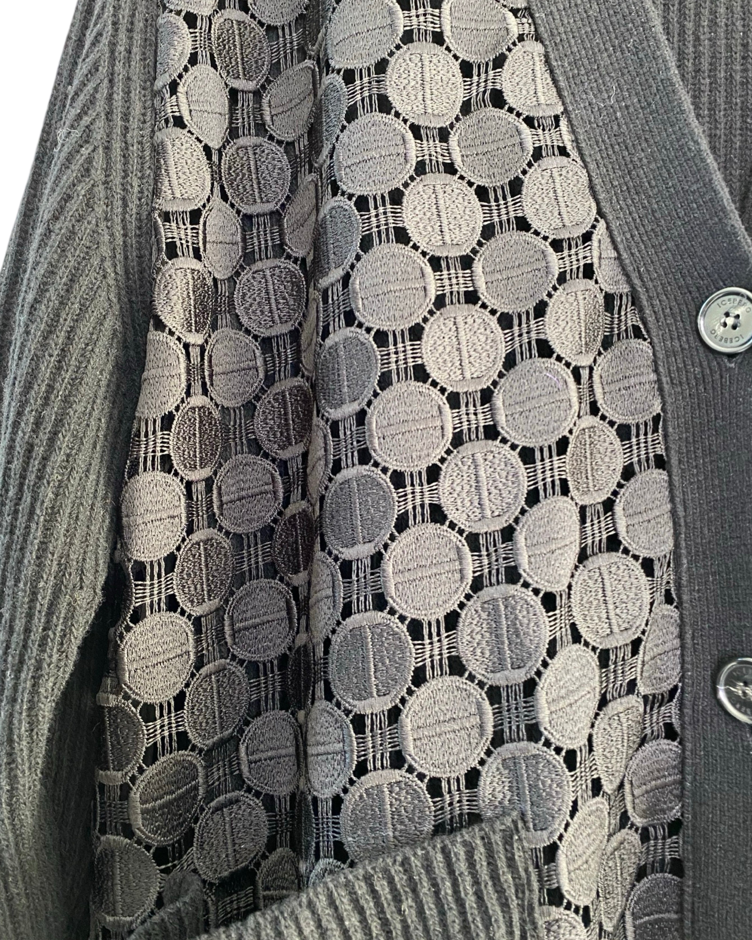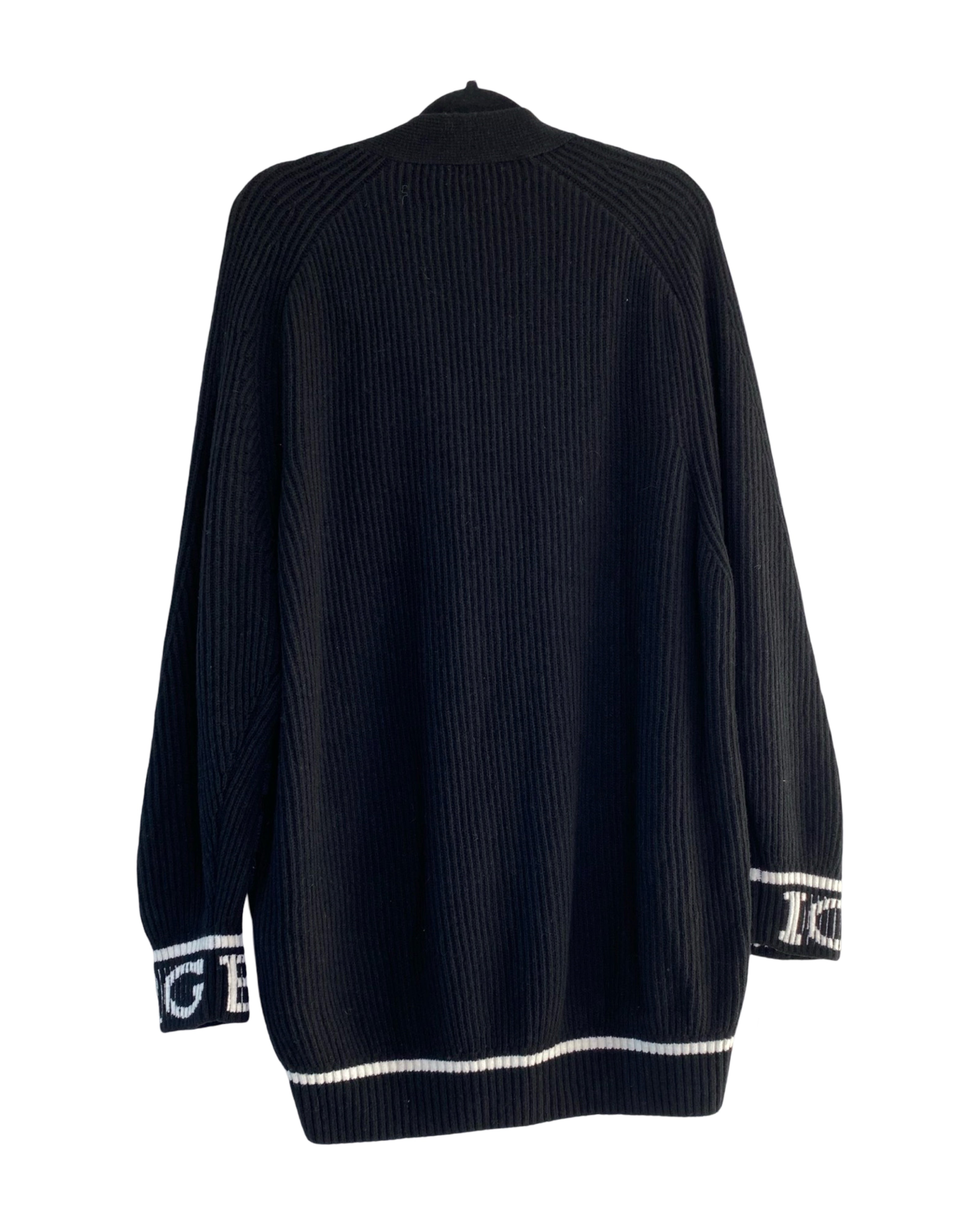 Dropped cardigan in mouliné wool, a distinctive and refined garment. The cob stitch ribbing, alternating with open embroidery pattern, creates a unique and sophisticated texture, adding depth and visual interest to the design. This cardigan is personalized with an embroidered Iceberg logo patch in tone colour, which offers a touch of discreet and distinctive elegance. Ideal for those seeking comfort and style, this garment is perfect for any occasion, from casual to formal. Available in size S.