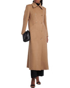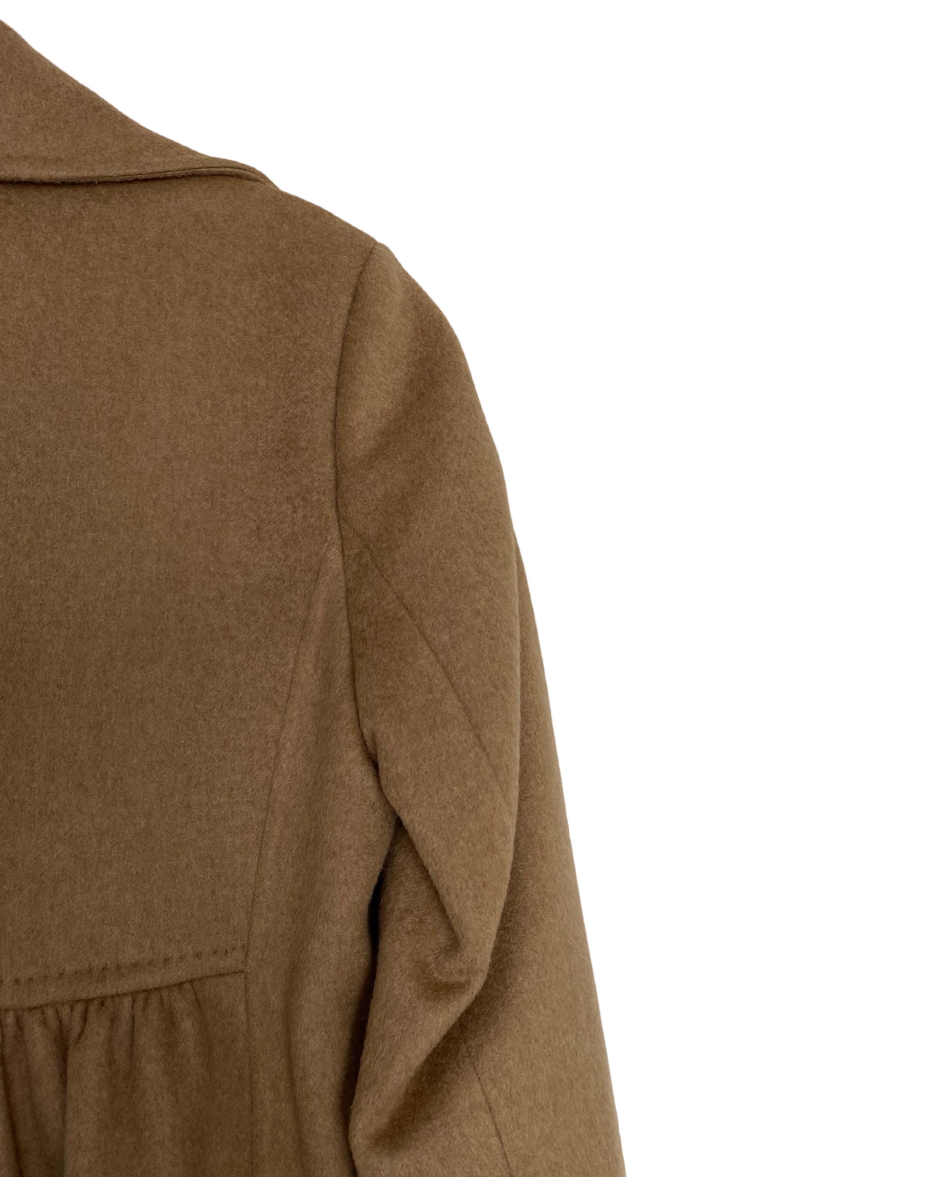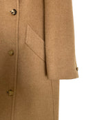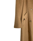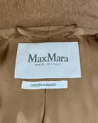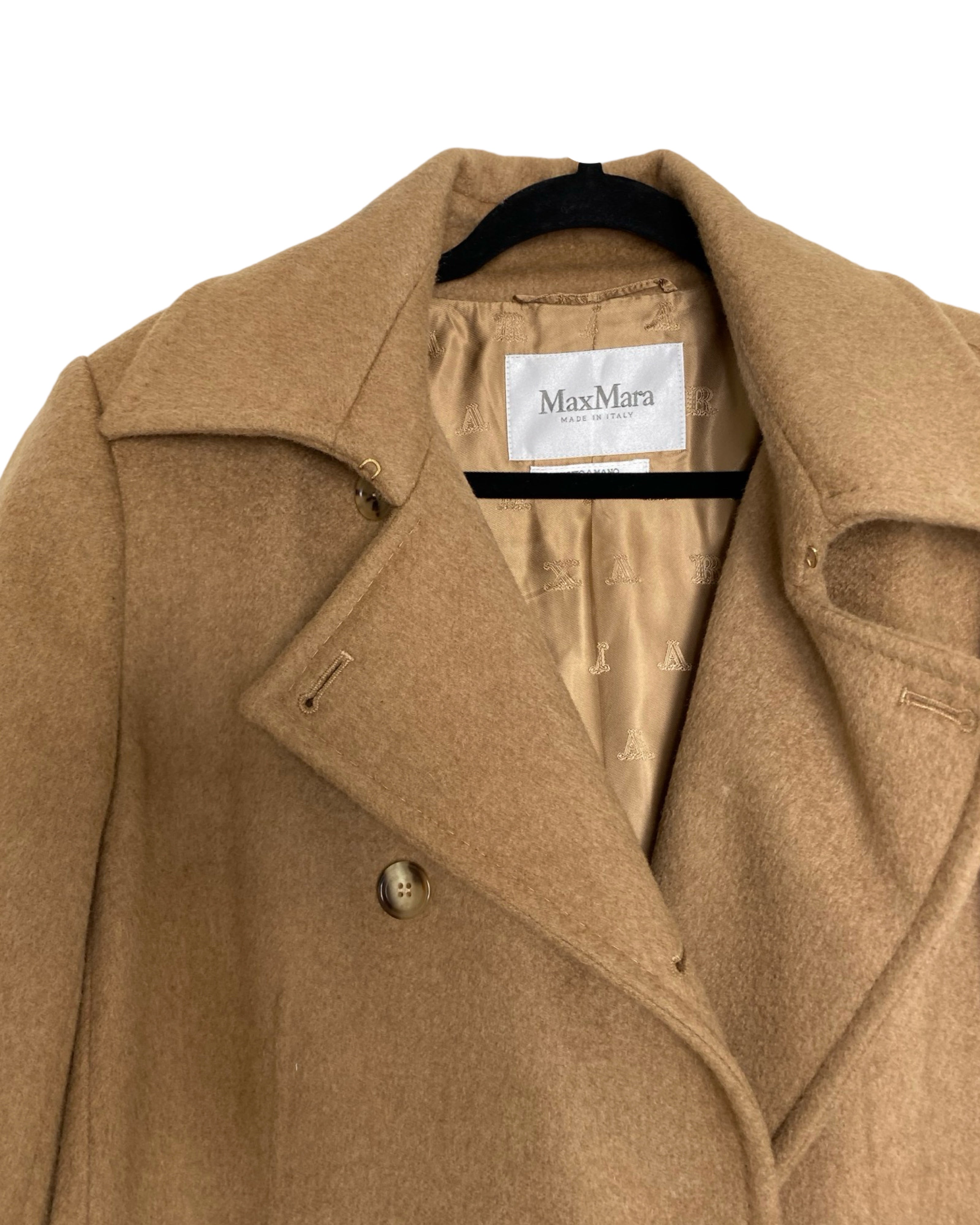 Indulge in luxury and warmth with the Max Mara coat. Fashioned from soft camel hair, this hand-made coat features a double-breasted buttoned front, side slit pockets, and shoulder pad inserts for a comfortable and chic fit. With its jewel button detail and loose fit, it's the perfect addition to elevate any outfit.