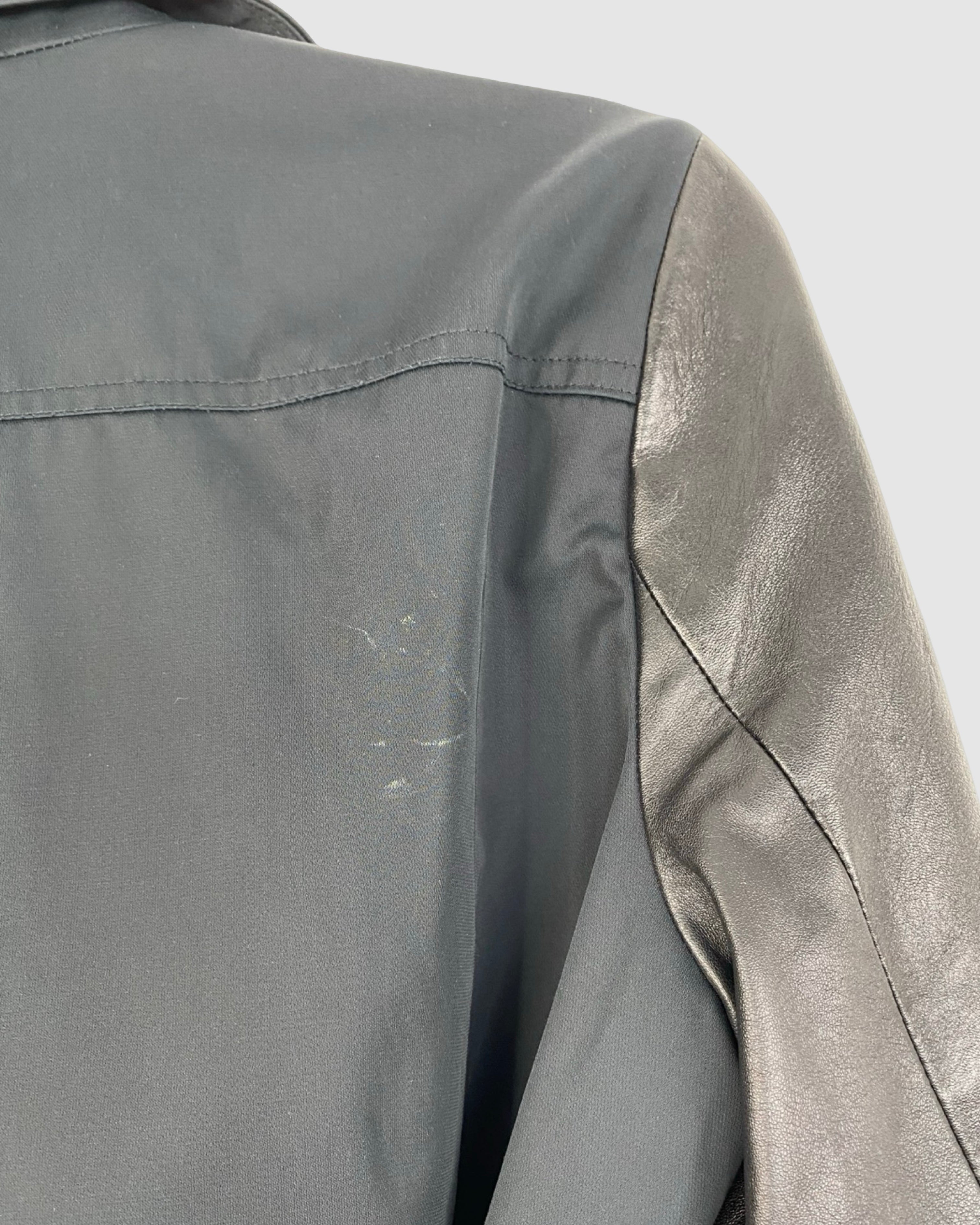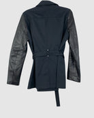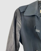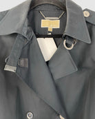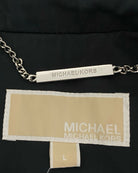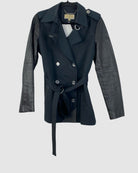 A timeless classic with a modern twist, this Michael Kors black trench coat features luxurious leather sleeves that add a bold, contemporary edge. Crafted from a premium polyester and cotton blend, it combines sophistication with effortless style — perfect for both day and evening wear. Size: L.