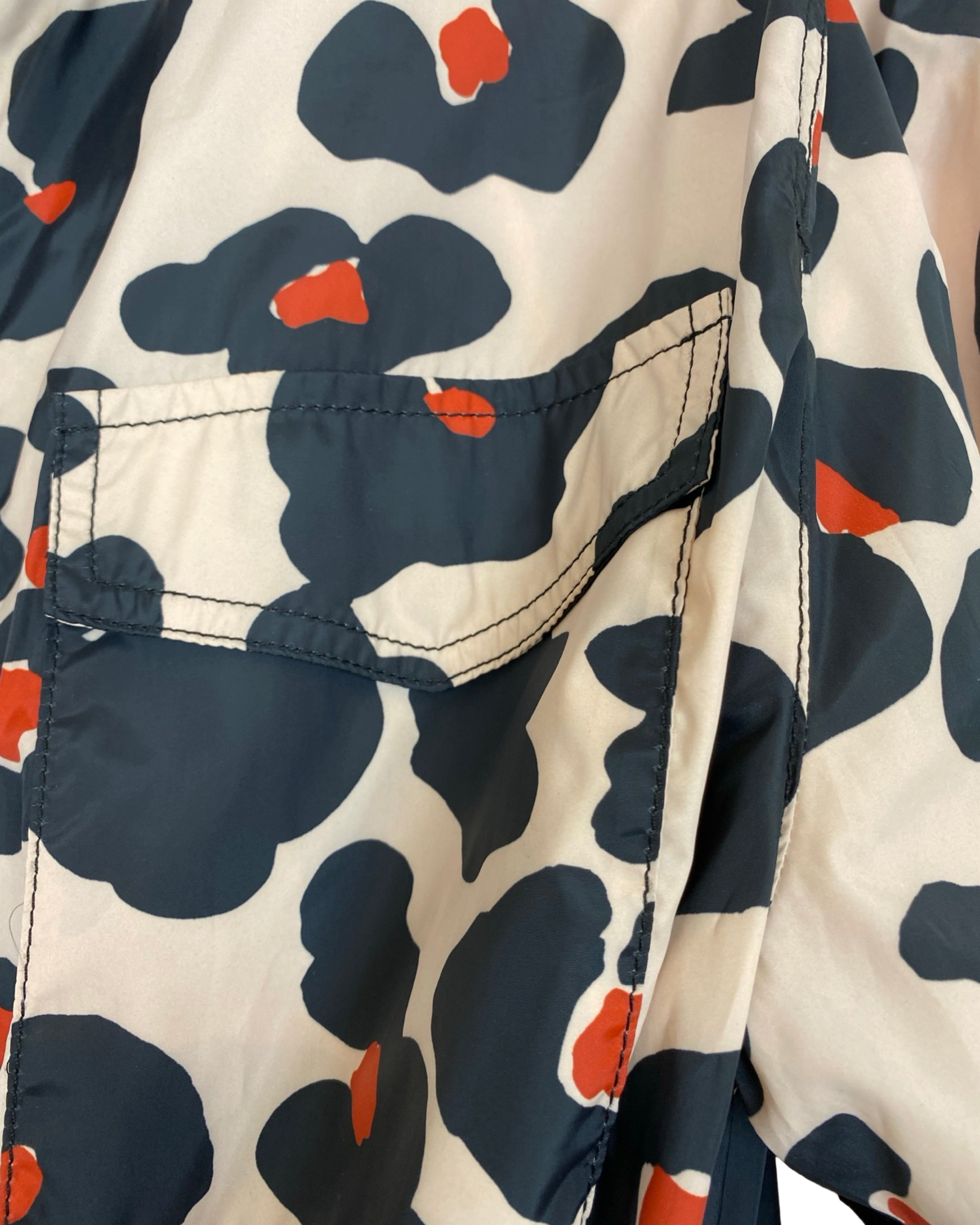 This Sonia Rykiel raincoat makes a bold statement with its playful pink base and black leopard-inspired print. Designed with the brand’s signature Parisian flair, it blends functionality with fashion, offering a lightweight yet eye-catching layer for rainy days. Crafted from a polyester-cotton blend, this size XL coat measures 85 cm in full length, 50 cm armpit to armpit, and 58 cm in sleeve length—ensuring you stay stylish even in the stormiest weather.