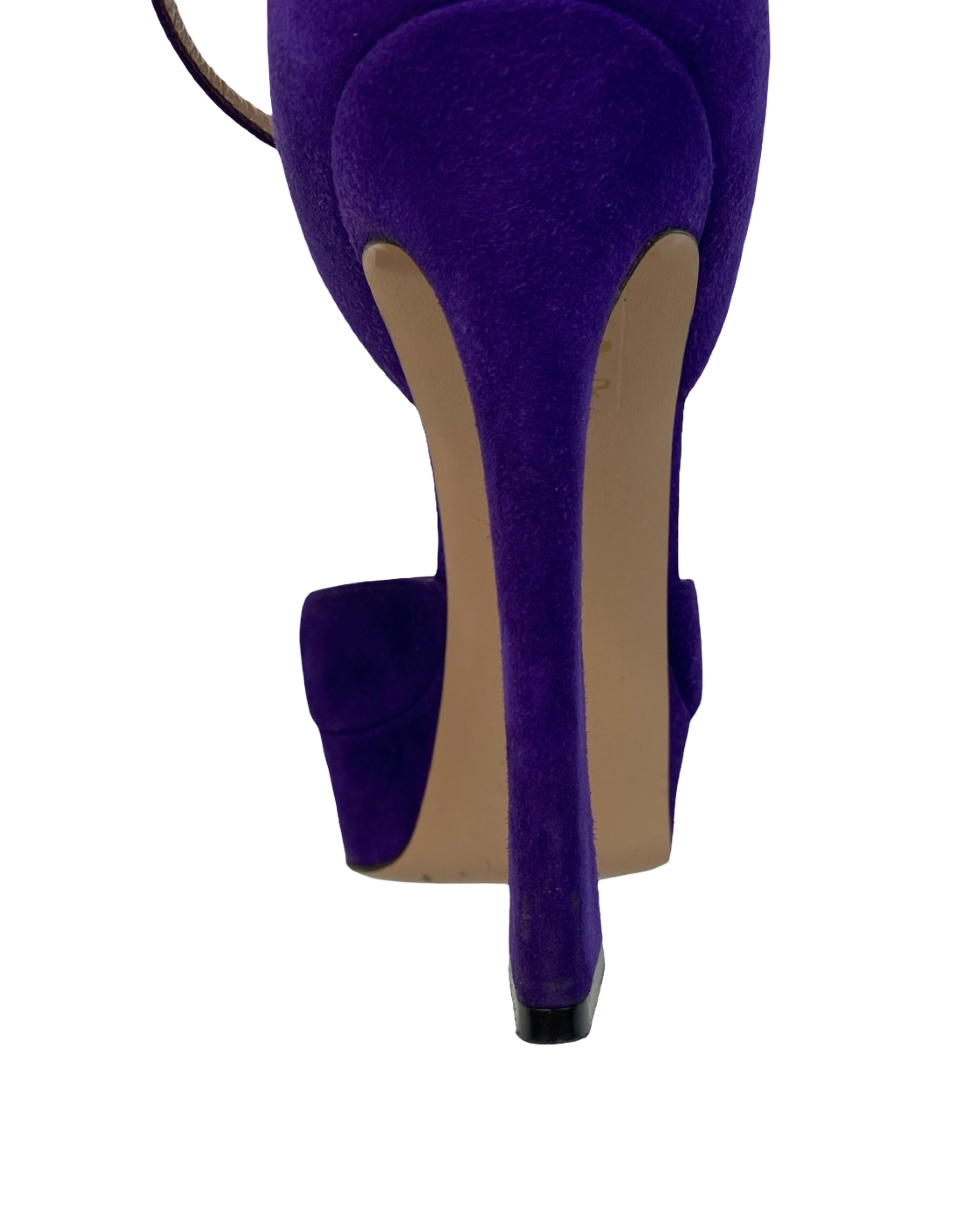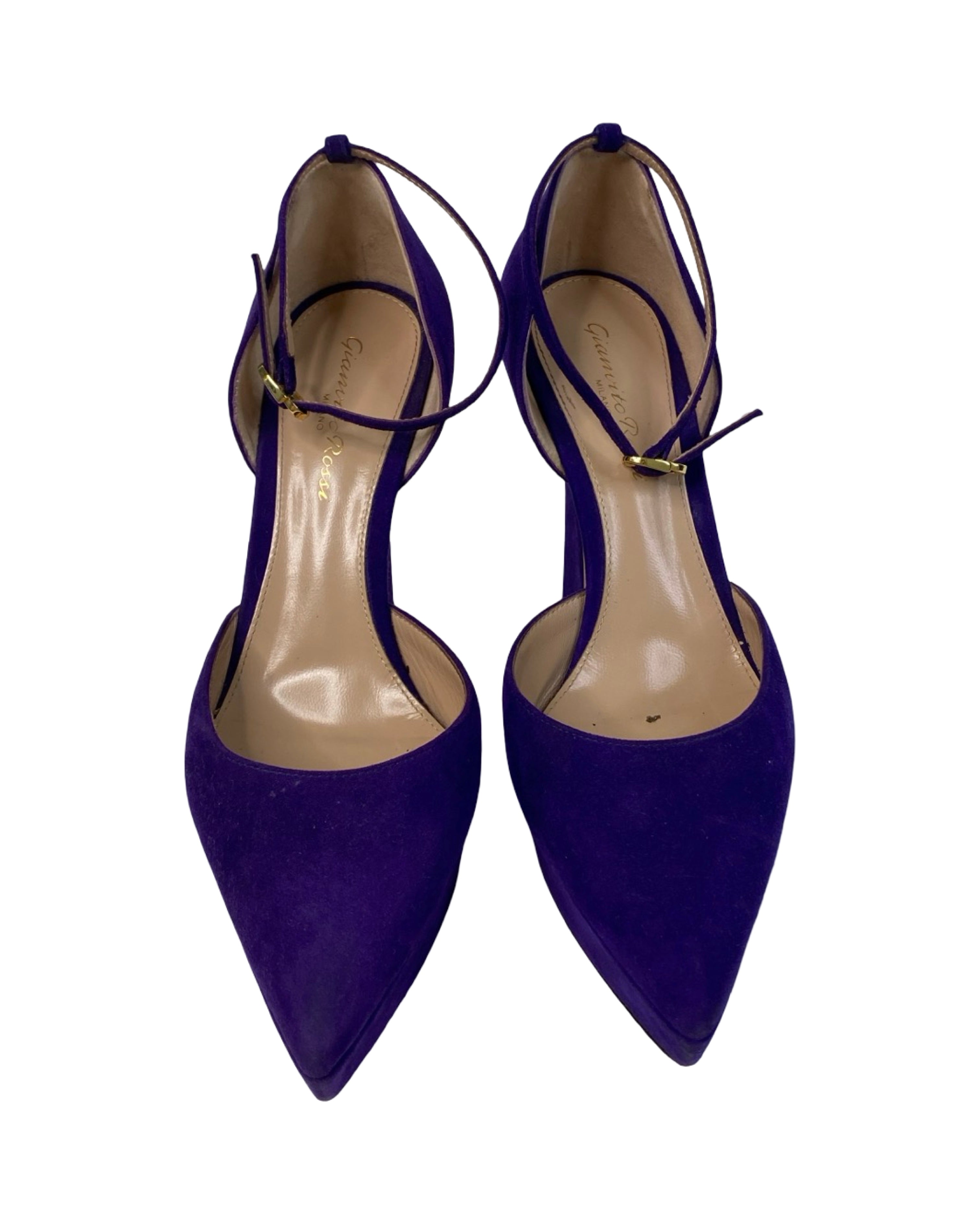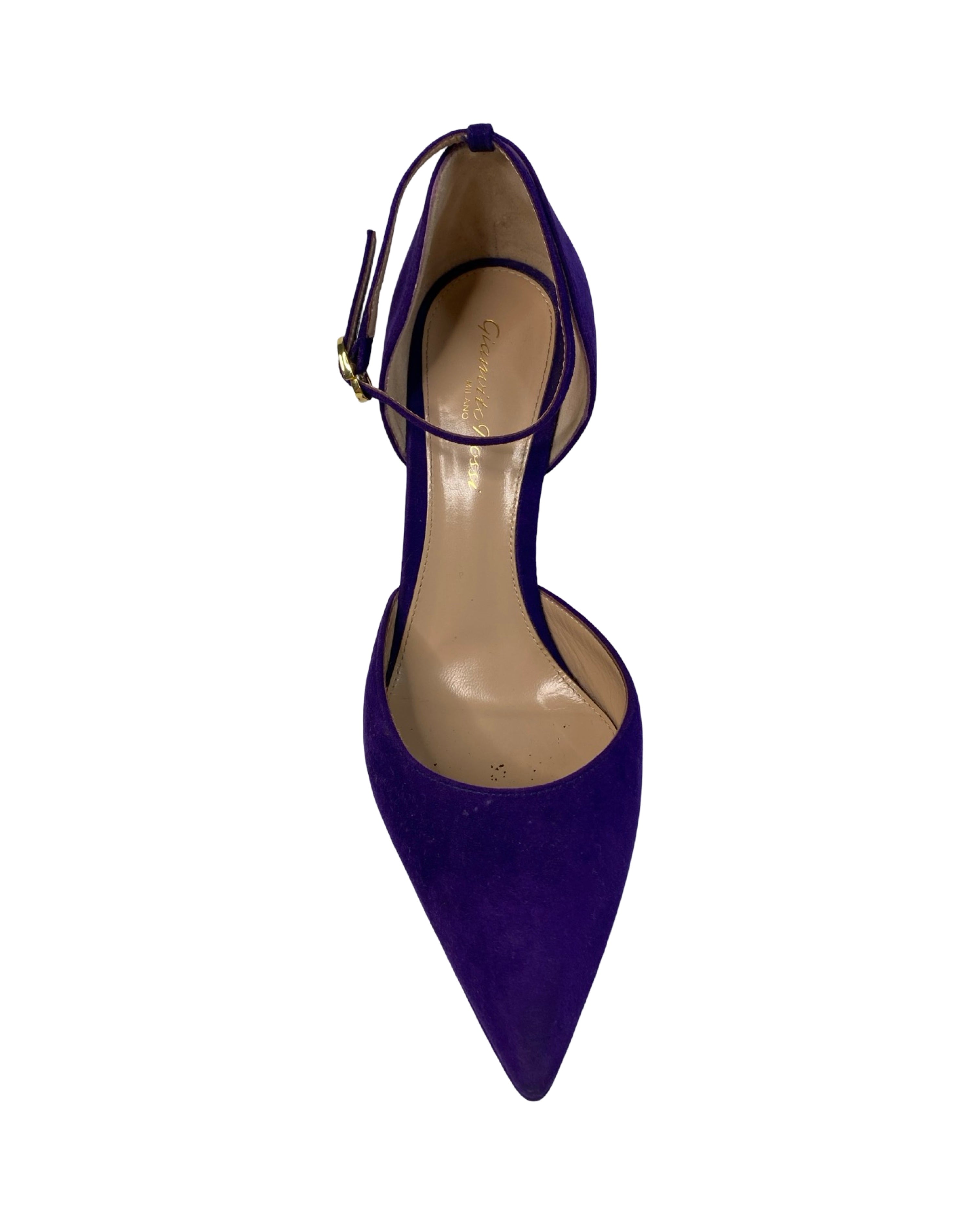 These Gianvito Rossi pumps combine timeless elegance with modern design. Crafted from soft purple calf suede, they feature a sleek pointed toe and an angled 85mm high heel that adds a contemporary edge. Perfect for elevating any outfit, these size 36 heels offer both style and sophistication.
