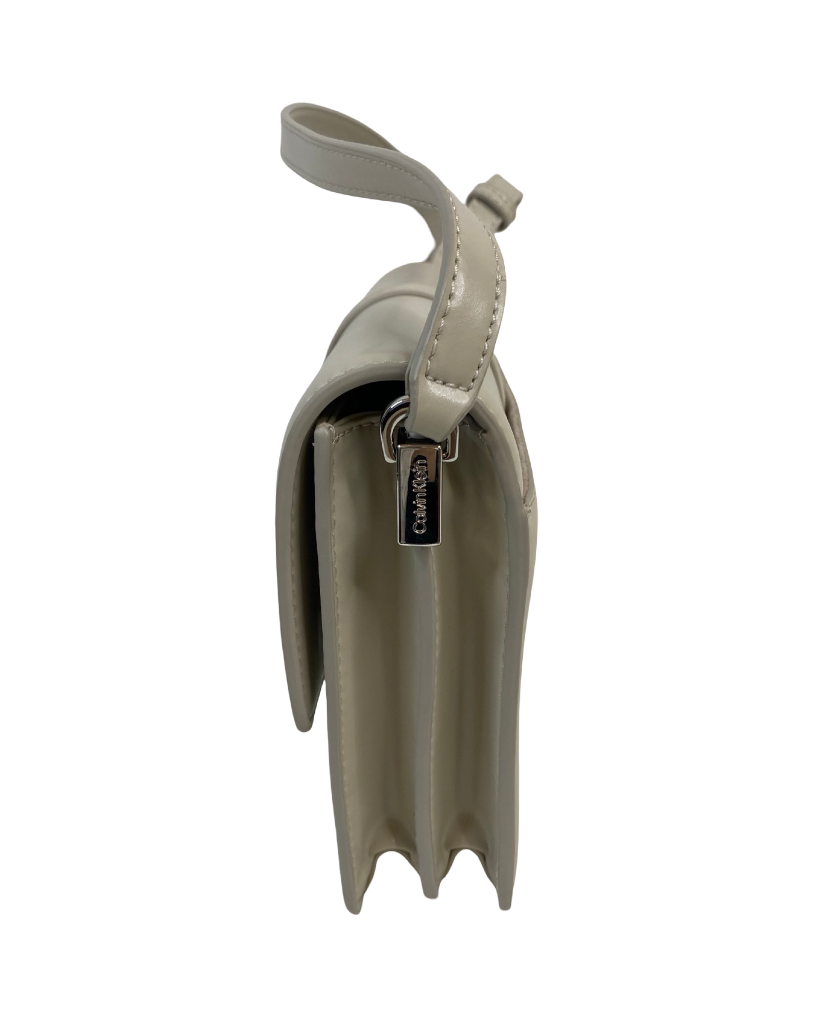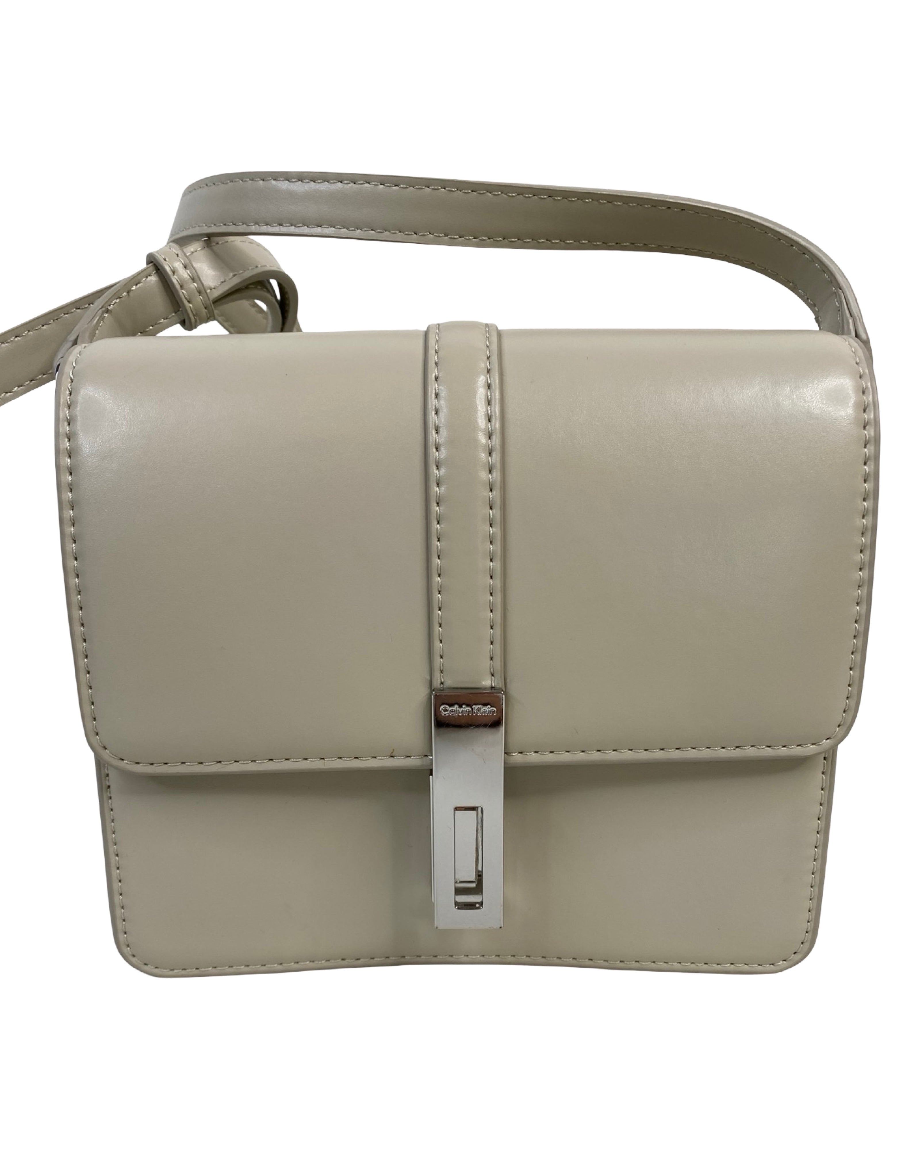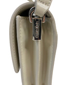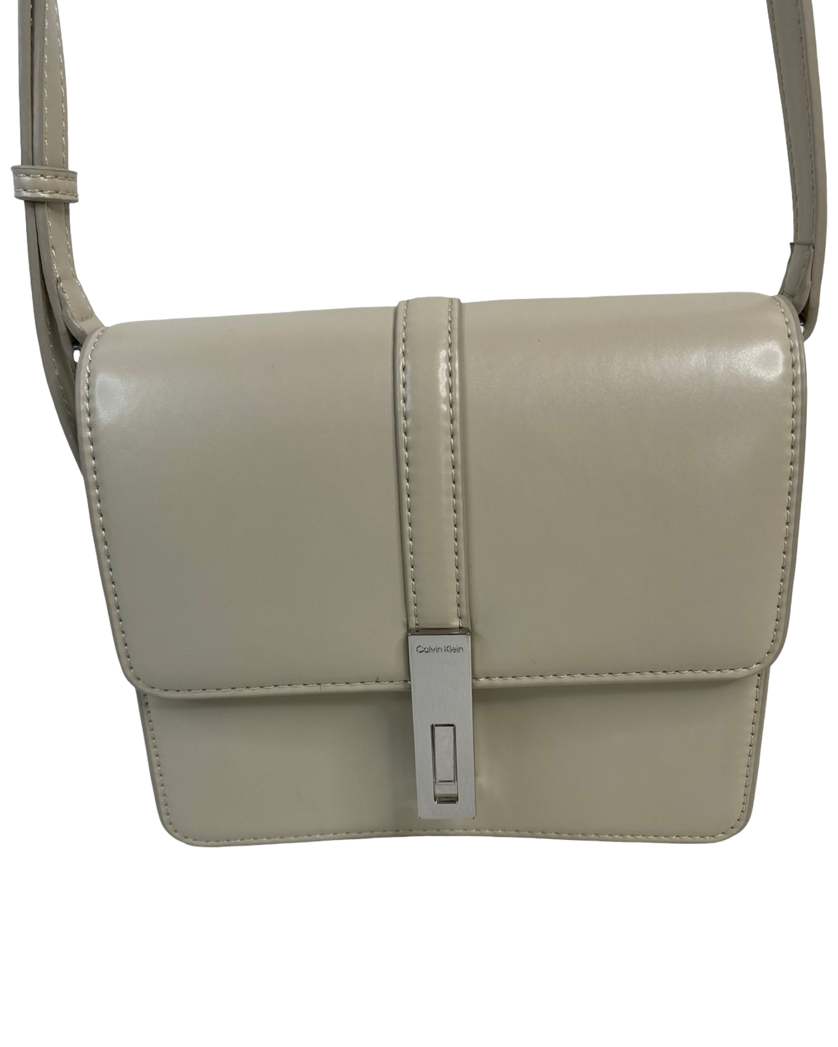 The Calvin Klein Archive Crossbody Bag combines timeless design with practical features. Crafted from durable polyester in a soft creme color, it offers two main compartments and a convenient side pocket for organized storage. Silver hardware accents and an adjustable shoulder strap enhance both style and comfort. This elegant bag comes with its original dustbag, making it a perfect accessory for everyday.