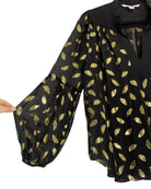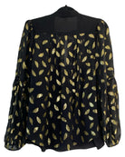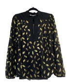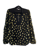 Add a touch of elegance to your wardrobe with this Diane von Furstenberg top. Crafted from polyester and spandex, it offers a comfortable and stylish fit. The gold accents allow for playful pattern-mixing, while the black base is sure to elevate your outfit. Available in size L.