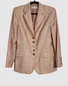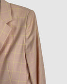 Bright and eye-catching, this Escada pink blazer features subtle yellow detailed stripes that add a fresh, modern twist. Crafted from luxurious cashmere, it blends bold colour with a polished, tailored look — perfect for elevating any outfit. Size: S/M.