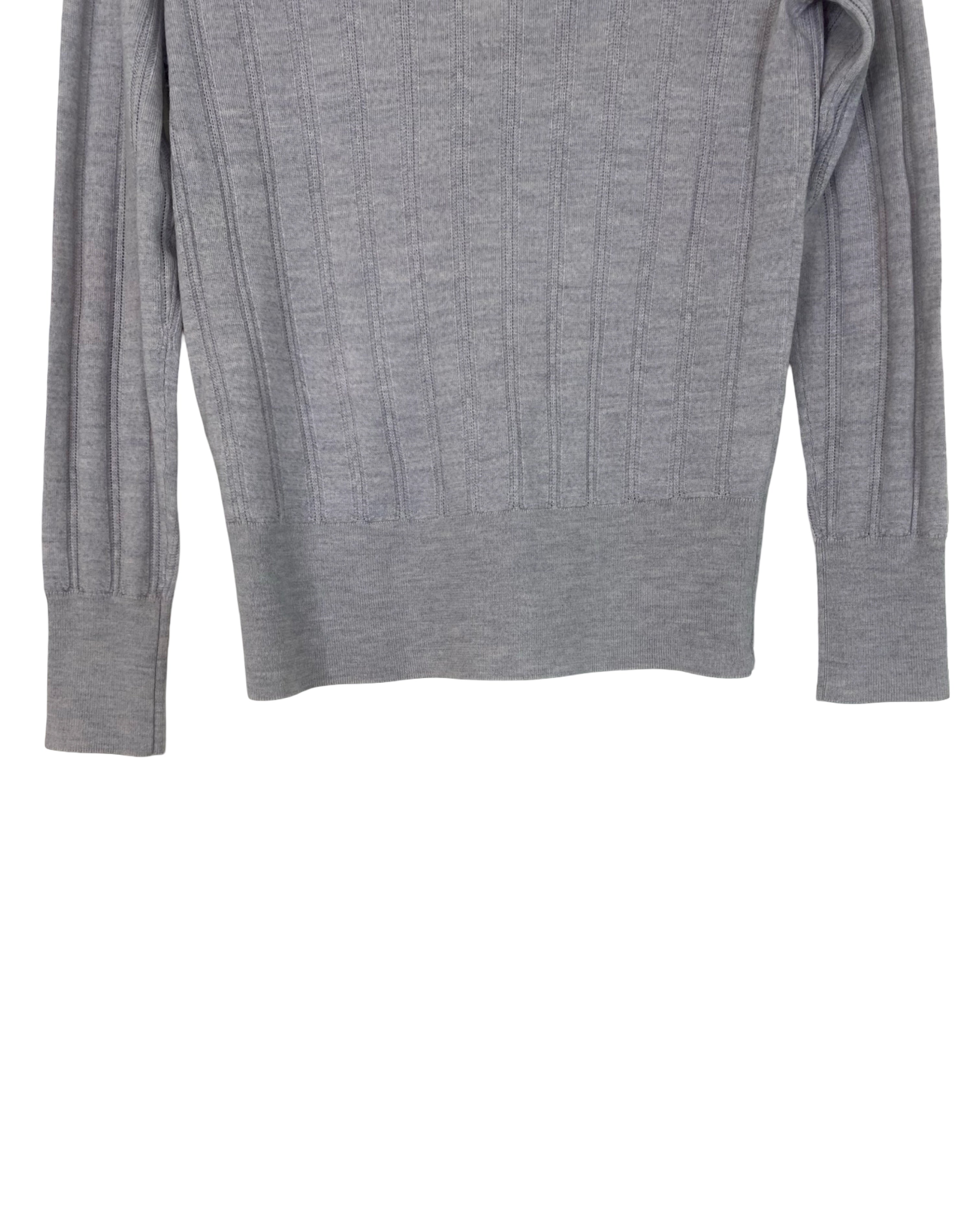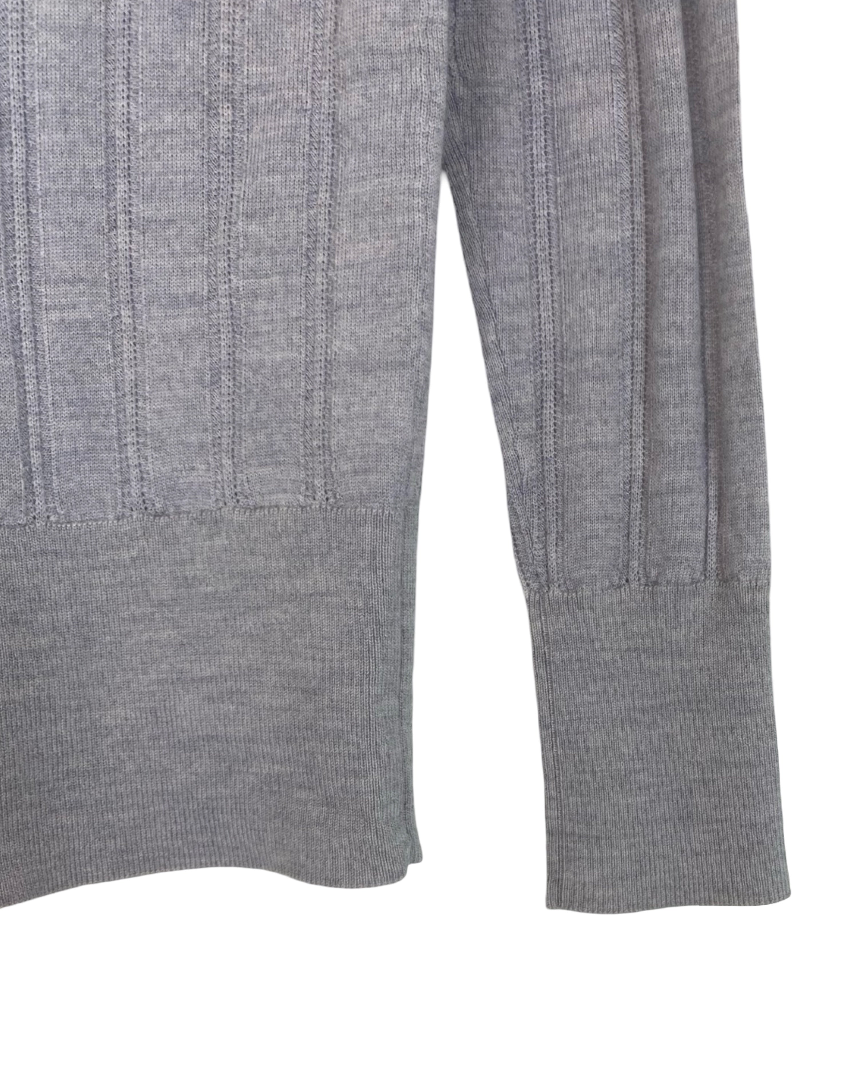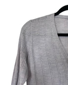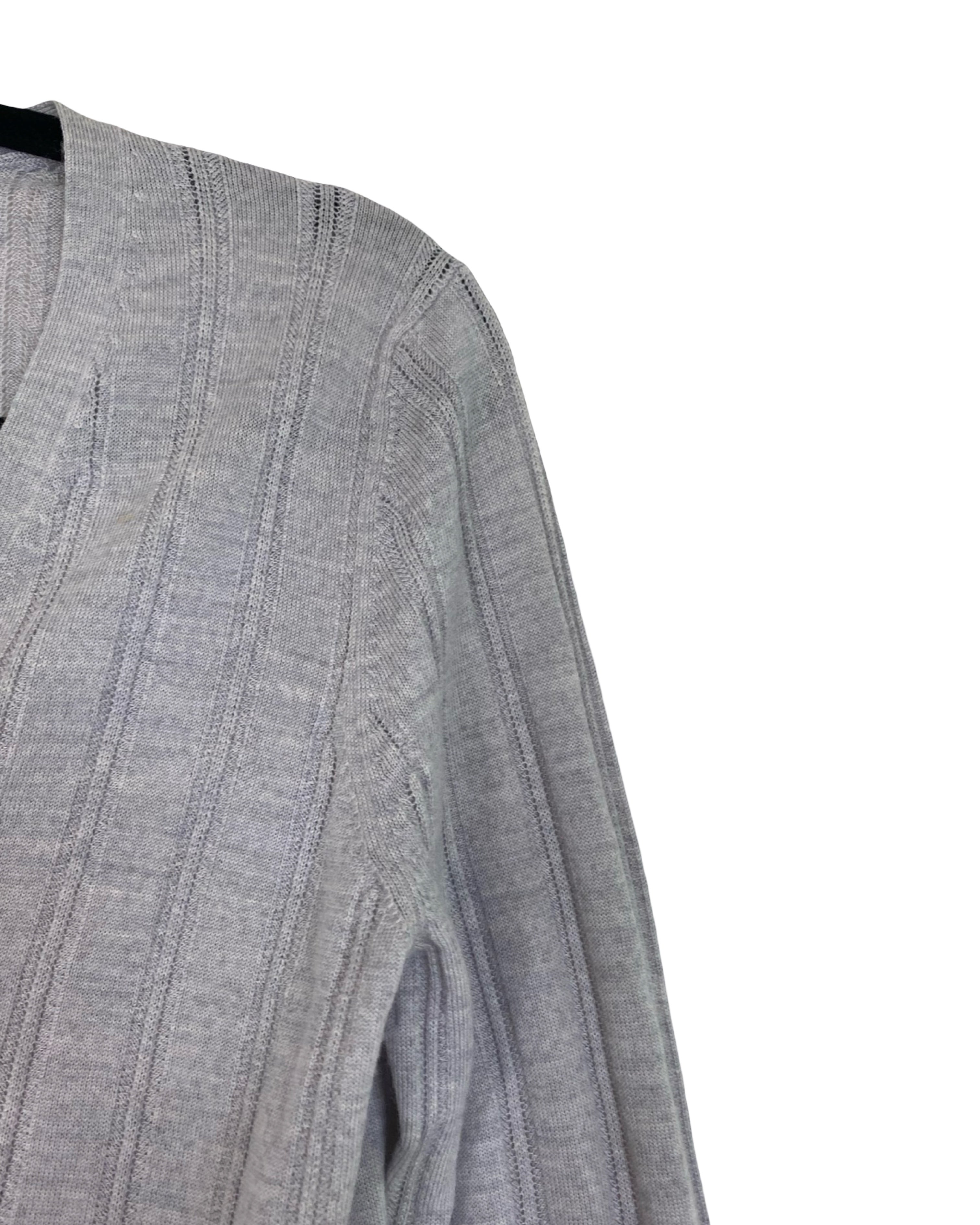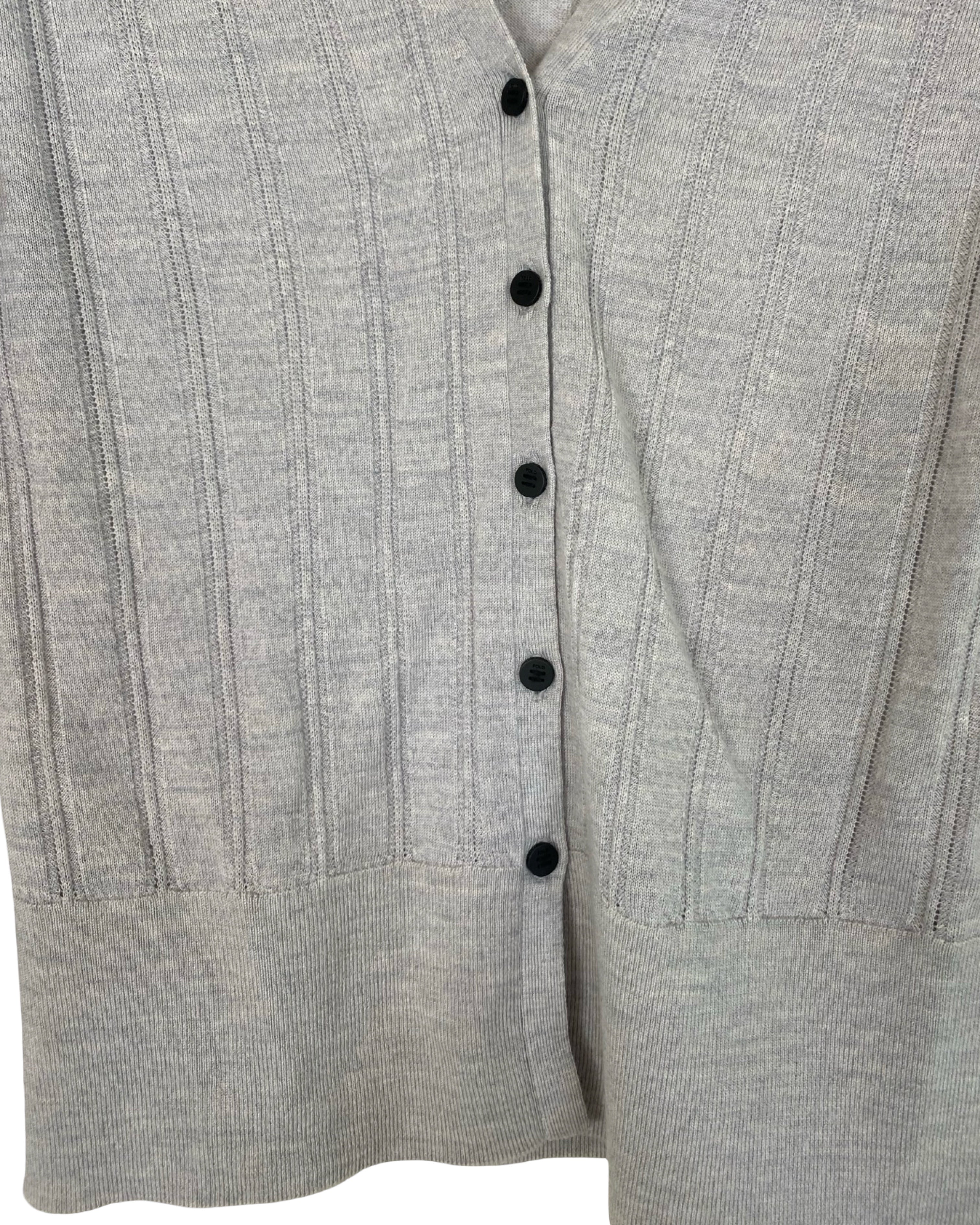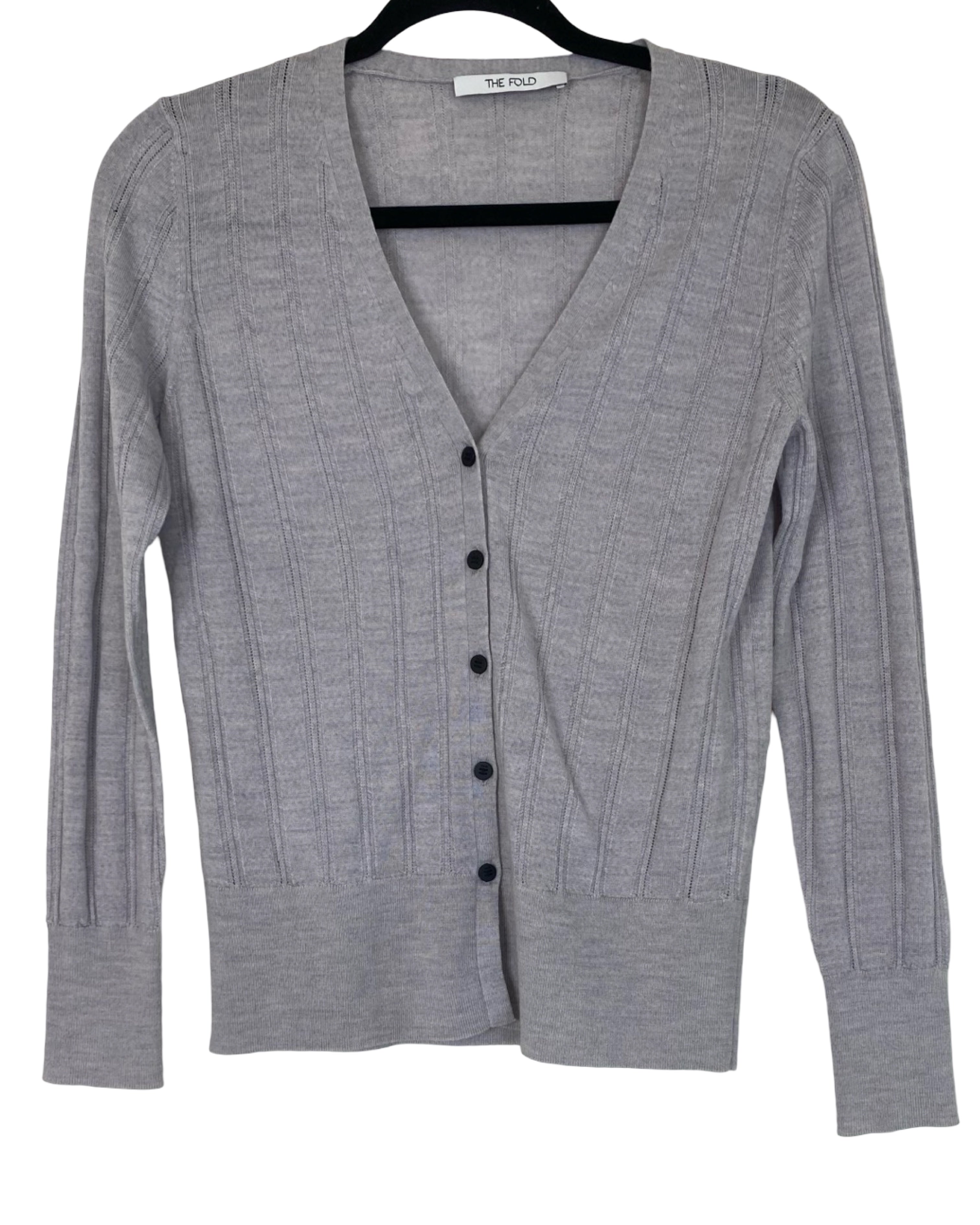 The Fold cardigan in grey offers a timeless blend of elegance and comfort. Crafted with the brand’s signature attention to detail, it features a soft, refined texture and a versatile design that drapes beautifully. Perfect for layering, this classic piece transitions effortlessly from work to weekend wear. Made from a luxurious blend of cashmere and wool in a soft grey hue, the cardigan measures 60 cm in full length, 42 cm from armpit to armpit, and 60 cm in sleeve length.