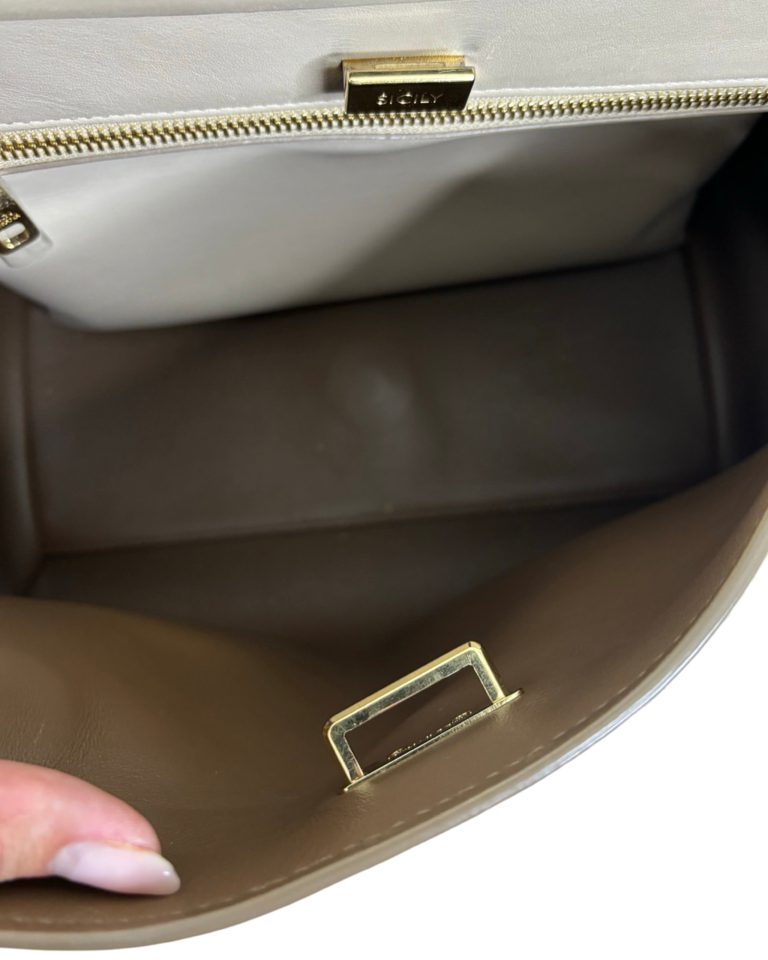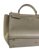 Elevate any outfit with this elegant Dolce & Gabbana Sicily 62 medium handbag. Crafted from luxurious calfskin, it features multiple compartments, a top handle, and a front logo tag. The nappa leather interior adds a touch of sophistication. In good condition with minor signs of wear, strap missing.