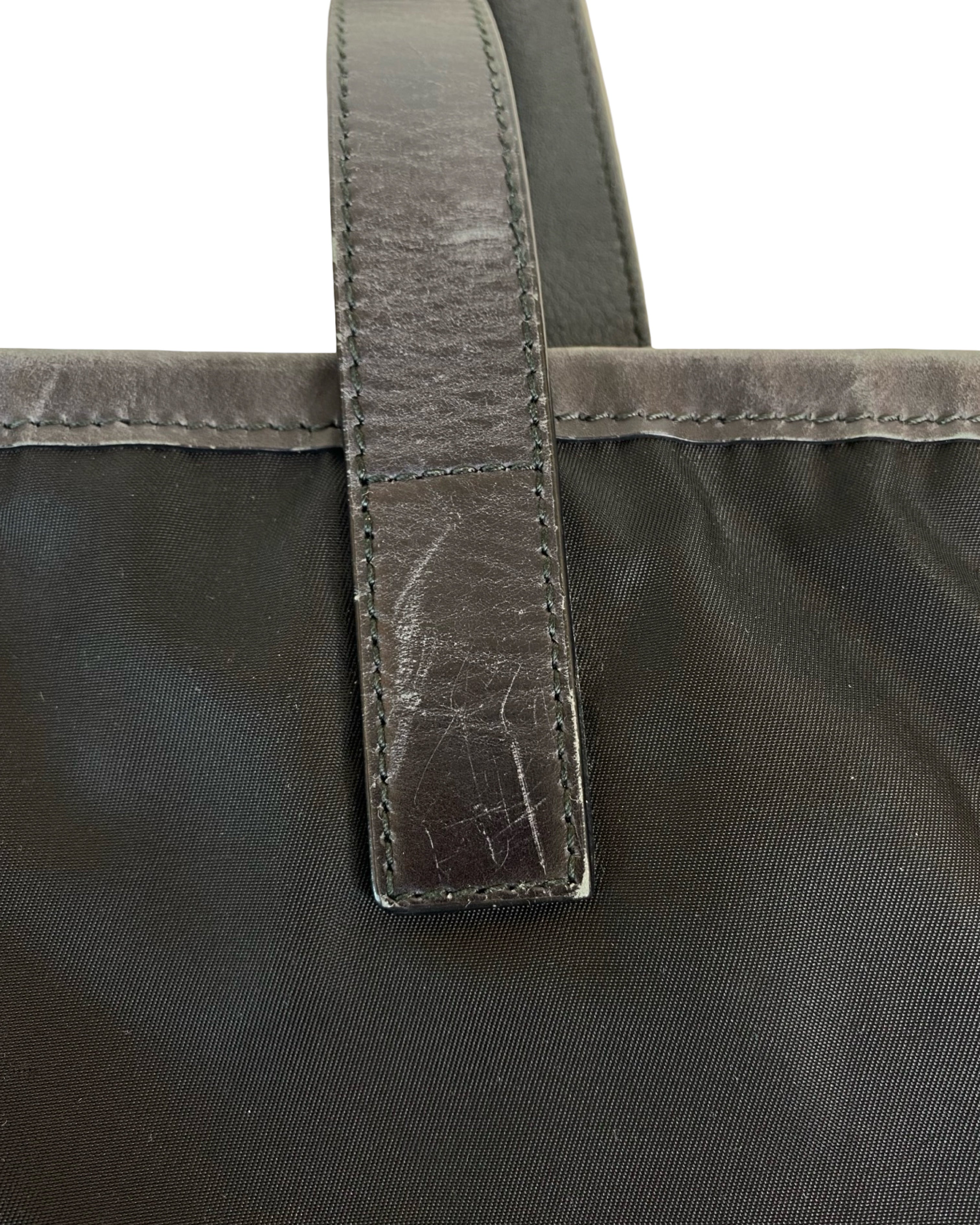 The Prada Re-Nylon Tote Bag in black features the brand’s signature triangle logo detail and timeless minimalist design. Crafted from durable Re-Nylon, this semi-vintage piece from 2013 combines practicality with effortless luxury, offering a lightweight and versatile silhouette that reflects Prada’s iconic blend of innovation and sophistication. Made from premium nylon in classic black, the bag measures 40 cm in height, 35 cm in width, and 10 cm in depth.